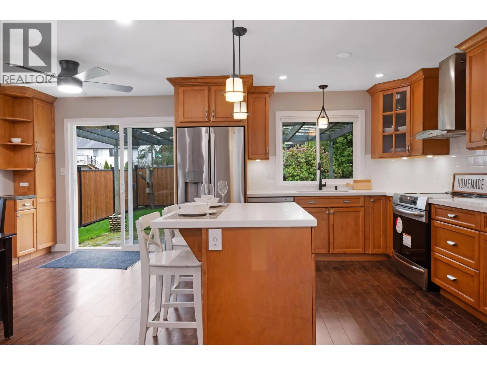 Beautifully renovated 3-bed, 2-bath rancher in sought-after East Maple Ridge offering 1,503 square ft of stylish, move-in ready living. Bright open-concept layout with a stunning custom kitchen featuring quartz countertops, subway tile backsplash, under-cabinet lighting, and a brand-new island with wine rack. Equipped with new stainless steel appliances including induction oven, fridge, dishwasher, and microwave. Laminate flooring throughout, updated lighting with LED fixtures, ceiling fans, and smart lighting features. Spacious primary bedroom with private ensuite. Fully renovated bathrooms with new vanities, mirrors, lighting, and fixtures. Dedicated laundry room with tile flooring, sink, storage, and drain. Upgrades include new baseboards, casings, paint, plumbing, toilets, and a boiler with tankless hot water system. Enjoy a landscaped backyard with turf, mulch, maintenance-free fencing, gate, patio, and storage shed. Prime location close to schools, parks, and everyday amenities. Open house SAT & Sun 2-4PM (id:27476)