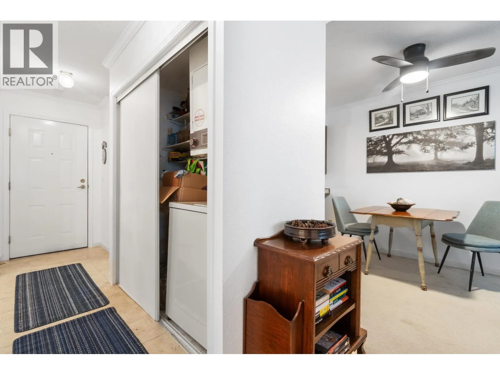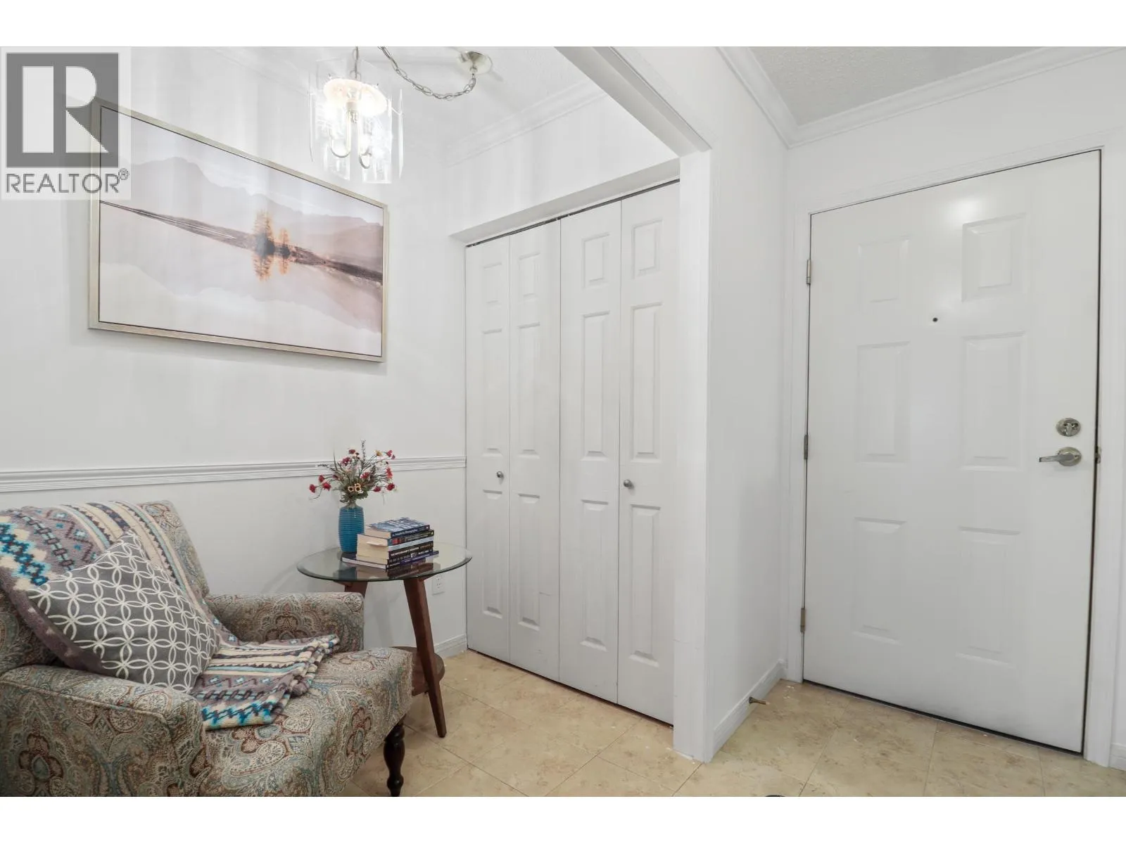 Located in the 55+ Riverside building at Fraserview Village, this freshly painted unit offers great value. Features include a spacious bedroom with walk-in closet, open study area ideal for a home office, and a bright living room with gas fireplace. Enjoy in-suite laundry and recent upgrades: new kitchen appliances, bathroom tub/surround, fixtures, lighting, ceiling fan, and baseboard heaters. $5,000 cashback at closing lets you choose your own flooring! Relax on the covered balcony with peaceful park views. Amenity room, guest suite, and close to West Coast Express for easy downtown access. (id:27476)