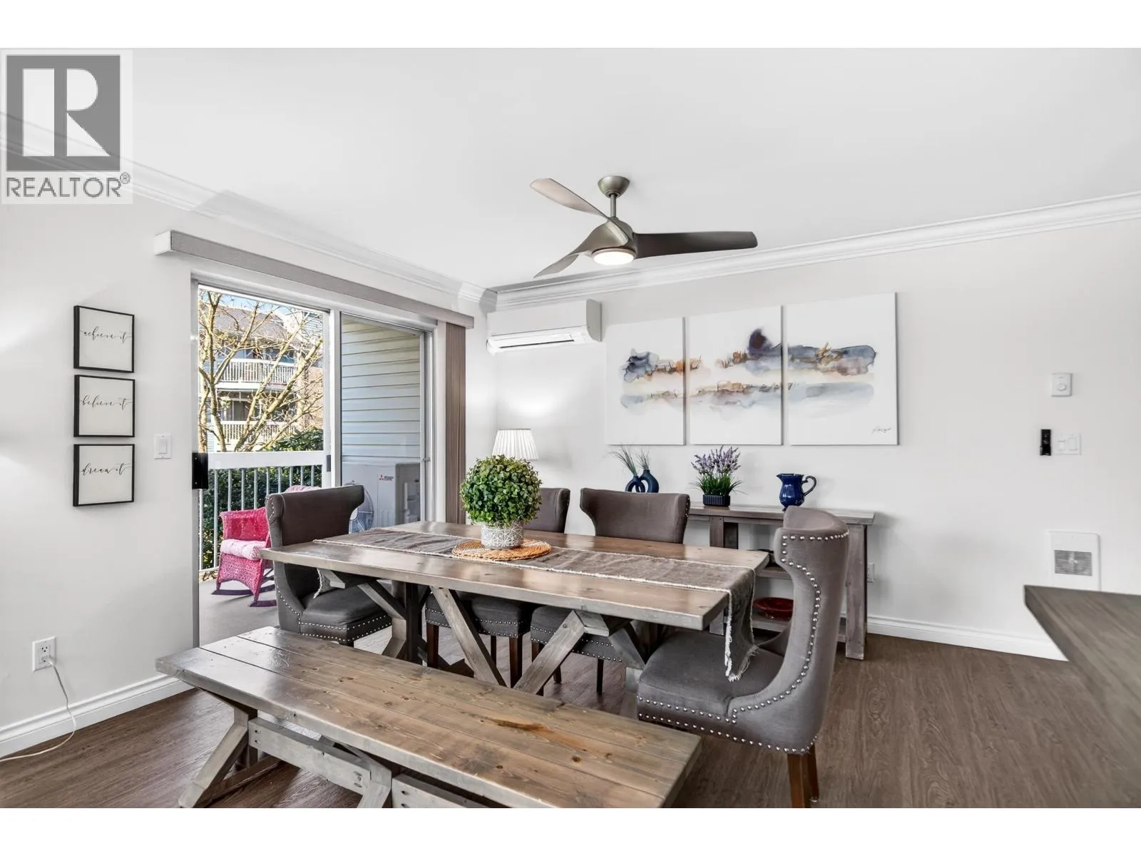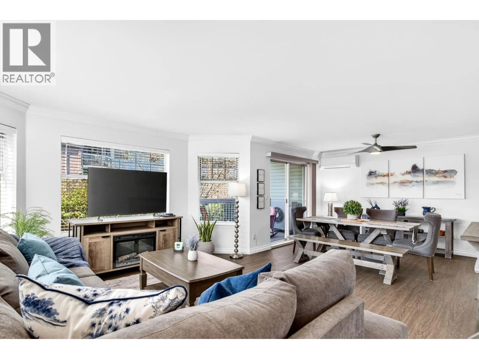 This is it! Great for a downsizer for 55+ living! Lovingly renovated w recent fresh paint, heat pump/ AC & NEW gas fireplace! This 2 bedrm, 2 bathrm is so spacious, private, natural light & 2 patios with one having a private entrance! It feels like you are in a rancher as you are the end/corner unit. This beautifully renovated home looks onto greenspace of the common area w distant river views. The dining rm/ family rm space is generous in size, plus a cozy reading / eating area off the spacious kitchen. The kitchen has lots of cabinets & rm for 2 cooks! The primary bdrm is peaceful with great closet space & ensuite! 2nd bdrm is great for guests/office next to the bathrm. The laundry / storage rm is efficient & spacious. The building has its own guest suite & nearby pool/gym privileges! (id:27476)