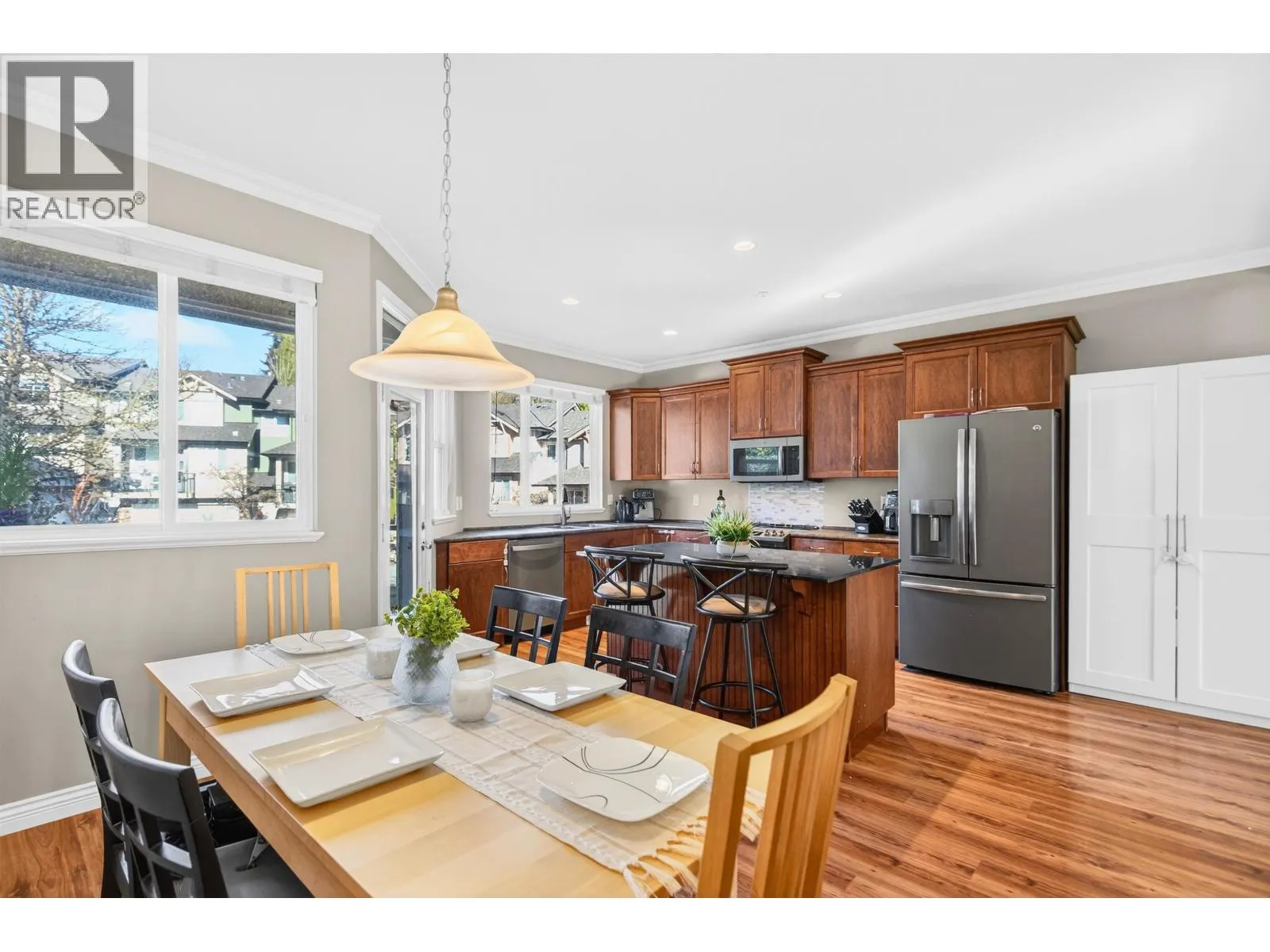This spacious end-unit home at Cottonwood Green feels like a detached home, backing onto peaceful greenspace for ultimate privacy. Well maintained throughout with a beautifully renovated primary ensuite and a thoughtfully upgraded lower level featuring a 4th bdrm, living area, full bathroom and separate entry; perfect for guests or teens. Bright main floor with gas fireplace and front and back patios. Upstairs offers a huge primary, two additional large bdrms, full bath and laundry. Enjoy year-round comfort with a brand-new heat pump and air conditioning. Large side-by-side double garage, driveway parking and plenty of visitor parking right by the unit. Well-run strata - Roof 3 years old and new fencing. 2 pets allowed. (id:27476)