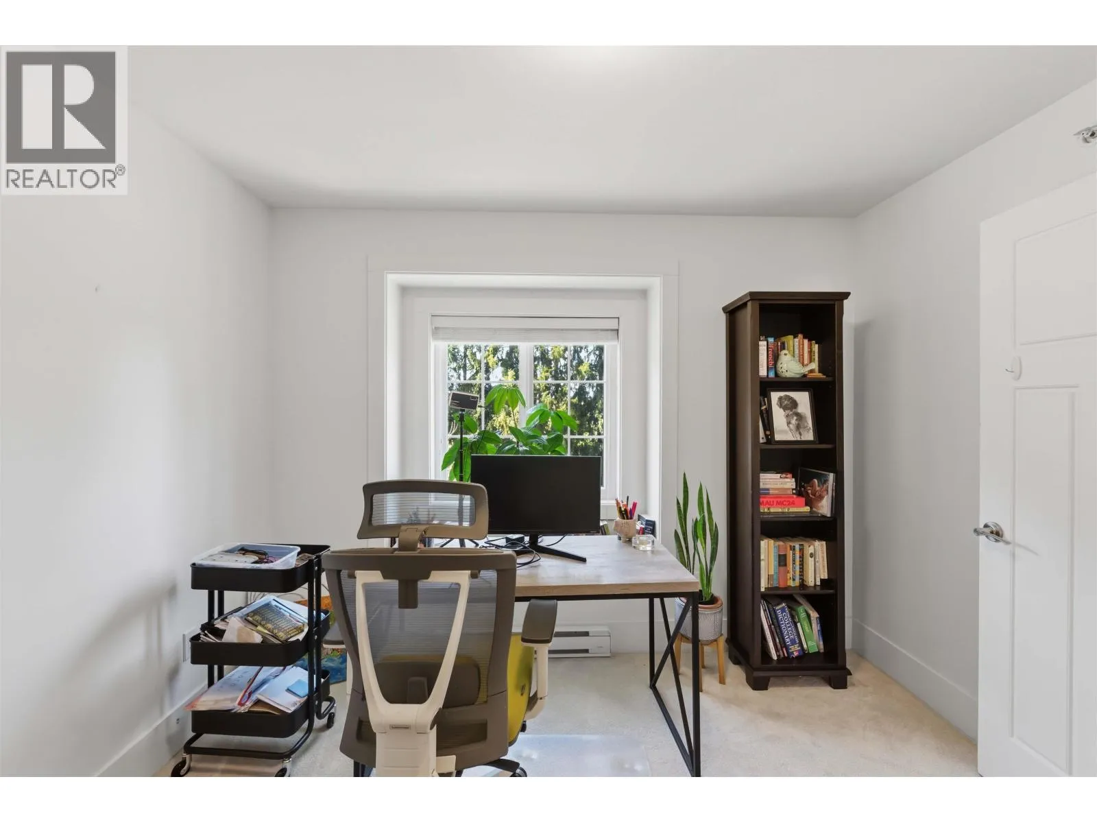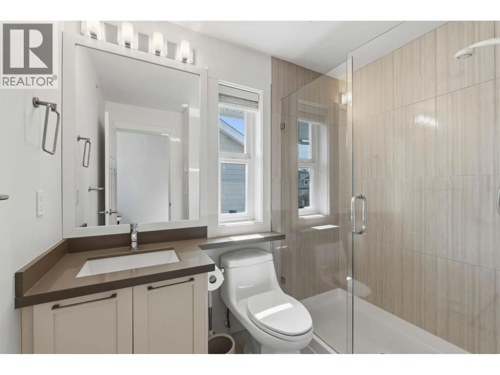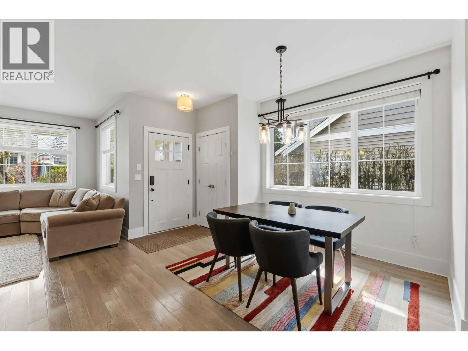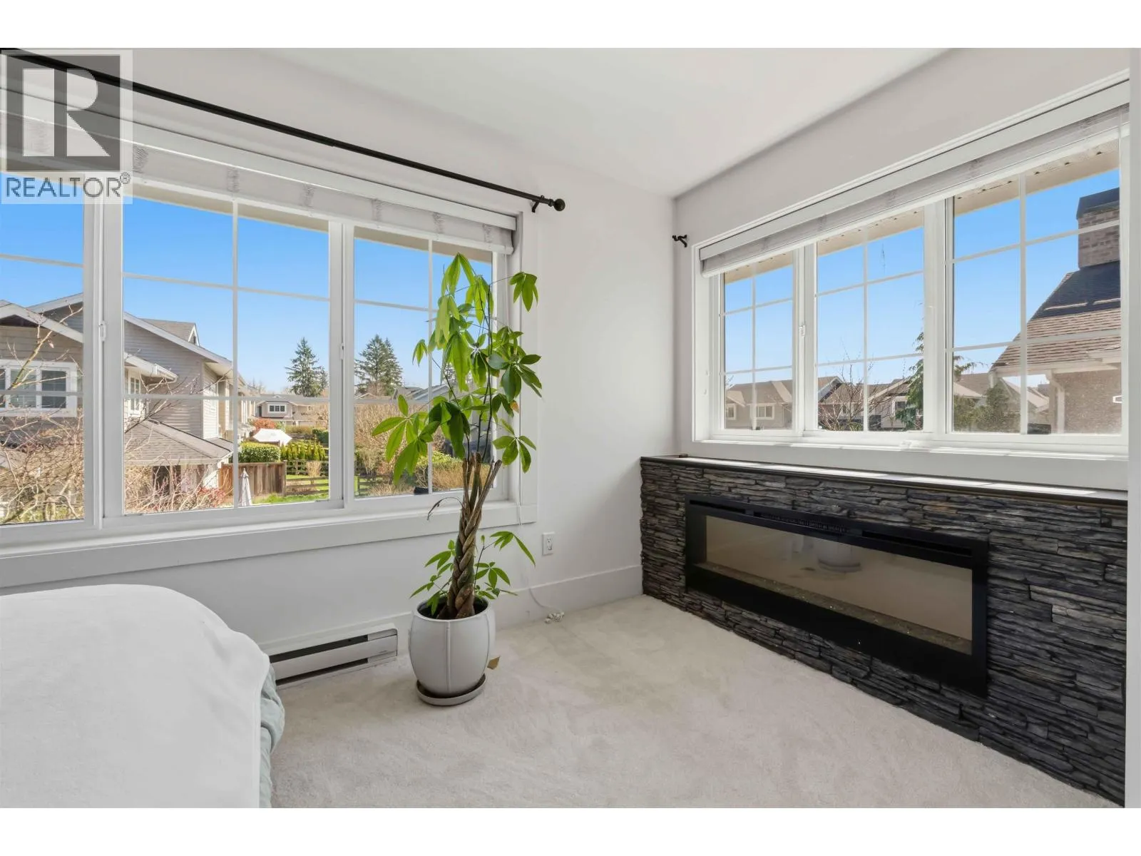 MODERN FINISHINGS, EVERYDAY CONVENIENCE, AND PEACEFUL TRANQUILITY! Gorgeous half duplex-style 3 bedroom, 2.5 bath townhome of approximately 1300 sqft in sought-after Village Green, backing onto treed space and agricultural ALR land. Fantastic main floor layout features a bright, gourmet shaker-style kitchen with ample cabinetry and quartz countertops, complete with island and stainless appliances. Spacious living rm with bonus free-standing gas fireplace for cozy evenings. 3 bdrms up incl spa-inspired primary with large windows and full ensuite. EV TESLA CHARGER INSTALLED! Enjoy treed views from the kitchen or while relaxing in the fenced yard or on the large west-facing patio with gas BBQ hook-up. Single car garage plus driveway. Close to schools, shopping, and transportation! THE COMPLETE PACKAGE (id:27476)
