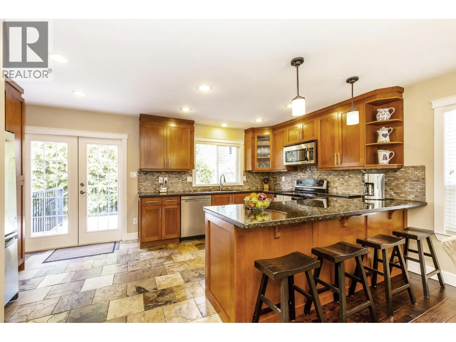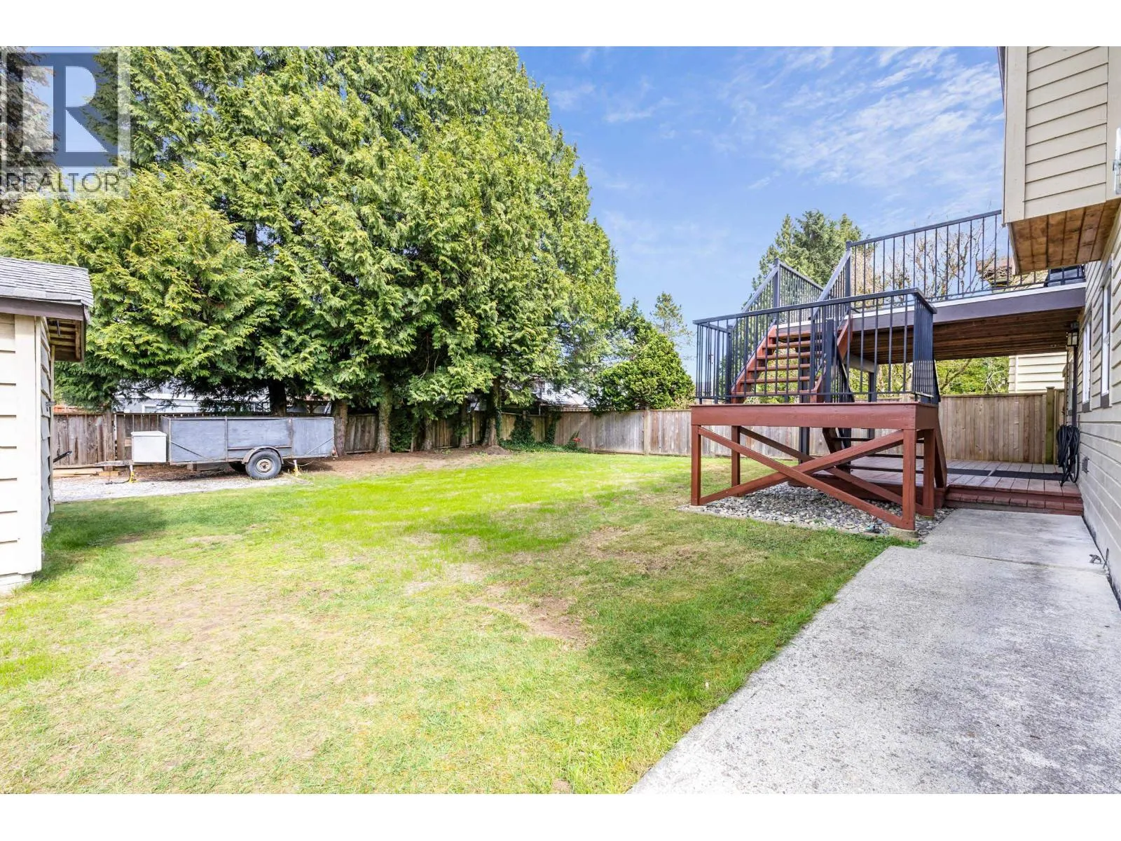 Corner Lot Charmer! This tastefully updated 4 bed, 3 bath home offers 2,247 sqft of bright living space on a 7,175 sqft corner lot. Engineered hardwood floors on the main set the tone, flowing through the spacious living room with vaulted ceiling, into the good-sized dining room & updated kitchen with breakfast bar, maple cabinets, S/S appliances & granite counters plus access to a huge deck-an ideal layout for entertaining & everyday living. Upstairs has 3 large bdrms, including the primary with W/I closet & 3-pc ensuite. Downstairs offers a 4th bdrm, XL rec room & den plus a huge laundry room - 1 bdrm suite potential. Dbl garage & large backyard with access for RV/trailer parking. Steps to transit & schools incl French immersion. Close to shopping, restaurants & Golden Ears Bridge. Call today! (id:27476)