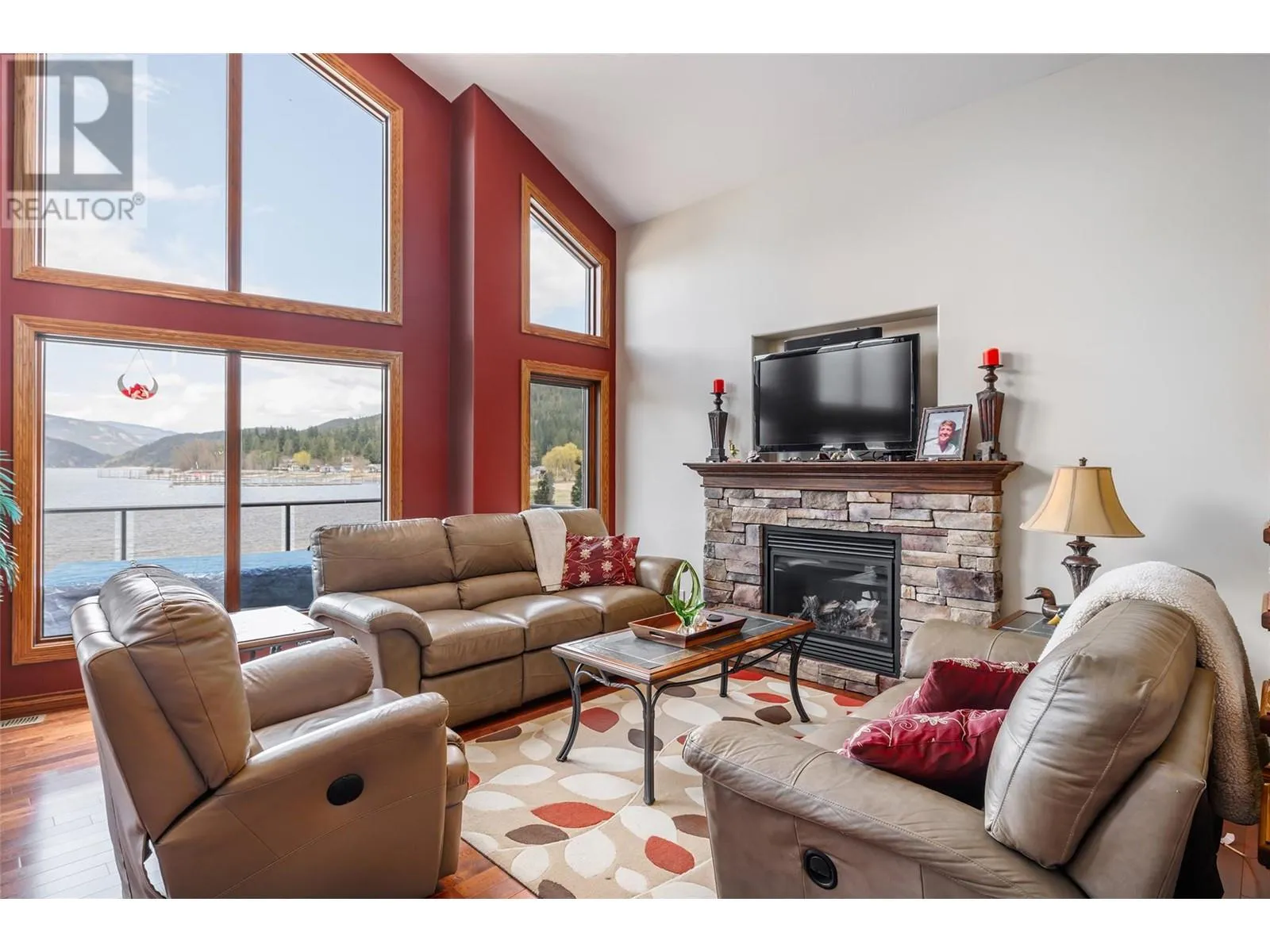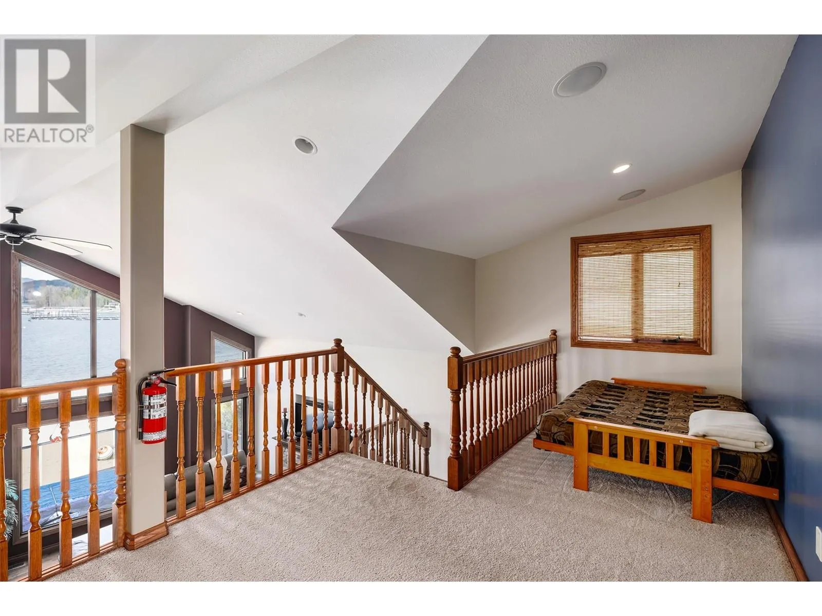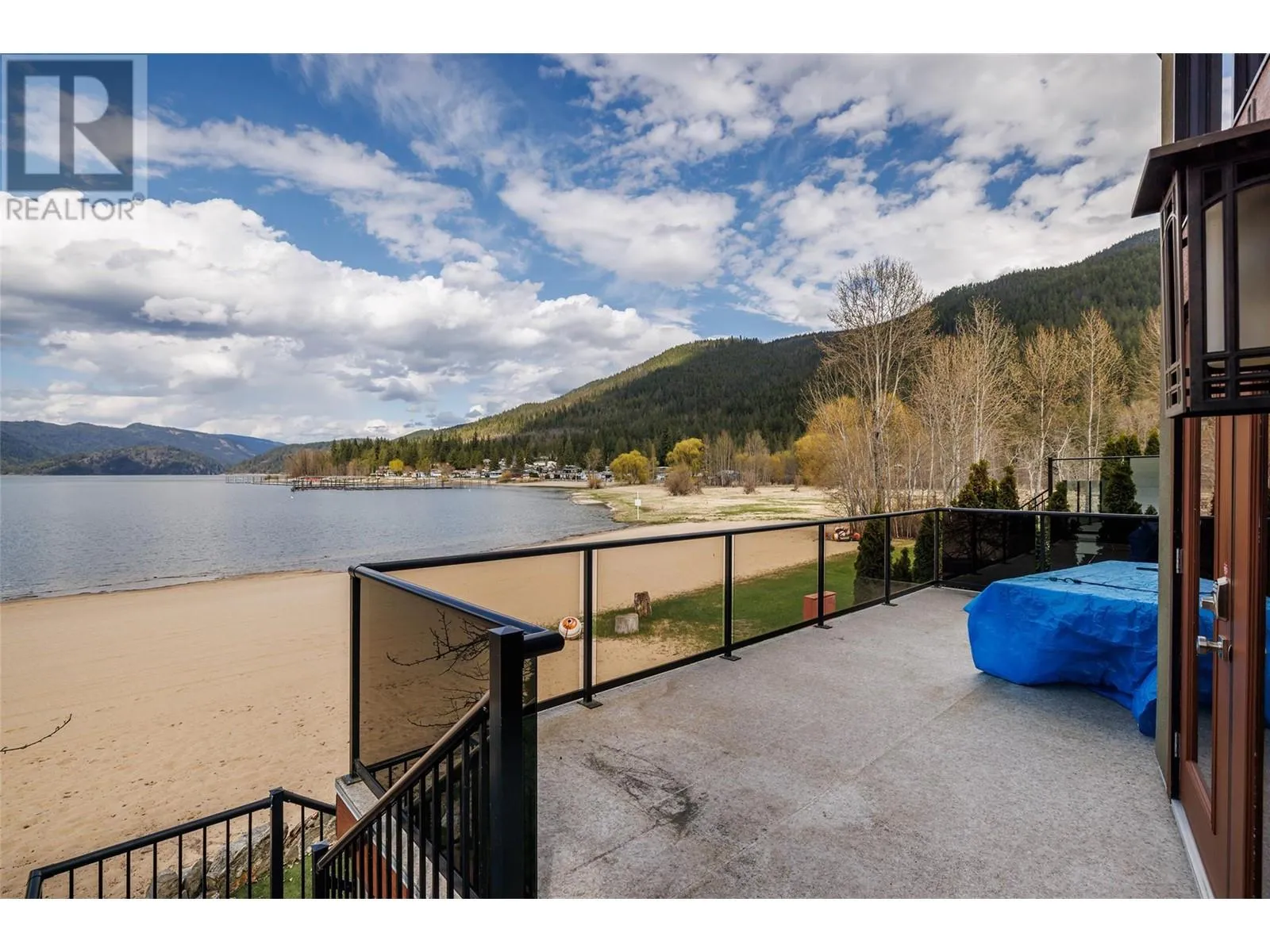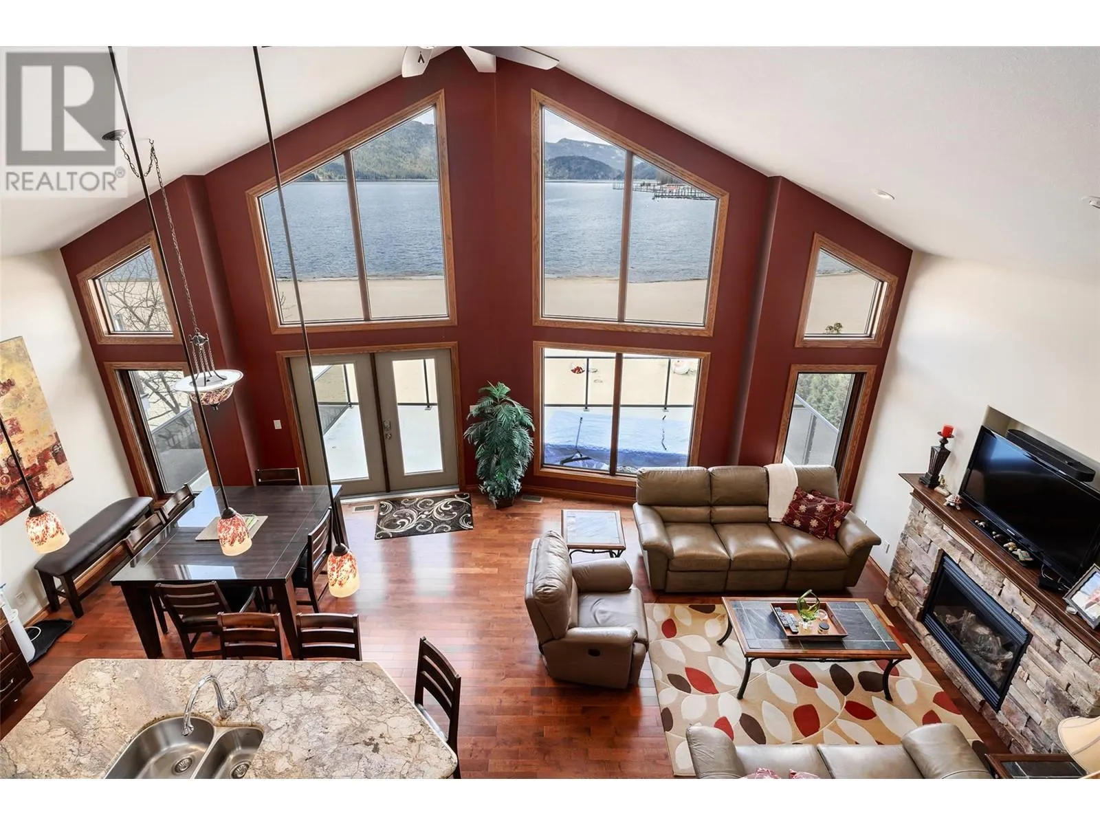 Discover lakeside living on the shores of Mara Lake. This beautiful waterfront home, located in the gated and highly sought-after Crystal Sands community, is the ideal retreat for summer living. Throughout the home, youâll find granite countertops, hardwood floors, and custom wood cabinetry. The open-concept main level is designed for effortless entertaining, featuring high ceilings, a cozy propane fireplace, and unobstructed lake views. Step outside to your private patio with direct access to the shoreline, ideal for a morning coffee and sunset lounging. The kitchen boasts a center island, perfect for gathering and entertaining. The main level includes a primary bedroom with a 3-piece ensuite. Upstairs, you'll find two additional bedrooms, another full bath, and a versatile loft space open to the living area below. Another standout feature is the elevator which is perfect for homeowners with mobility concerns, visiting guests, or simply making it easier to carry food and drinks between floors. An extra-deep 4-car garage offers ample storage for all your seasonal toys. As a resident of Crystal Sands you will enjoy unmatched amenities including a private beach, marina and dock, boat launch, trailer storage, clubhouse with kitchen, pickleball and volleyball courts, RV visitor sites with full hookups, playground, caretaker, and more. Get ready to enjoy this beautiful summer escape. (id:27476)