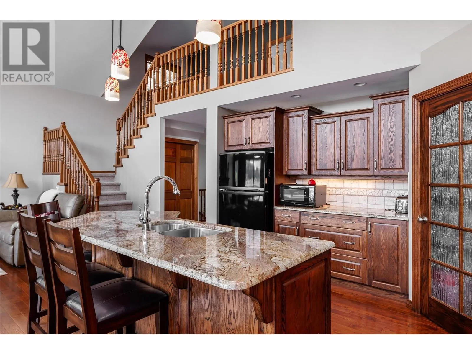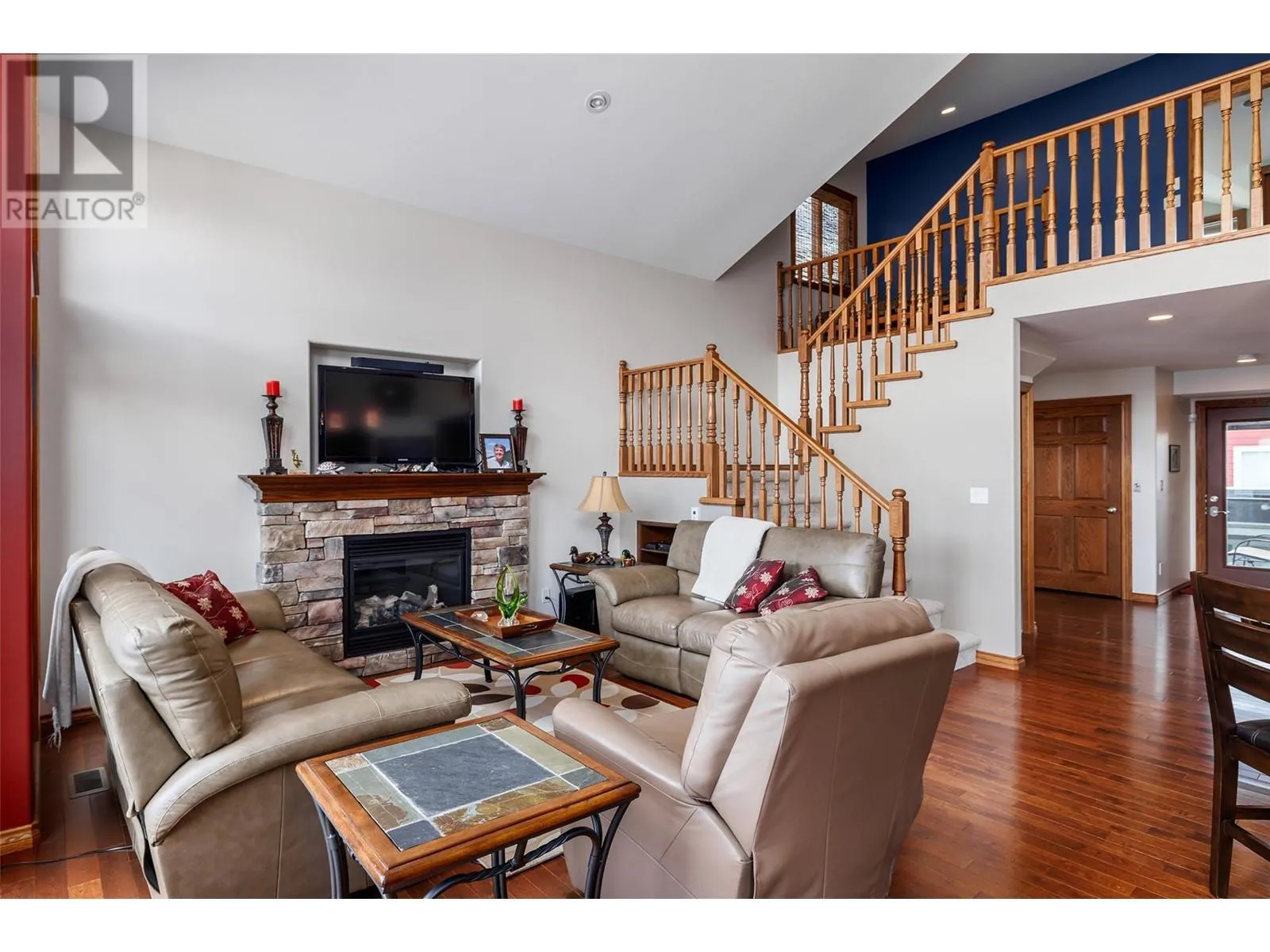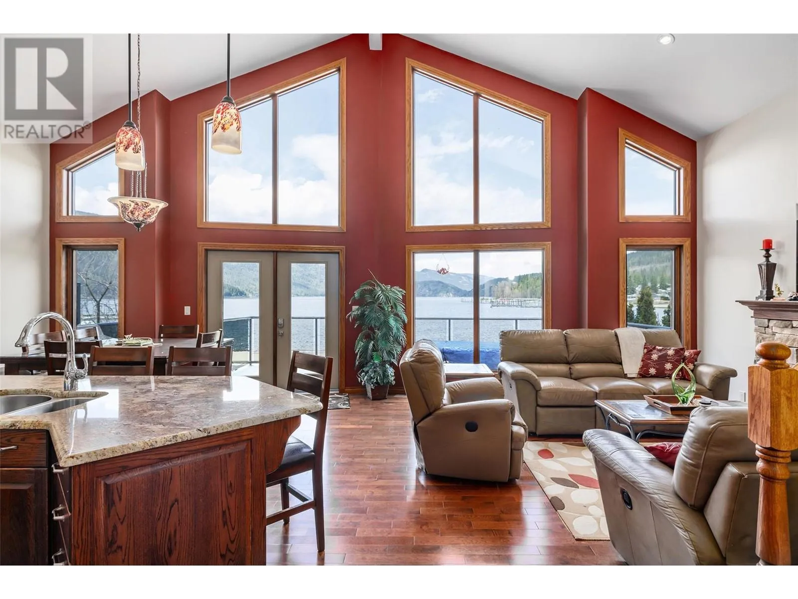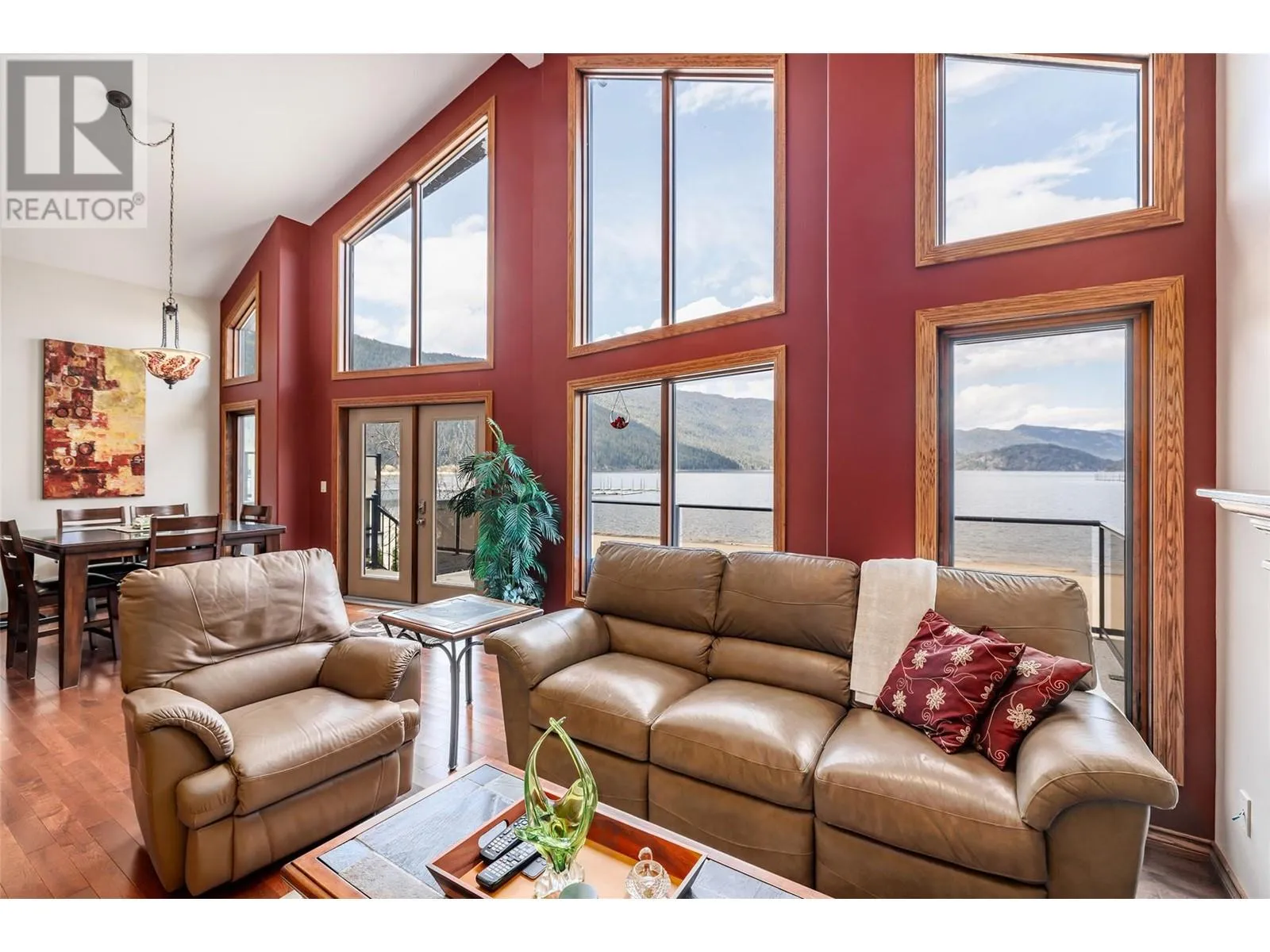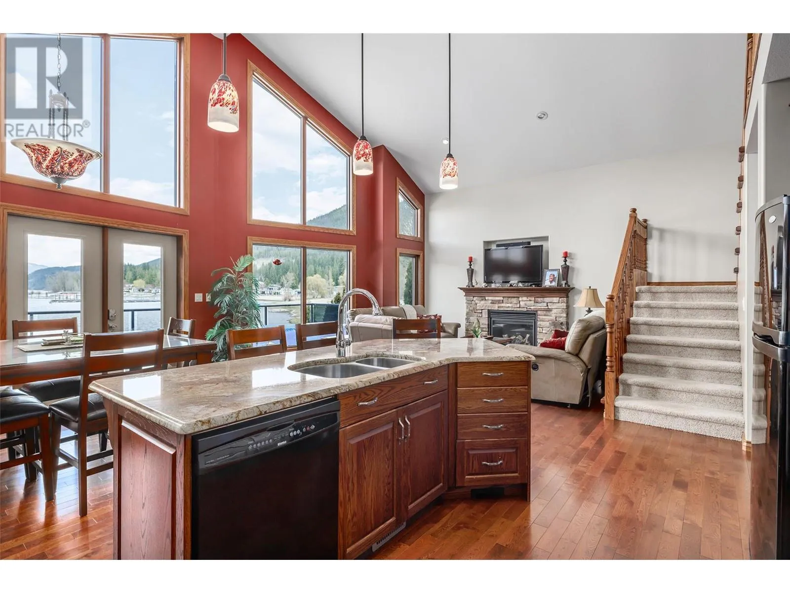 Discover lakeside living on the shores of Mara Lake. This beautiful waterfront home, located in the gated and highly sought-after Crystal Sands community, is the ideal retreat for summer living. Throughout the home, youâll find granite countertops, hardwood floors, and custom wood cabinetry. The open-concept main level is designed for effortless entertaining, featuring high ceilings, a cozy propane fireplace, and unobstructed lake views. Step outside to your private patio with direct access to the shoreline, ideal for a morning coffee and sunset lounging. The kitchen boasts a center island, perfect for gathering and entertaining. The main level includes a primary bedroom with a 3-piece ensuite. Upstairs, you'll find two additional bedrooms, another full bath, and a versatile loft space open to the living area below. Another standout feature is the elevator which is perfect for homeowners with mobility concerns, visiting guests, or simply making it easier to carry food and drinks between floors. An extra-deep 4-car garage offers ample storage for all your seasonal toys. As a resident of Crystal Sands you will enjoy unmatched amenities including a private beach, marina and dock, boat launch, trailer storage, clubhouse with kitchen, pickleball and volleyball courts, RV visitor sites with full hookups, playground, caretaker, and more. Get ready to enjoy this beautiful summer escape. (id:27476)