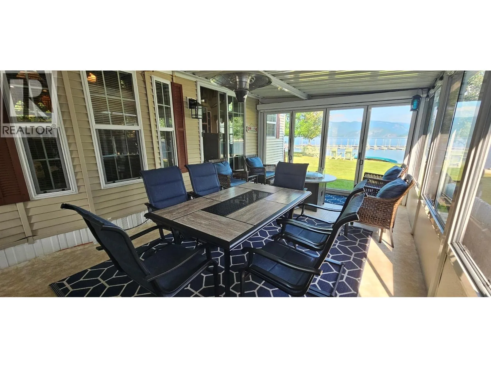 Welcome to LS-33 at Mara Lake â a rare direct waterfront property offering the perfect blend of comfort and resort lifestyle. This 2008 Woodland Park Timber Ridge park model features 528 sq ft of well-designed living space with 2 bedrooms and a 4-piece bath. Highlights include laminate and carpet flooring, forced-air propane furnace, A/C, new (2023) electric hot-water tank, skylight, and full appliance package with washer/dryer and dishwasher. The impressive 12'x27' enclosed sunroom expands the living area with slider windows, custom folding doors, roll-down screen, outdoor kitchen, propane fire pit, and stylish wicker furnishings. Outside youâll find manicured landscaping on a 36'x66â lot (2,406 sq ft) with 8'x10â shed, 450-gallon propane tank (rental), BBQ with canopy and solar lighting, patio furniture, planters, and weather station. Annual resort fee $4,050 and 2025 taxes $2,038.36. Situated within a private 10-acre gated resort at the south end of Mara Lake where the Shuswap River meets the lake, owners enjoy 2,400 ft of sandy beachfront, marina with moorage, boat launch, clubhouse, pickle-ball and tennis courts, playground, volleyball, and full-time on-site management. Fully serviced with water and sewer systems, visitor RV sites, and maintenance shop. Call today to book your viewing (id:27476)