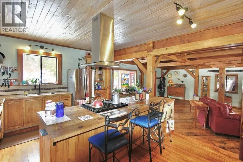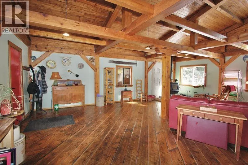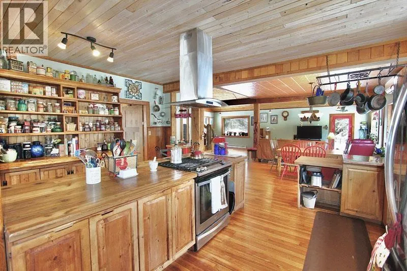 Escape to 4.77 acres of privacy with space to live, work, and grow. This well-designed home offers open-concept main floor living with a spacious chefs kitchen, and a large island, room for entertaining. The open space flows into a bright dining and living area. A large family room with wood stove provides added comfort and reliable backup heat during those cold winter days and power outages. A full bathroom with soaker tub completes the main level. Upstairs features a generous primary bedroom, second bedroom, den, and another full bath. Outside, enjoy a two-storey workshop, greenhouse, established fruit, vegetable and flower gardens, chicken coop, rainwater system, and fenced area for children or pets. Enjoy two decks for morning coffee or evening BBQ with the family. (id:27476)
