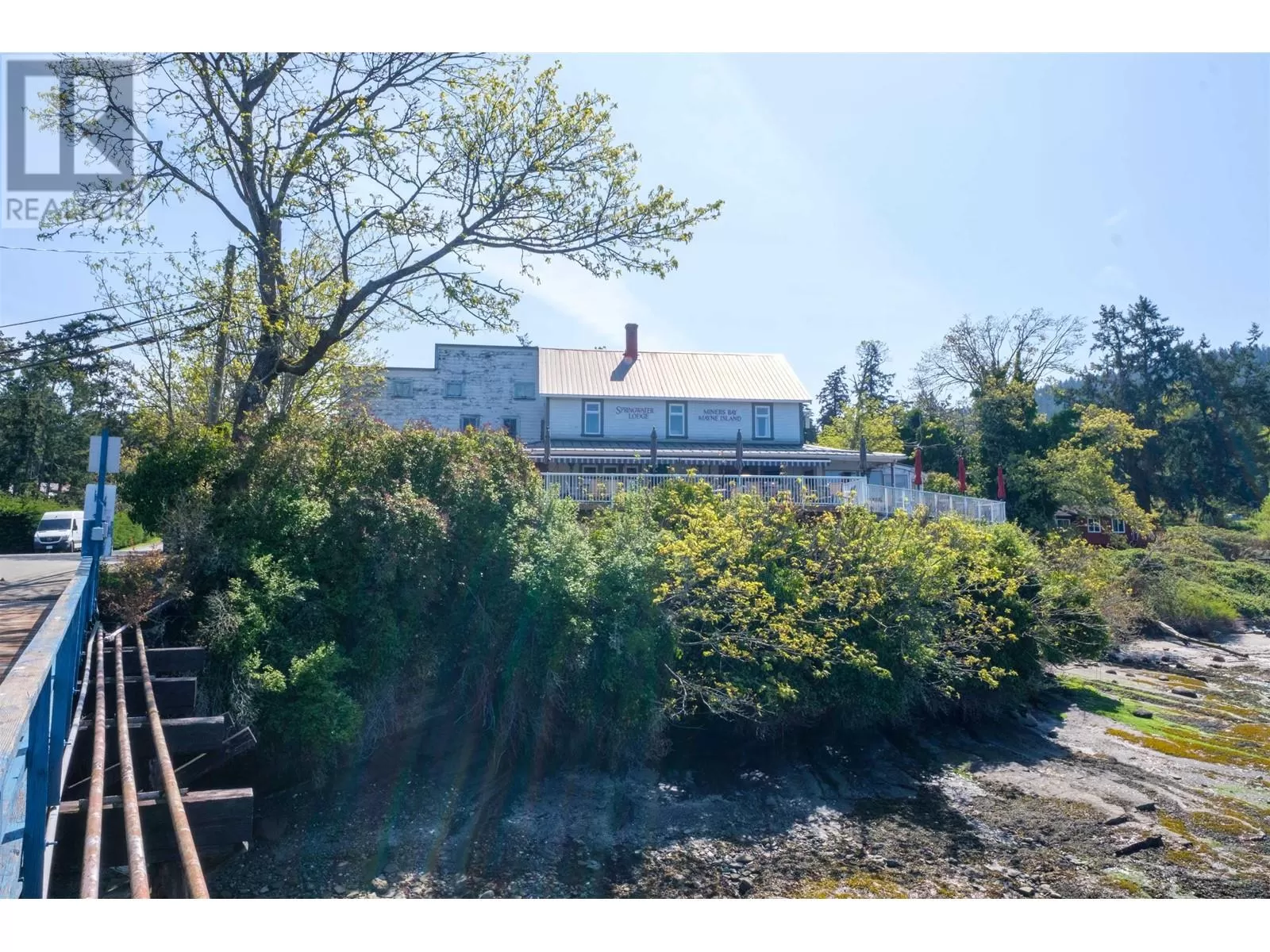 Springwater Lodge is an exquisite historical waterfront property nestled in the heart of Miners Bay on Mayne Island. Spanning 1.77 acres, this estate features a historic lodge with a restaurant and bar, complemented by two recently upgraded detached duplex cabins on the waterfront. Positioned mere steps from the Government dock accommodating float planes and boats, the property holds significant potential, allowing for the development of up to 26 accommodation units. Offering breathtaking views on this remarkable island, this opportunity is a must-see. Pictures and video were taken while restaurant was operating (id:27476)