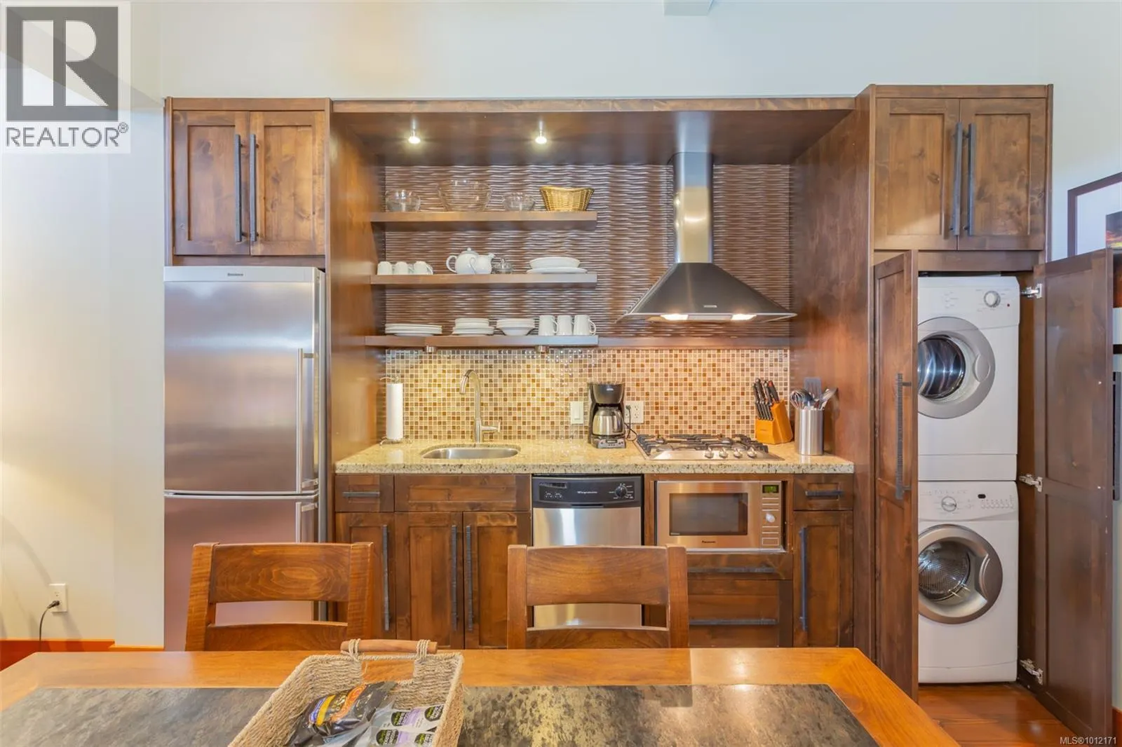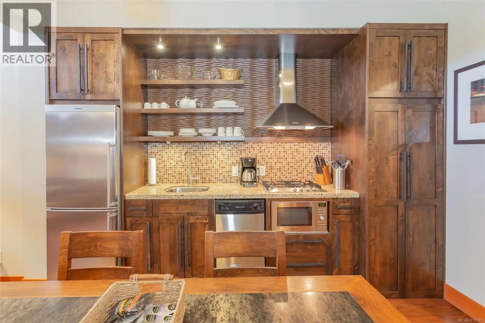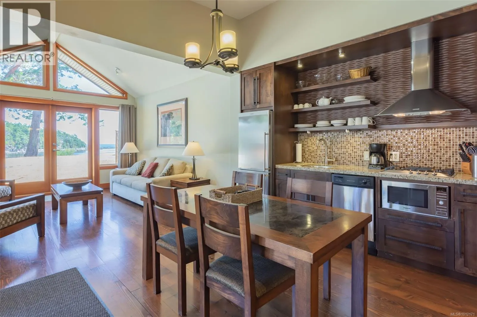 Welcome to the most convenient way to own the perfect island retreat on the popular Mayne Island - a beautiful Gulf Island nestled between Vancouver Island and mainland BC. The breathtaking views from this one-bedroom waterfront unit, spacious floorplan, and large patio make it the perfect solution for those looking for a home away from home without the hassle of upkeep and repairs. Fractional ownership gives you six weeks a year to enjoy and relax on the island and includes access to the Spa which is equipped with a pool, hot tub, sauna, and gym. Enjoy all 6 weeks or place the unit in the convenient rental pool. The 617 sq/ft retreat has all the comforts of home and is well-appointed with modern furnishings and hardwood and tile throughout. A propane fireplace, in-suite laundry, and a well-equipped kitchen with modern appliances and a BBQ on your private patio make entertaining a breeze both indoors and out. GST is applicable. Come and see what Mayne Island has to offer!! (id:27476)