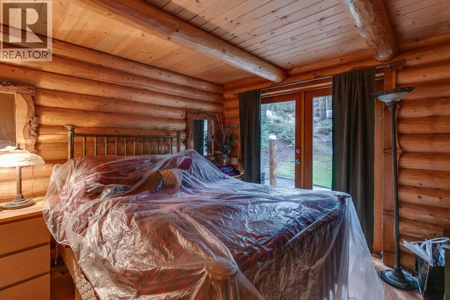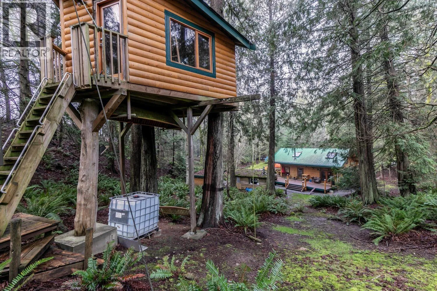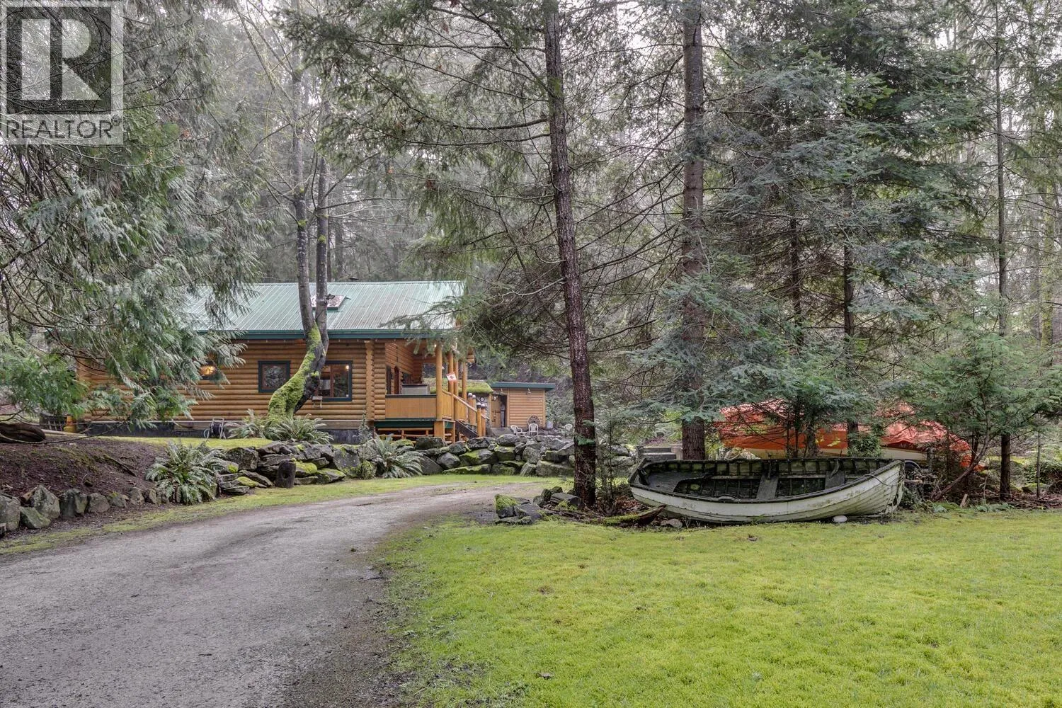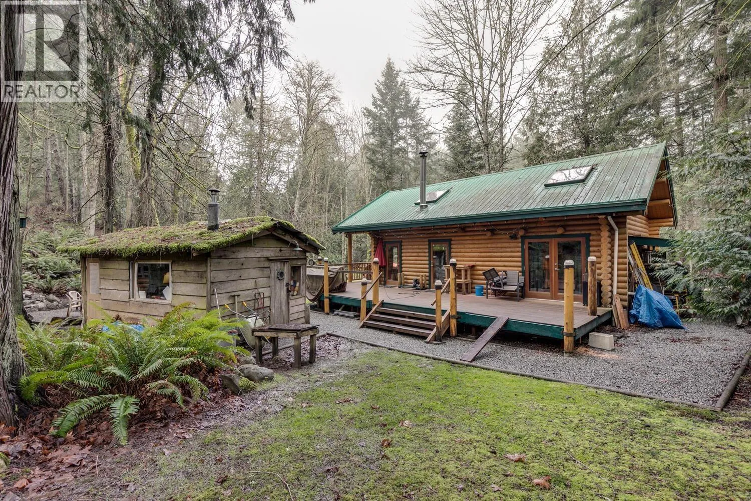 This private retreat sits on 0.67 acres on Mayne Island, one of BC´s Southern Gulf Islands, accessible by BC Ferries and known for its quiet, natural beauty and small waterfront community. The 2003-built 1.5-storey log cabin offers 2 bedrooms plus an open loft ideal as a third sleeping area or family space, and one full 4-piece bathroom. Features include a wrap-around deck with built-in BBQ and covered rear storage. Outbuildings include a wired workshop (278 sq. ft.), a special woodshed (129 sq. ft.), and a wired tree house (100 sq. ft.), all surrounded by forested privacy. (id:27476)