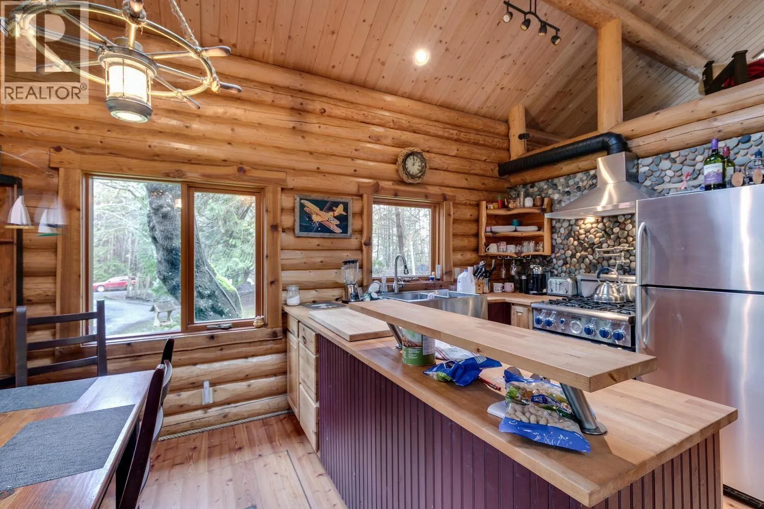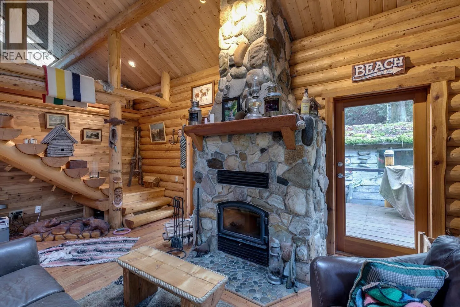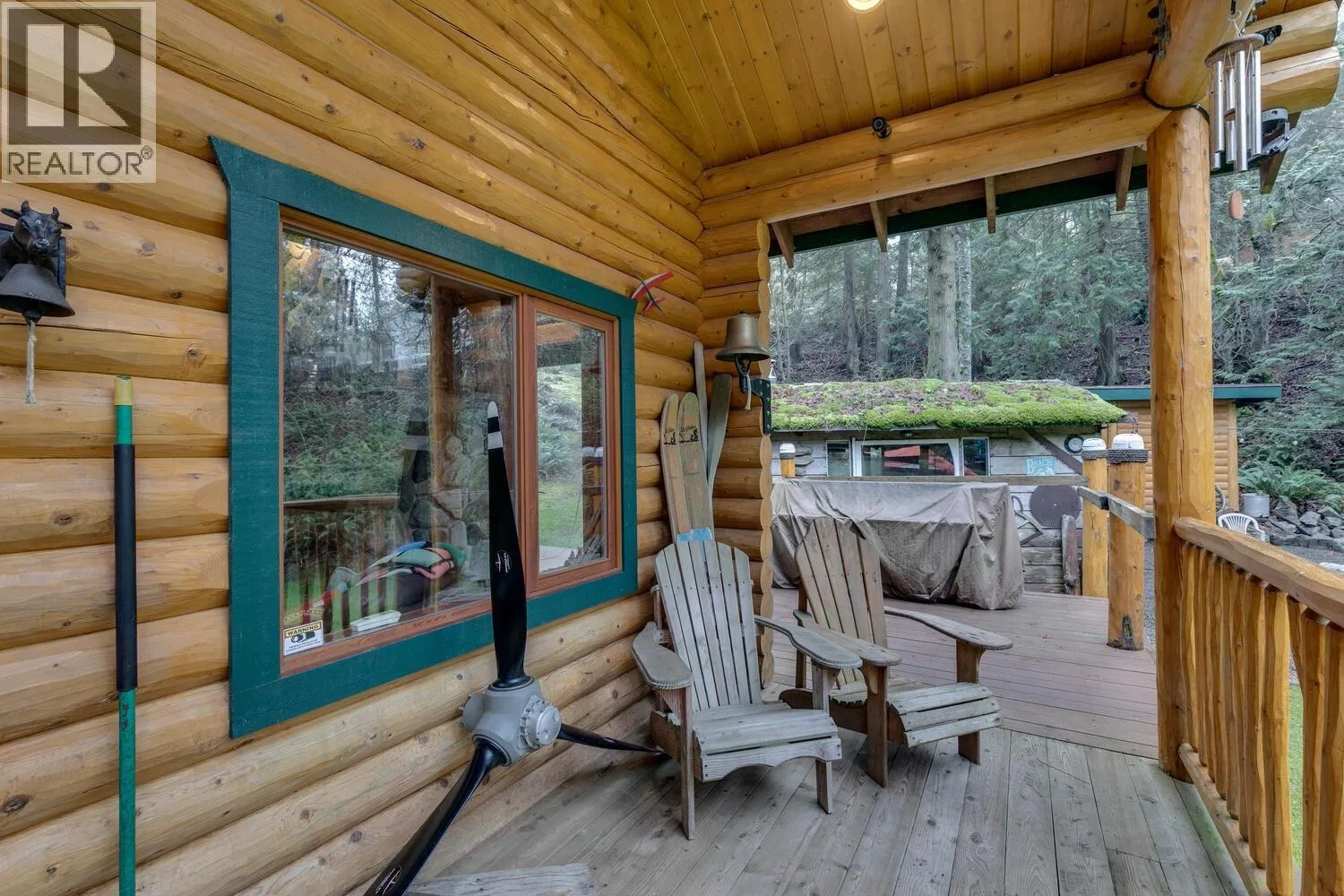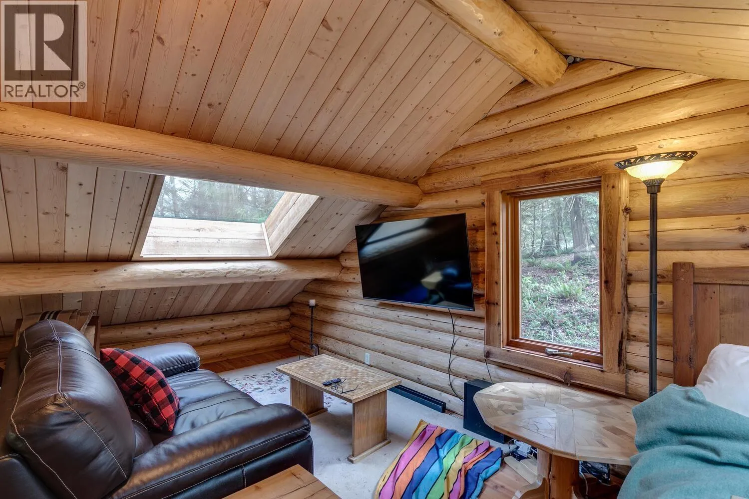 This private retreat sits on 0.67 acres on Mayne Island, one of BC´s Southern Gulf Islands, accessible by BC Ferries and known for its quiet, natural beauty and small waterfront community. The 2003-built 1.5-storey log cabin offers 2 bedrooms plus an open loft ideal as a third sleeping area or family space, and one full 4-piece bathroom. Features include a wrap-around deck with built-in BBQ and covered rear storage. Outbuildings include a wired workshop (278 sq. ft.), a special woodshed (129 sq. ft.), and a wired tree house (100 sq. ft.), all surrounded by forested privacy. (id:27476)