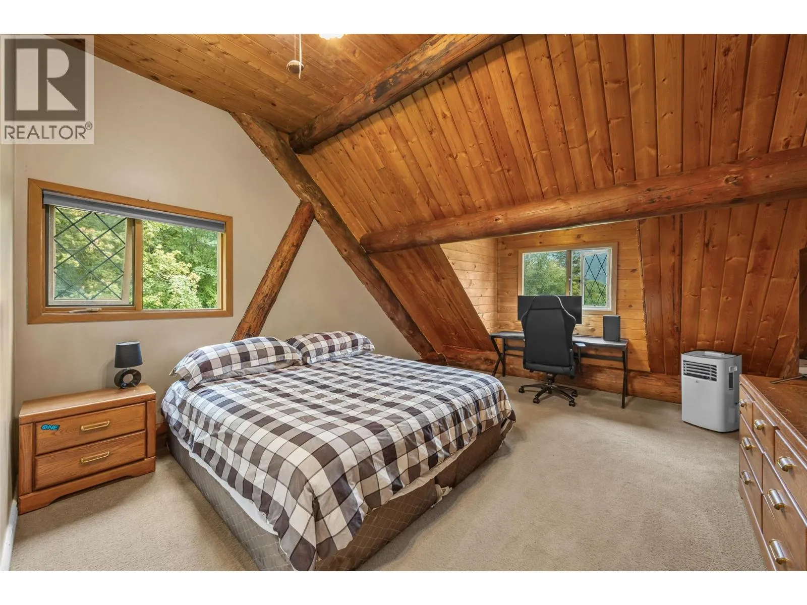 If youâve been holding out for a property with serious shop space, this is it. Sitting on over 4 acres and just 30 minutes from the city, this property features a massive 40x60 shop with 600 amp service, high ceilings, and room for just about anythingâtools, toys, or large scale projects. Itâs a car loverâs dream, with space to work, build, and store your entire collection. Thereâs also a two car attached garage and plenty of open parking for trailers, RVs, or equipment. The log home is filled with natural light, thanks to its vaulted ceilings and large windows that take in wide open views of the surrounding valley. A floor to ceiling brick fireplace anchors the main floor and blends function with a strong architectural element. The main level includes two bedrooms, including the primary, along with the main living and dining areas. Upstairs, youâll find two more bedrooms, a half bathroom, and a large loft that opens into a massive games room, ideal for entertaining or relaxing. The basement includes a fifth bedroom and another full bathroom. The property also includes a barn currently set up for chickens. With 4 acres of land in the ALR, thereâs plenty of room for animals, gardening, or expanding your setup. Reach out today to book your showing. All measurements are approximate (id:27476)