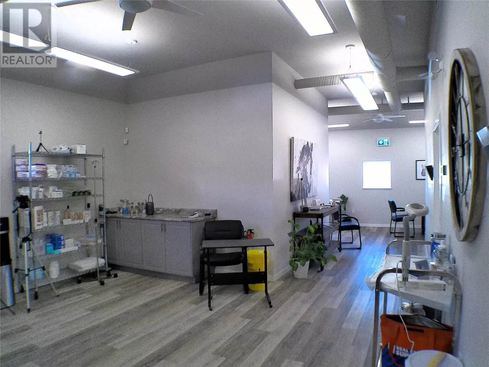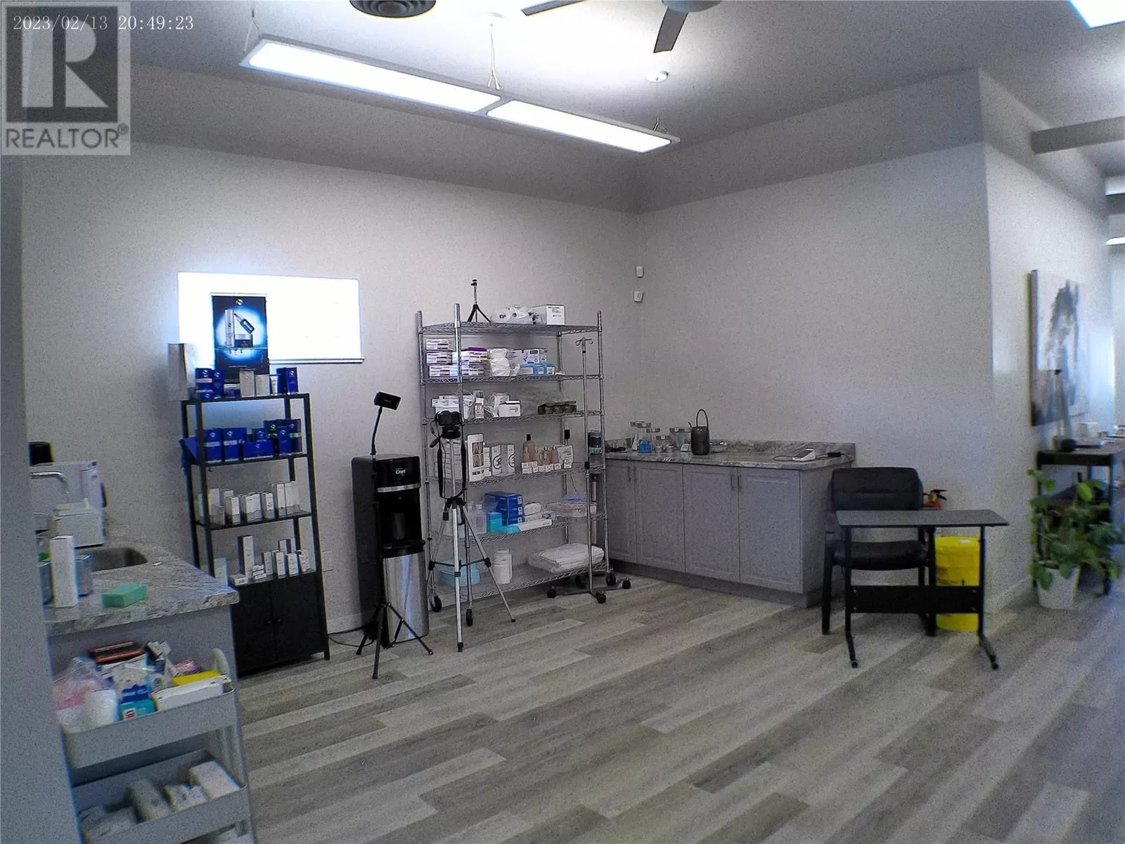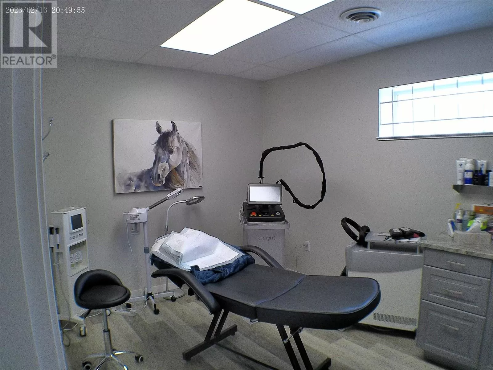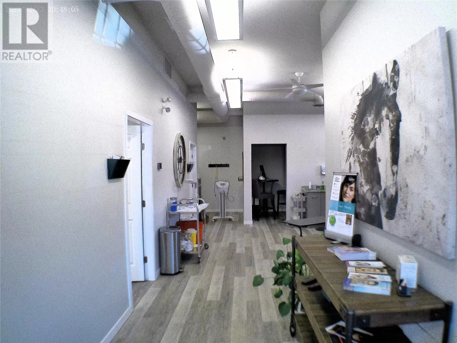 This stand alone building in the heart of town has been substantially renovated in 2019! All new exterior stucco and windows, complete skim coat of concrete floors prior to installation of Luxury Vinyl flooring throughout. Ceilings have been raised to 12 feet with all new ducting and furnace and central air installed. Full electrical upgrade with all new led lighting and ceiling fans. There is a large washroom, 2 huge treatment rooms, lunch room with full fridge, sink and microwave and a large open area great for display or? The reception area offers a bright sunny welcome as you enter the building. The roof is approx. 9 years old, hot water tank 2019 and furnace 2019. There are 3 parking spots at the entrance and room for a few more at the back of the property and lots of street parking as well. The Bonus on this one is the walls could be moved or removed providing several options for any business. (id:27476)