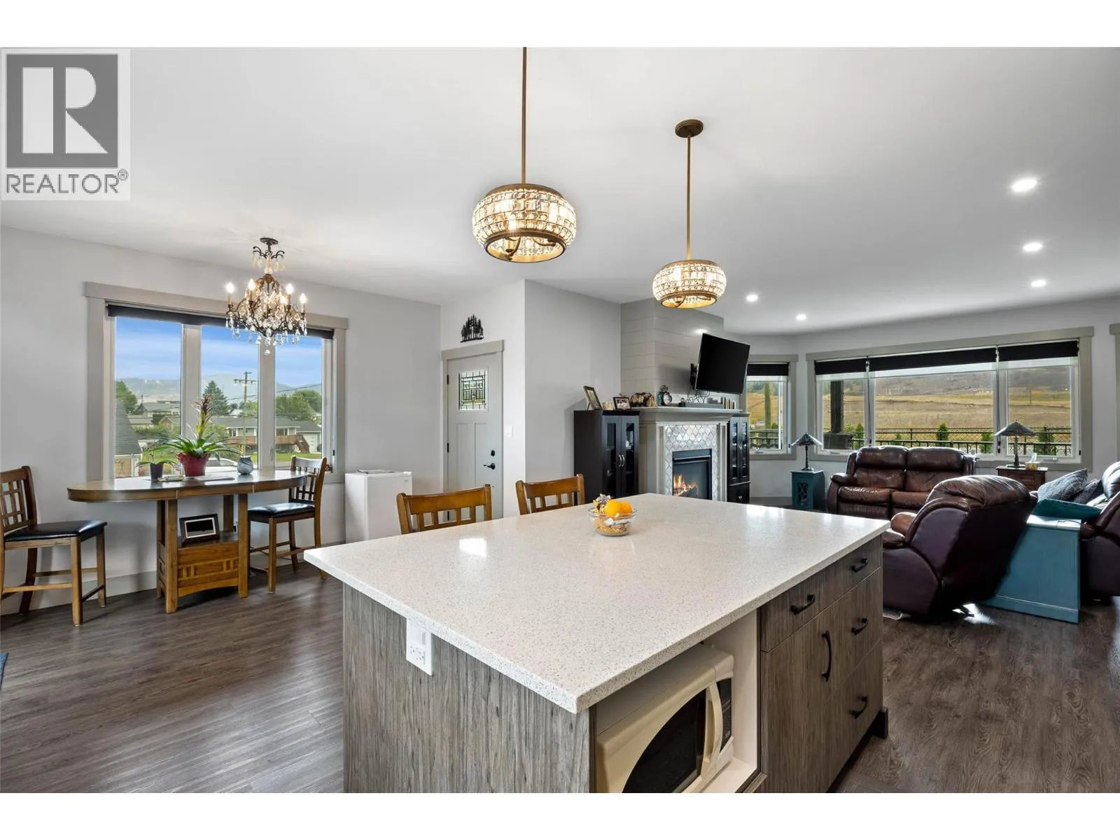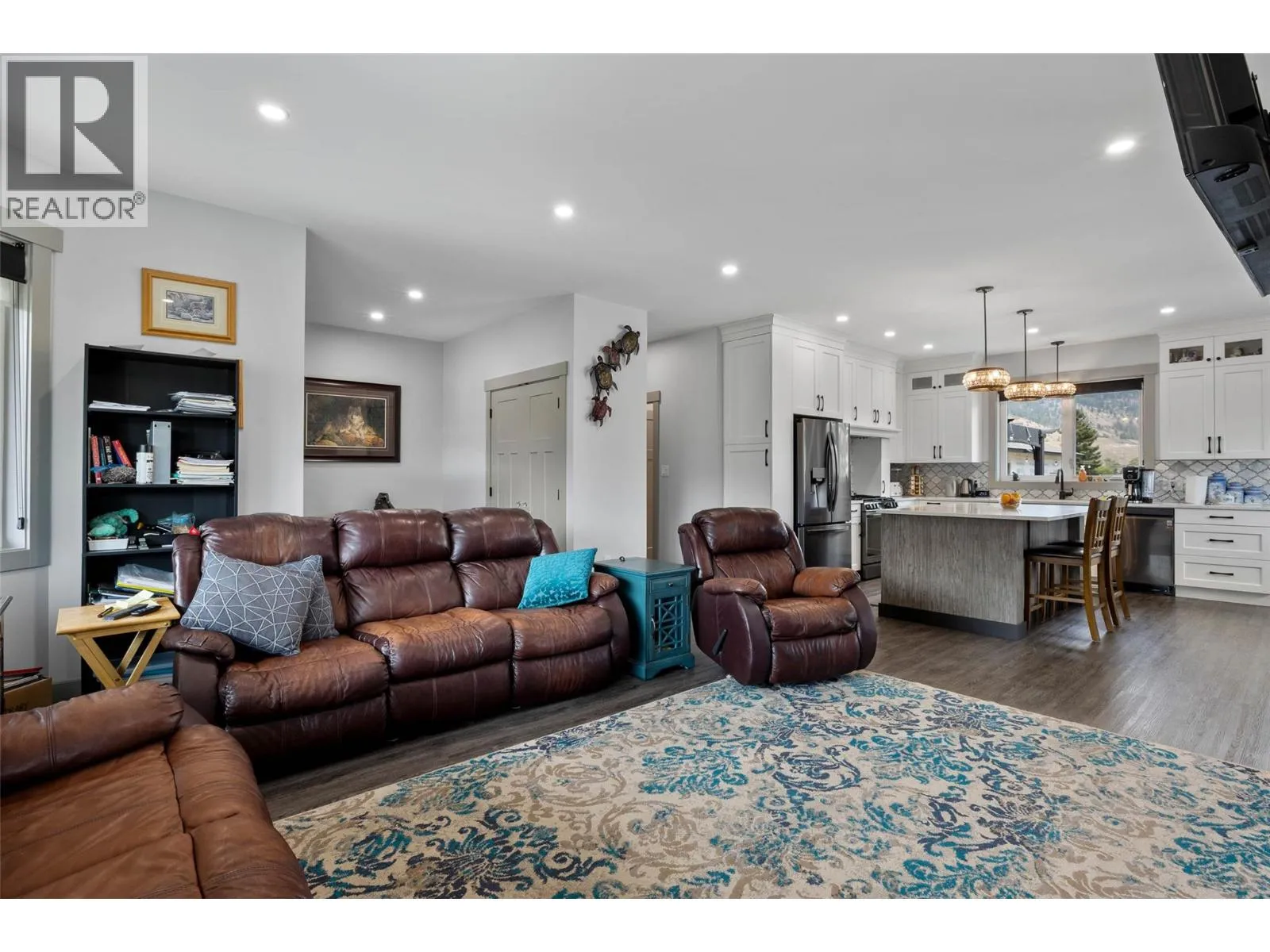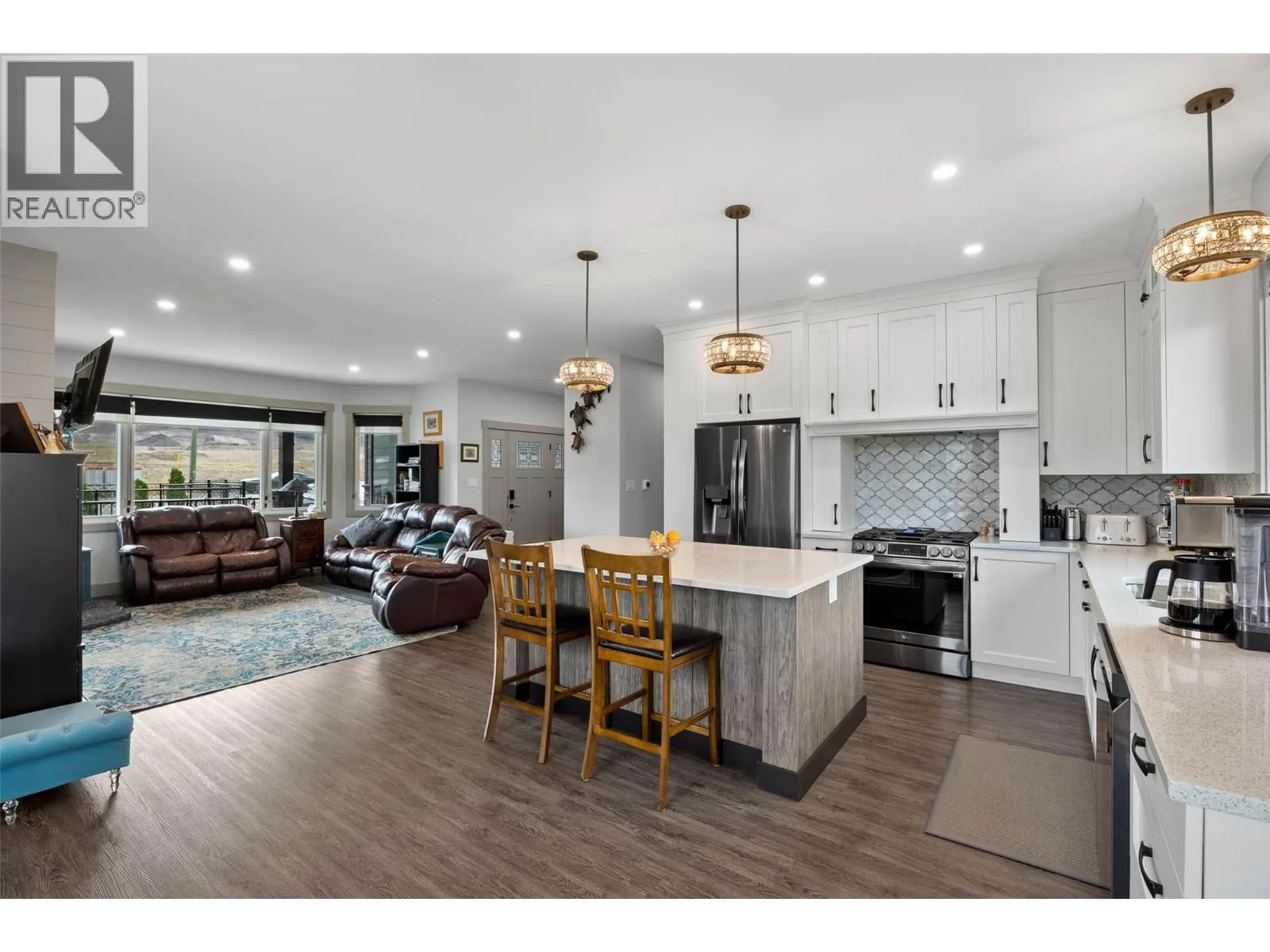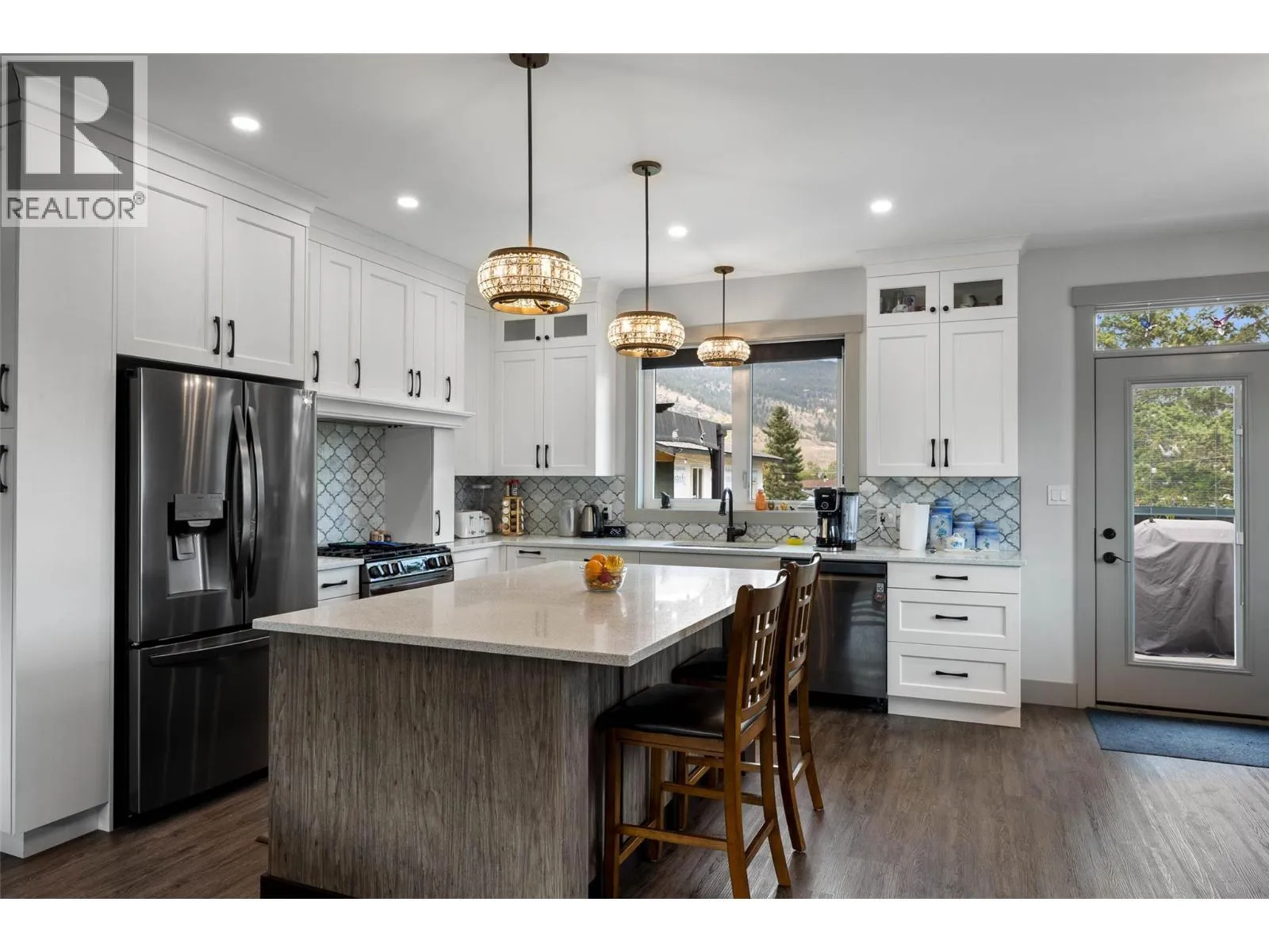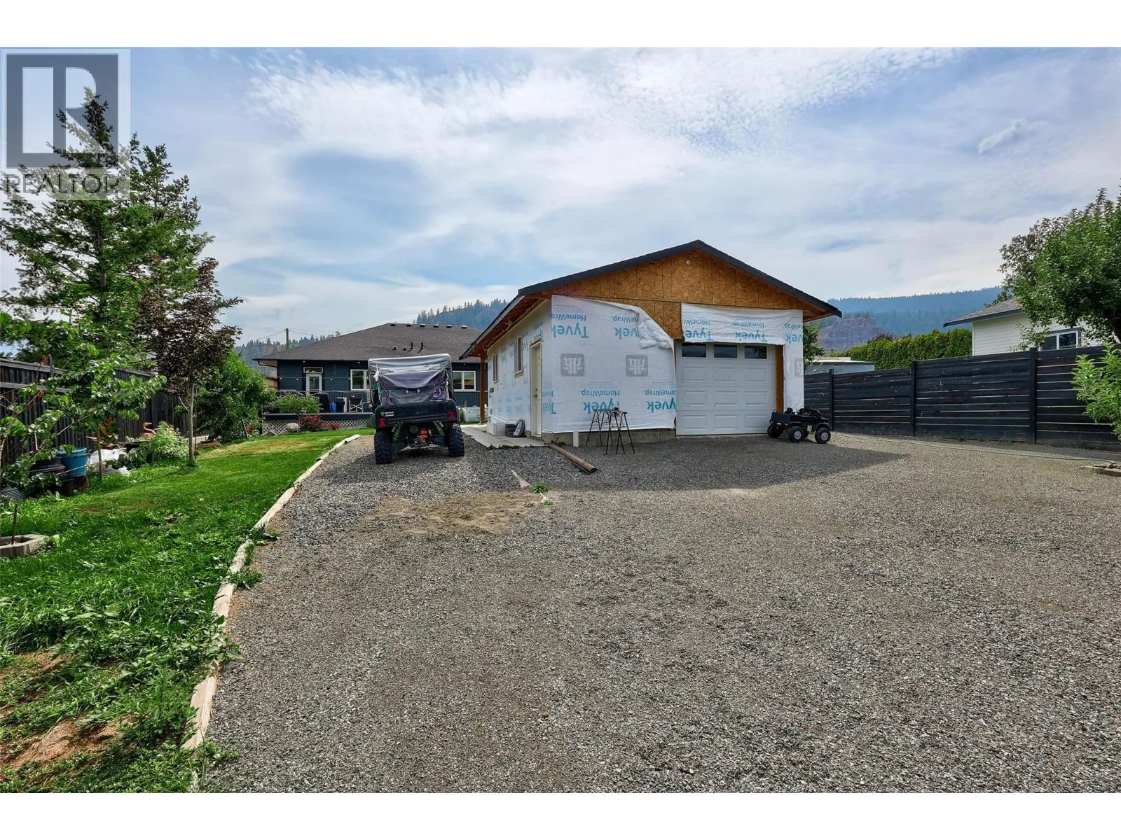 This stunning custom-built rancher offers the perfect blend of style, comfort, and functionality. Featuring 2 bedrooms and 2 bathrooms, this home boasts an open concept floor plan ideal for both everyday living and entertaining. The gorgeous custom kitchen is a true showpiece with stainless steel appliances, quartz countertops, a custom backsplash, pantry, and an abundance of storage. Throughout the home youâll find vinyl plank flooring, solid wood interior doors, and 9 ft ceilings that add to the sense of space and quality. The custom gas fireplace creates a warm focal point in the living area, while roller shades offer a sleek finishing touch. The 550 sq. ft. double garage provides plenty of parking and storage, and the impressive 30â x 30â detached shop includes a guest bedroomâperfect for visitors, hobbies, or a home-based business. Outdoor living is equally inviting with a charming front wrap-around veranda for relaxing evenings, and a large back deck overlooking the beautifully manicured, fully fenced yard. Lane access, mature fruit trees, and lush landscaping complete the picture. Additional features include RV parking, insulated Hardie board siding, hot water on demand, and central air for year-round comfort. LISTED BY RE/MAX LEGACY. Call for your private viewing. (id:27476)