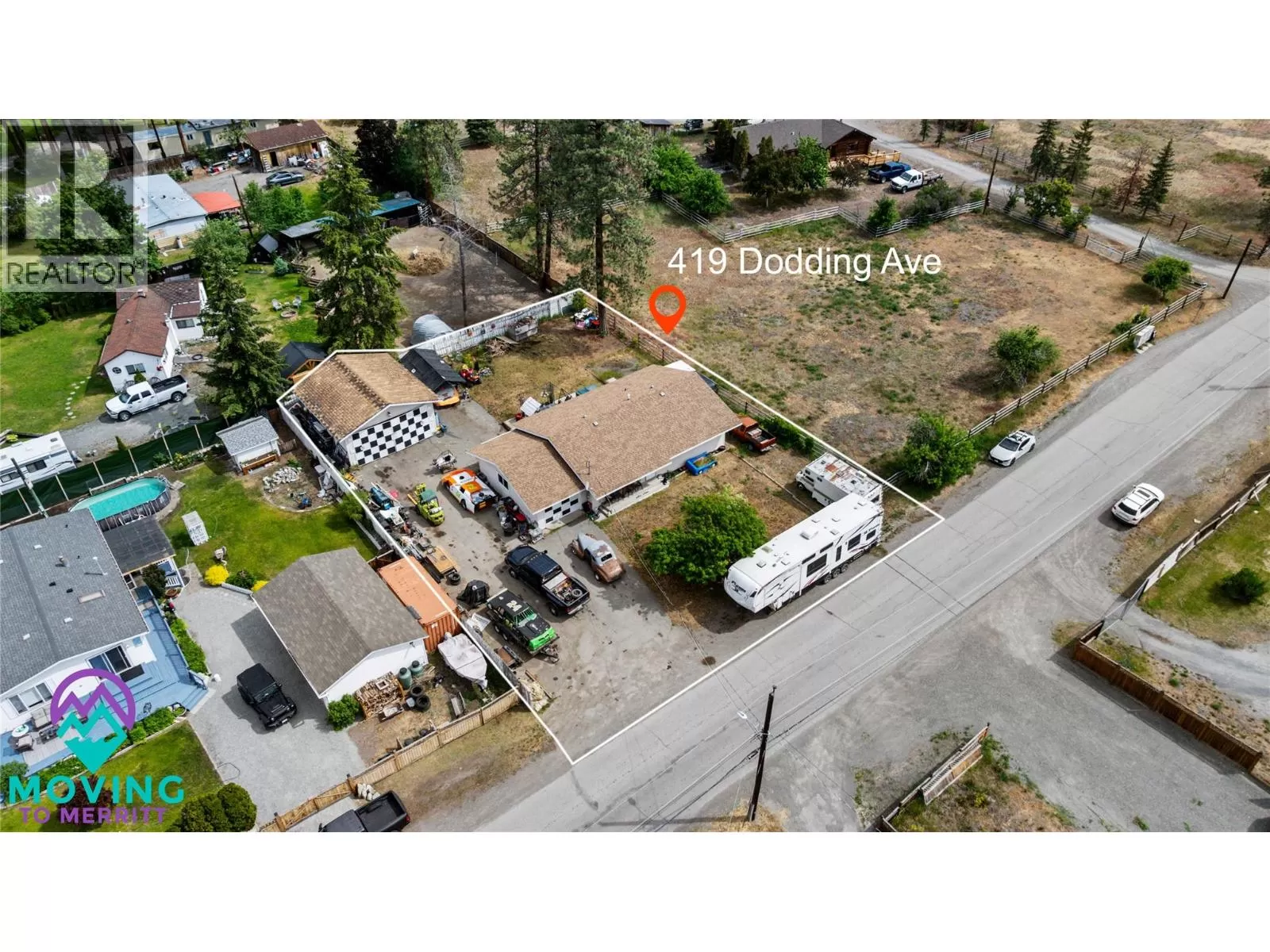 Way down yonder on Dodding Avenue, Where the shop's real big and the cars ain't few, Three beds, two baths in a rancher style, With a checkerboard shop that'll make you smile. Welcome to 419 Dodding Avenueâa laid-back slice of country life with all the room you need for toys, tools, trucks, and tons more. Set on a generous flat lot with ample parking, this homeâs got that gritty, small-town charm and practicality to boot. Inside â youâve got 1,101 sq. ft. of single-level comfort: a bright, open kitchen, a lovely living room, 3 bedrooms and 2 bathrooms, including a primary with ensuite, spacious laundry and pantry, plus the attached garage for everyday convenience. Outside â the fun really starts: massive detached shop with checkerboard doors that scream stock car garage dreams, and tons of space for RVs, trailers, and side-by-sides. Flat, usable land with plenty of open space, good neighbors, and some peace and privacy. A quarter acre with room for your critters, a garden, or maybe that pool youâve always wanted. Whether youâre a gearhead, a collector, or just want a little breathing room, this Lower Nicola gem has all the elbow room you needâand then some. Don't just dream it. Drive it. Park it. Build it. Live it. Come on down to 419 Dodding Ave, where life rolls a little slower, the music plays a little louder, and the shop doors are always open. Call listing agent Jared Thomas for more info, or book a private showing. (id:27476)