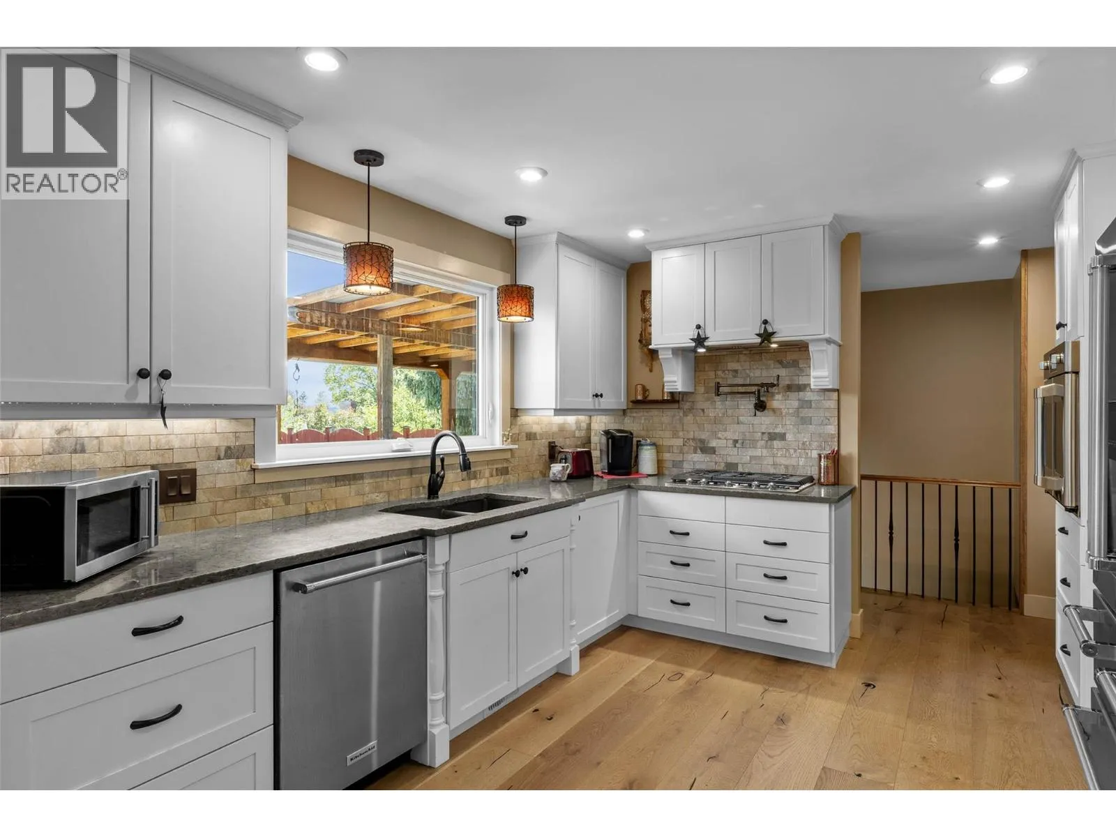 Nestled on one of the most sought-after, quiet cul-de-sacs in Merritt, this 4-bedroom, 3-bathroom home offers the perfect blend of serenity, style, and functionality. Step into an incredible custom-built chefâs kitchen designed to impress, featuring top-of-the-line finishes and expansive views out to a tranquil backyard pondâyour own private oasis. Whether youâre entertaining or enjoying a peaceful morning coffee, the beauty of nature surrounds you, all while being conveniently located on the Bench. The home is thoughtfully designed with engineered custom hardwood throughout, providing both elegance and durability. The spacious layout flows effortlessly, with natural light enhancing every room. The detached garage in the backyard is ideal for hobbyists or those needing extra storage, offering flexibility and space for your creative pursuits. Outside, mature landscaping completes this dream property, creating a picturesque and low-maintenance setting perfect for all seasons. This is more than a home. Donât miss your chance to own a truly unique and peaceful retreat in one of Merrittâs premier neighbourhoods. (id:27476)