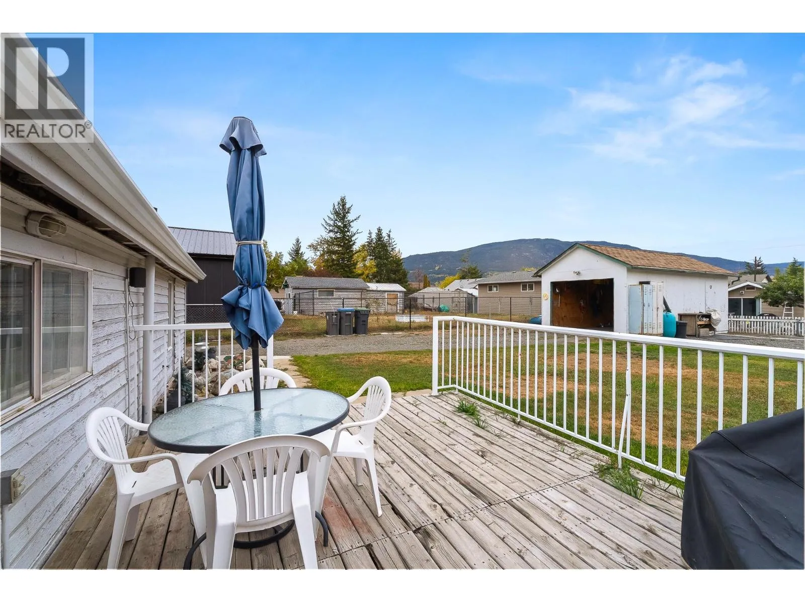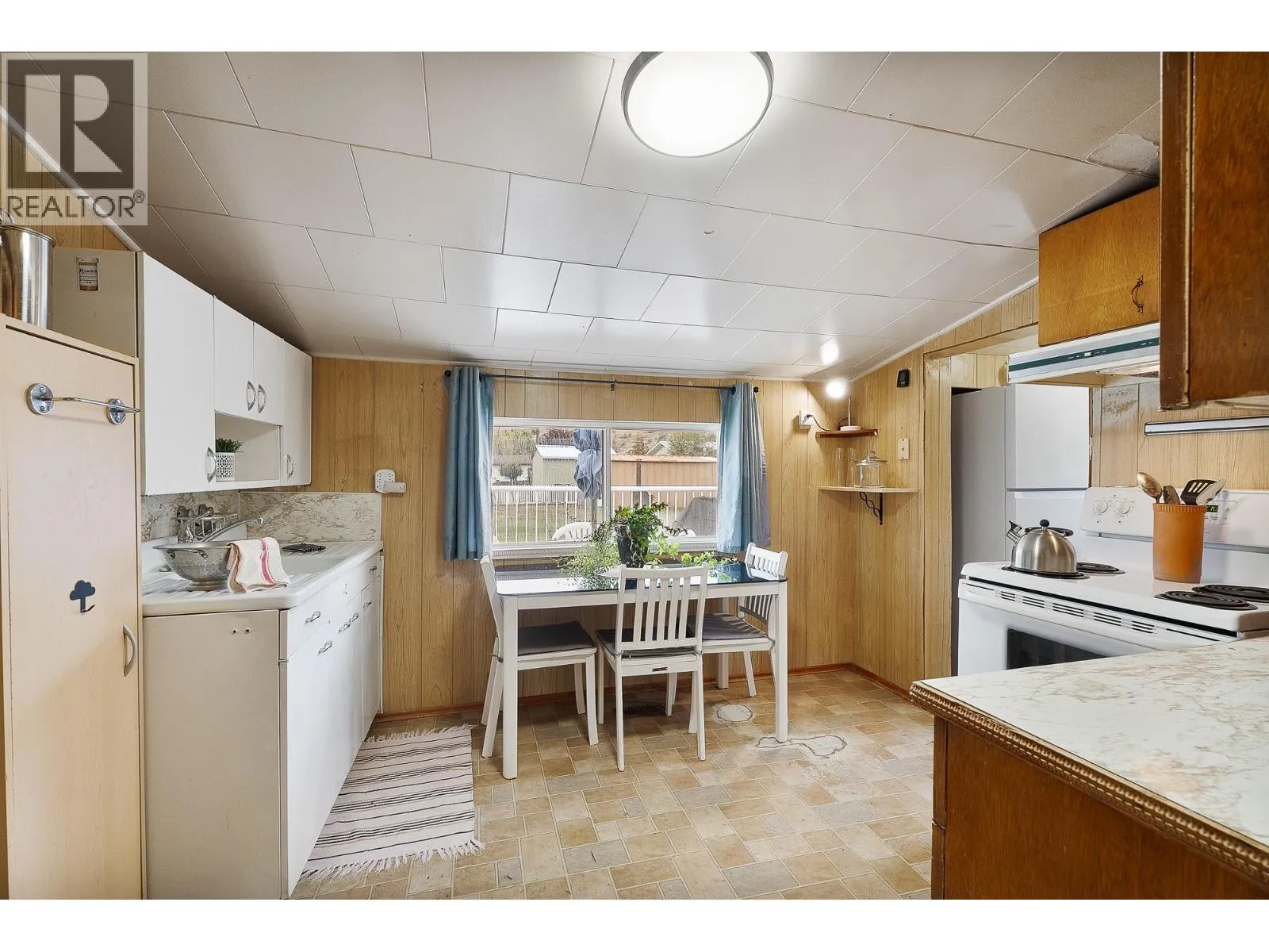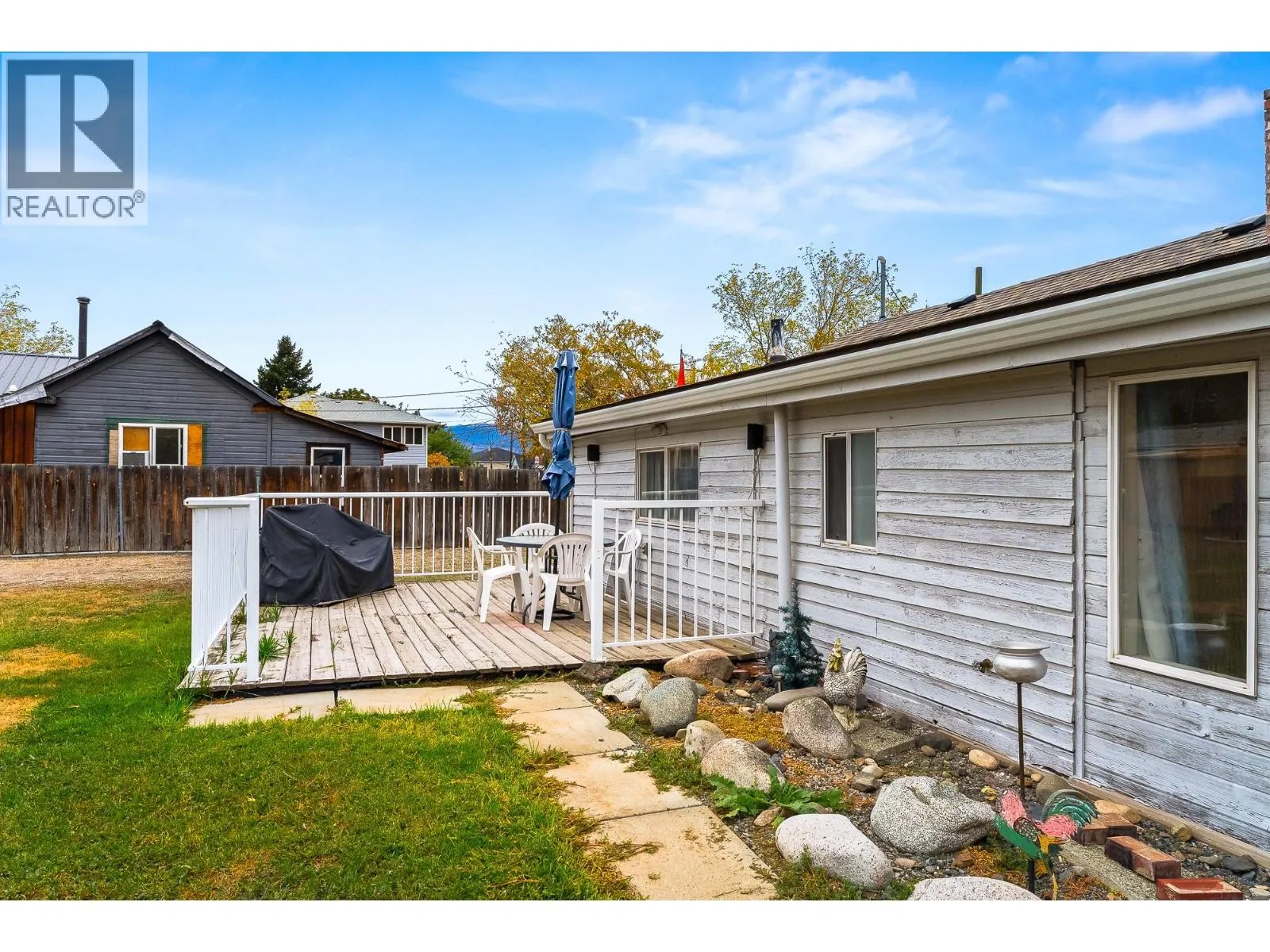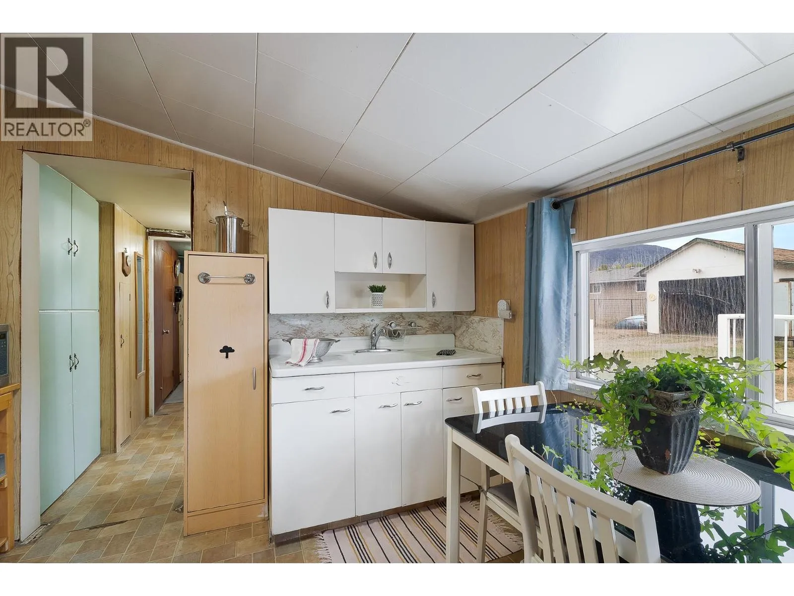 Step back in time with this 1925 character home filled with warmth and charm just 2.5 blocks from downtown Merritt! This well-loved home has truly stood the test of time, featuring a spacious living/dining area with beautiful wood trim ceilings and a cozy, vintage feel. The retro kitchen is a nostalgic delight with antique metal cabinets and the original porcelain sink and drainboard countertop. Enjoy your morning coffee on the inviting 4x18 covered front porch and unwind at dayâs end on the 12x16 back yard deck, perfect for taking in the evening sunsets. Everything you need is on one level, making this an ideal home for first-time buyers or retirees wanting easy living close to town. Extras include a large laundry room with crawl space access, a fenced backyard, a 12x24 wired single garage, and a 12x18 metal shed for tools or hobbies. The oversized 73â8â x 130â lot offers plenty of open parking and room for your RV. Recent updates: new roof (2021), natural gas furnace (2022), electric hot water tank (2022), and some vinyl windows (2004). Priced to sell at $259,000âthis home offers unbeatable value, character, and location. Book your tour today before itâs gone! (id:27476)