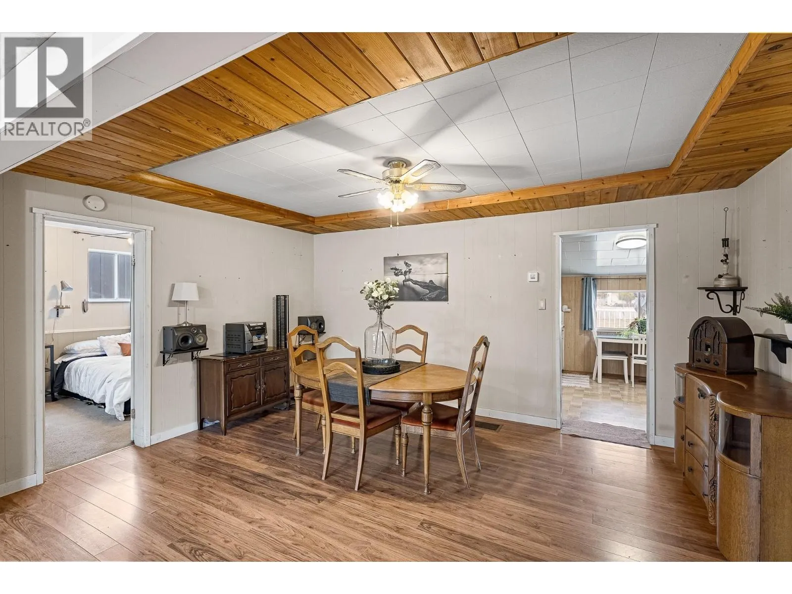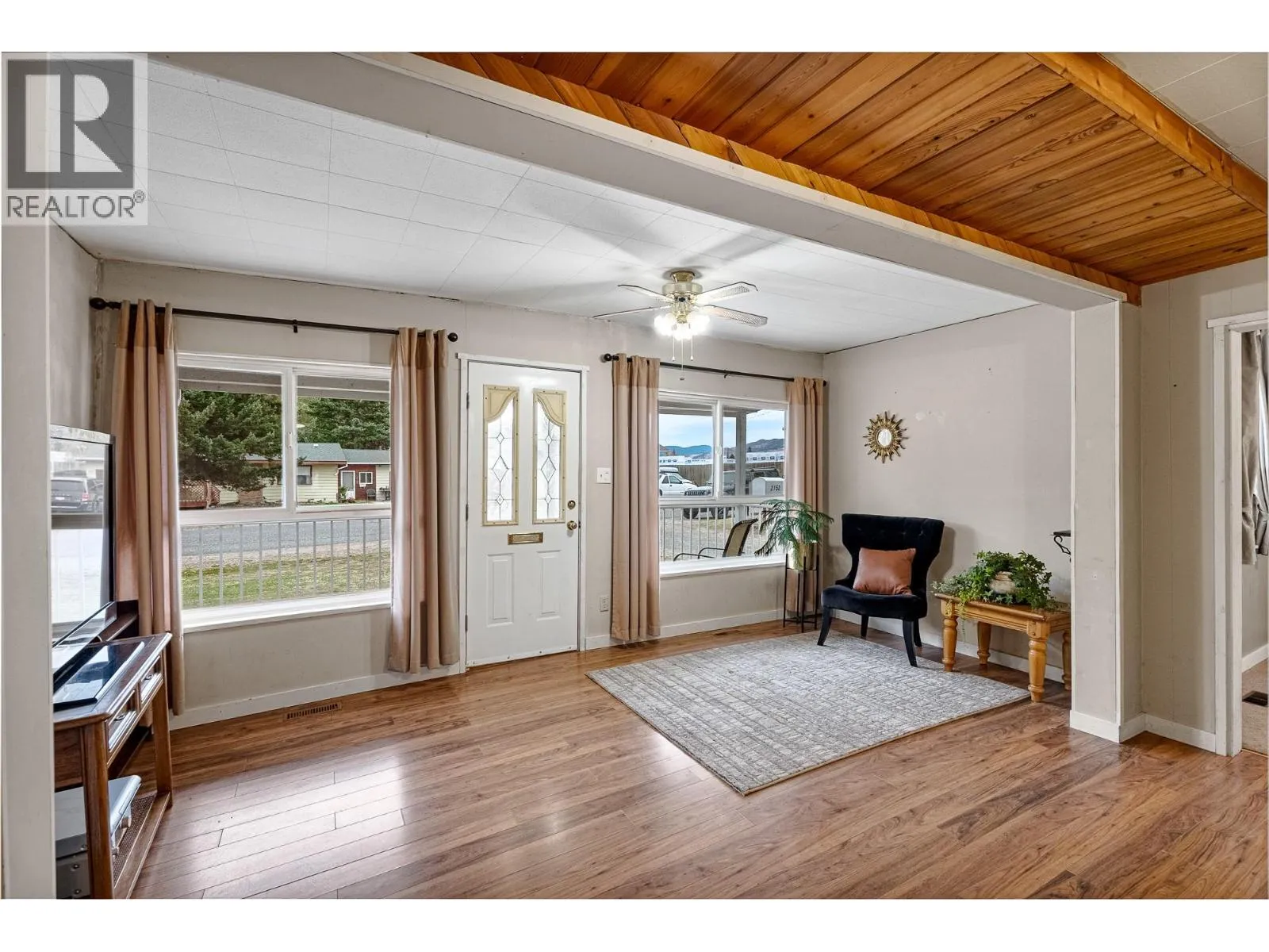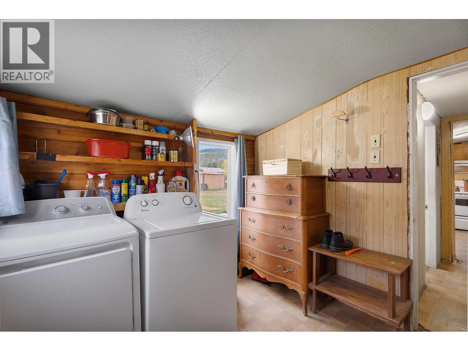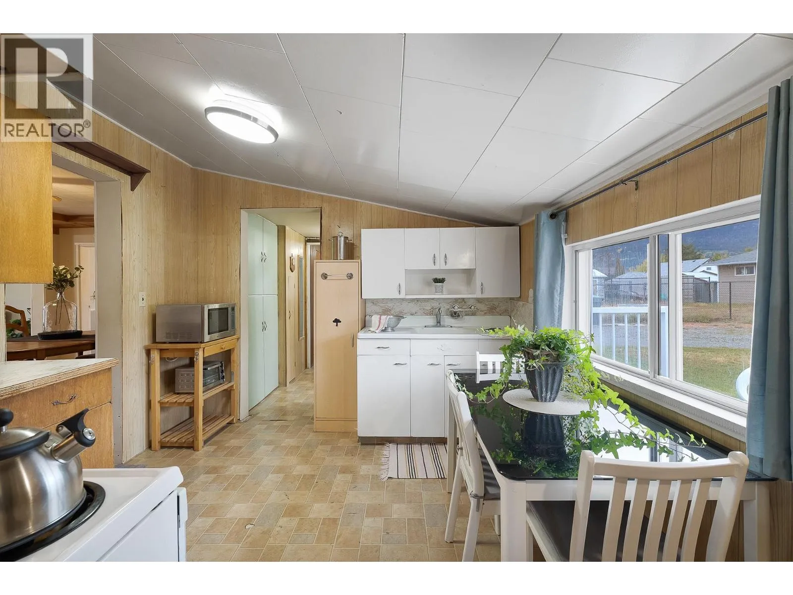 Step back in time with this 1925 character home filled with warmth and charm just 2.5 blocks from downtown Merritt! This well-loved home has truly stood the test of time, featuring a spacious living/dining area with beautiful wood trim ceilings and a cozy, vintage feel. The retro kitchen is a nostalgic delight with antique metal cabinets and the original porcelain sink and drainboard countertop. Enjoy your morning coffee on the inviting 4x18 covered front porch and unwind at dayâs end on the 12x16 back yard deck, perfect for taking in the evening sunsets. Everything you need is on one level, making this an ideal home for first-time buyers or retirees wanting easy living close to town. Extras include a large laundry room with crawl space access, a fenced backyard, a 12x24 wired single garage, and a 12x18 metal shed for tools or hobbies. The oversized 73â8â x 130â lot offers plenty of open parking and room for your RV. Recent updates: new roof (2021), natural gas furnace (2022), electric hot water tank (2022), and some vinyl windows (2004). Priced to sell at $259,000âthis home offers unbeatable value, character, and location. Book your tour today before itâs gone! (id:27476)
