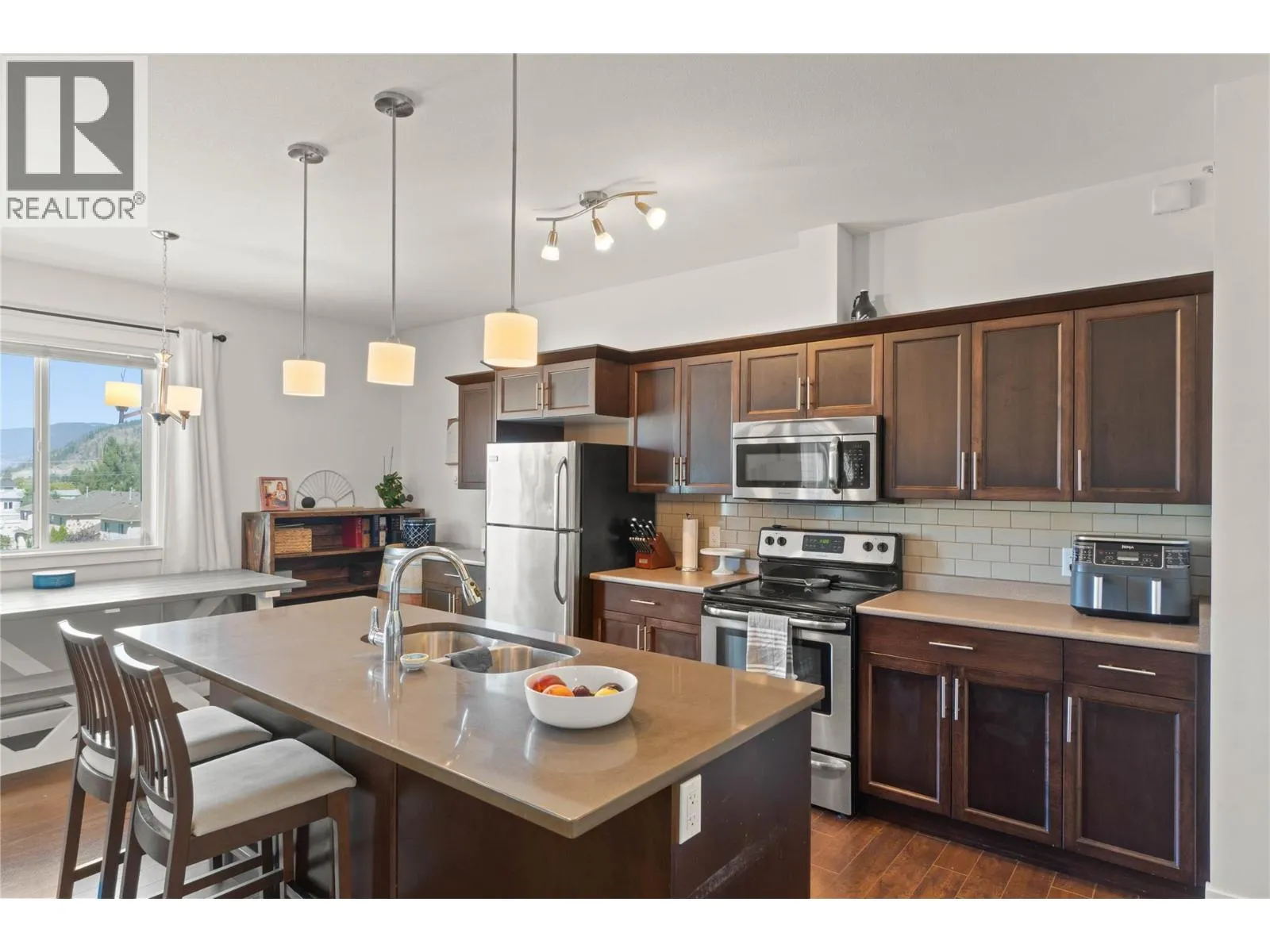 $5,000 bonus paid to the buyer upon completion! Top-floor corner unit in The Summit offering 2 spacious bedrooms and 2 full bathrooms in a quiet, well-maintained complex. This bright and open-concept layout features a large kitchen with center island and eating bar, updated paint (2021), and in-suite laundry. The primary bedroom includes a walk-through closet and 4-piece ensuite. Enjoy your private sundeck ideal for relaxing or entertaining. Bonus features include wall unit air conditioning, updated hot water tank (2024), and secure building access. Located in one of Merrittâs most desirable strata complexes with monthly fees of $275. Pets and rentals allowed. A fantastic option for first-time buyers, downsizers, or investors. Quick possession available. (id:27476)