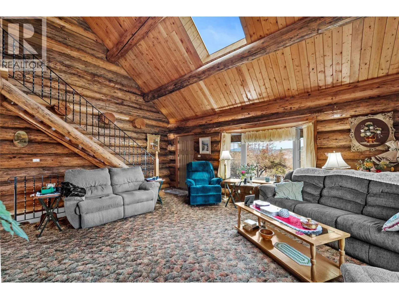 Welcome to this stunning log home retreat, perfectly located just outside of Merritt, BC, on 4 fully usable acres of beautifully maintained land. The property is fully fenced and thoughtfully set up with two pastures, a garden bed, and manicured landscaping that frames the home, creating a peaceful and private rural setting. The land offers exceptional functionality for hobby farming, animals, and outdoor living. The home itself is crafted from impressive 12-inch white pine logs, showcasing timeless construction and natural beauty. Built and lovingly maintained by the original owners who brought this log home onto the property, it reflects pride of ownership and authentic craftsmanship throughout. Inside, soaring vaulted ceilings and warm wood tones create an inviting atmosphere filled with character and charm. The home is serviced by natural gas and features thoughtful updates, including main floor window upgrades, central air conditioning installed four years ago, an updated hot water tank, and new roof and skylight completed in August 2025. The interior retains its original finishes, offering a sense of warmth, authenticity, and endless opportunity to personalize and modernize while preserving the soul of the home. This is a rare opportunity to own a truly special property that combines usable acreage, heritage craftsmanship, and timeless characterâperfect for those seeking space, privacy, and a peaceful country lifestyle just minutes from town. LISTED BY RE/MAX LEGACY (id:27476)