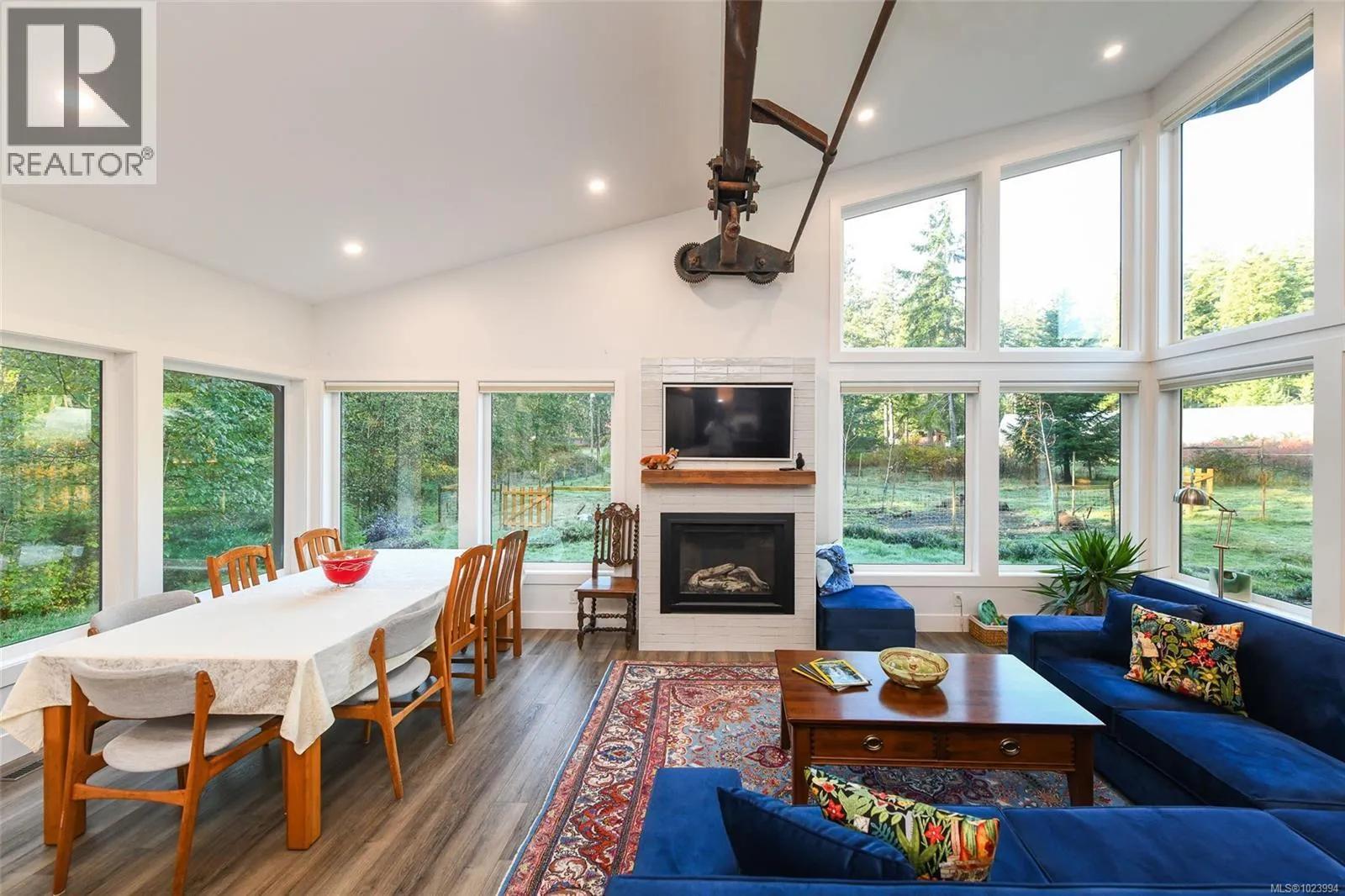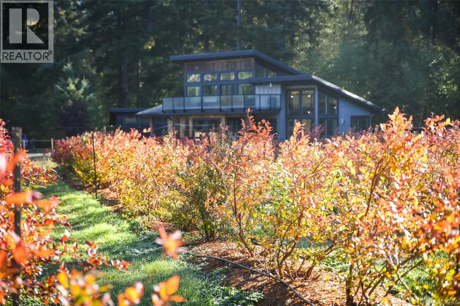 Discover serene west coast living on this nearly 5 acre sanctuary featuring a stunning, 2021 built, modern home with 3 bedrooms, 2 bathrooms, soaring ceilings, brilliant natural light, a dedicated office space, and a sunroom that frames gorgeous views of the propertyâs well established blueberry farm with approx. 300 thriving plants across four varietals that are fully irrigated. The main home features in floor heat in the bathrooms, Hunter Douglas custom blinds, and a vintage 1-ton hoist on display. A charming, secondary 2023 built Cameron Construction modular, rancher style home offers 2 bedrooms and 1 bathroom, perfect for guests, multigenerational living, or rental income. This home has custom blinds throughout and a 750 sqft cedar deck with a 4 person hot tub. Exceptional privacy is enhanced by two separate driveways, full fencing and an array of outbuildings, including a detached heated garage, 100ft greenhouse, chicken coop, storage sheds, a sheep shed, and a cozy art studio. (id:27476)