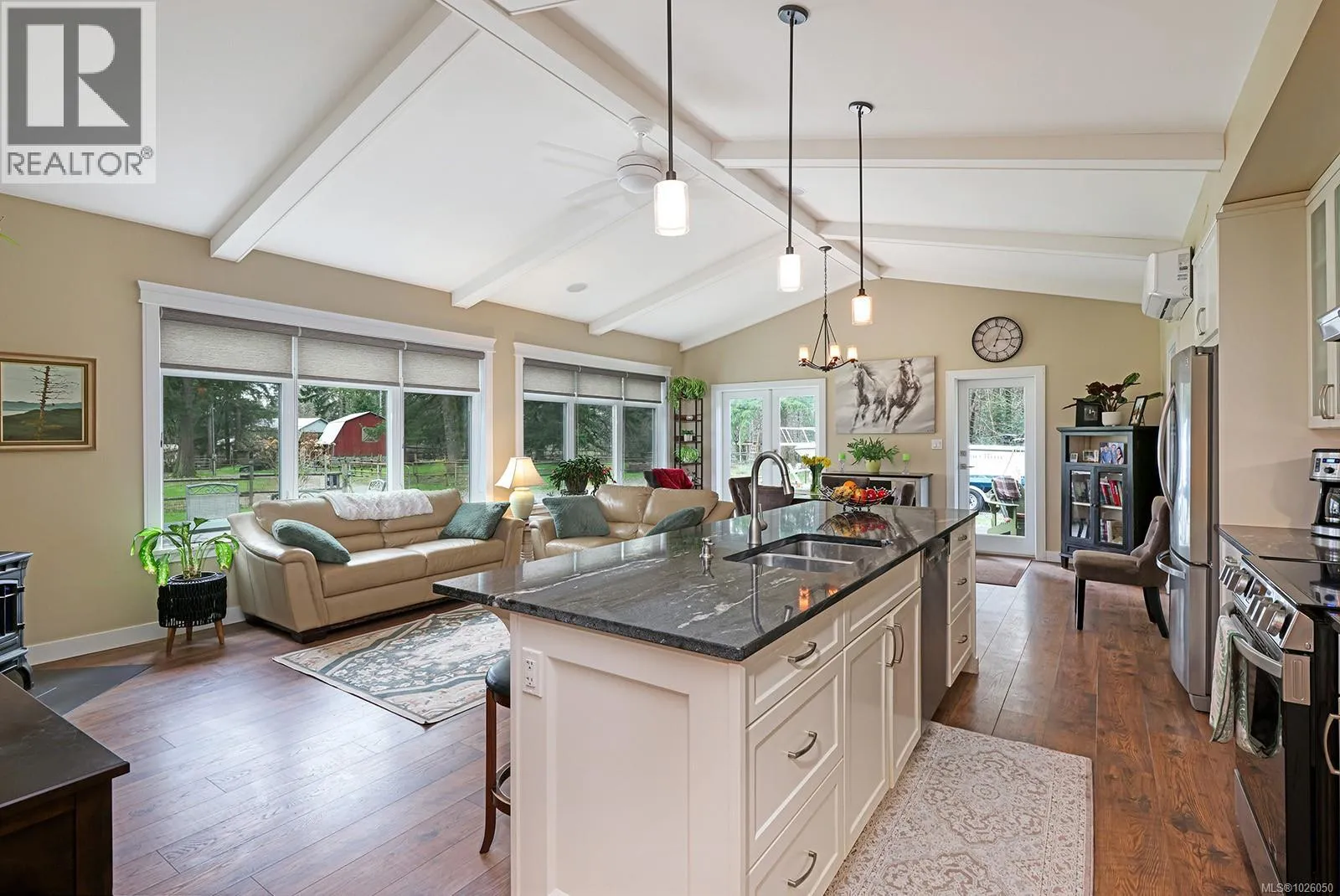 What an absolute dream - 5 beautiful acres, two turnkey homes located on a quiet dead-end street close to Courtenay in the Huband Elementary catchment. The larger home has four bedrooms on the upper floor, cozy wood stove in the bright living room, a country kitchen and unfinished lower family room - it sits closest to the road near the detached shop and fenced garden area. There are more gardens, coops and a lovely red barn between the large home and the newer rancher. A two bedroom rancher built in 2015, with vaulted ceilings and an open layout sits at the rear of the property with its own privacy backing onto ALR farmland. The homes have ample privacy from each other and surrounding properties. Both homes share a well that flows well and provides quality water. They each have their own septic systems. This set up is ideal for multigenerational arrangements, rental income or shared-land. Bring your ideas and put down roots. (id:27476)