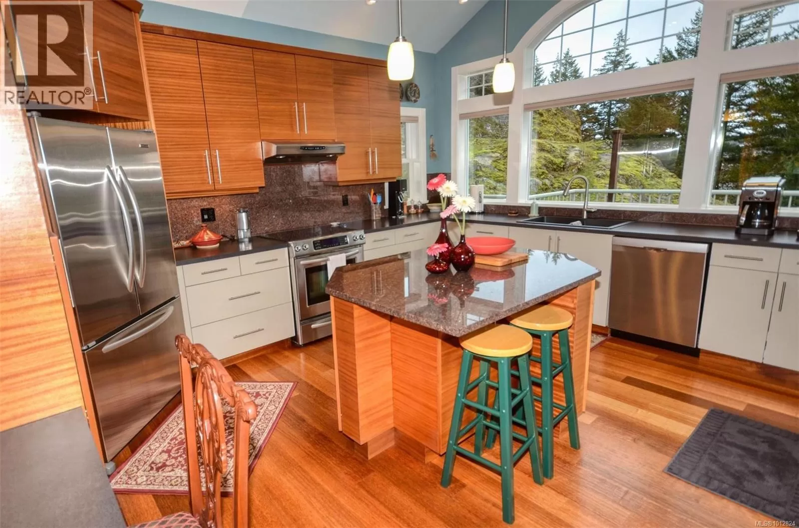 This first time on the market, 4 bedroom, 4 bath, custom residence , by KB Design, provides stunning views of Juan de Fuca Strait and the Olympic Mountains. Enjoy morning coffee while taking in the ocean views and the beautiful majestic Olympic range from the spacious deck. Placed on a 4 acre parcel with park at its edge, this one of a kind home is nestled on a quiet no-thru street. Enjoy the beautiful hardwood floors throughout. Luxuriate in the master ensuite with heated floors and relax in the jetted soaker tub. Both the media and living rooms are wired for sound. Oodles of heated storage, a double garage, heat pump for chilly winter nights and air conditioning for the summer. Easy care Hardi-plank siding, long lasting composite decking and aluminum glass railings complement the outdoor living space. An irrigation system services the rock garden adjacent to the driveway. Emergency generator will remain which has its own built in circuit. Live in luxury in this serene, peaceful and natural setting. Fifteen minutes to the shopping and medical/dental services in Royal Bay. Overnight notice appreciated. Home is alarmed. Call to confirm your visit. (id:27476)