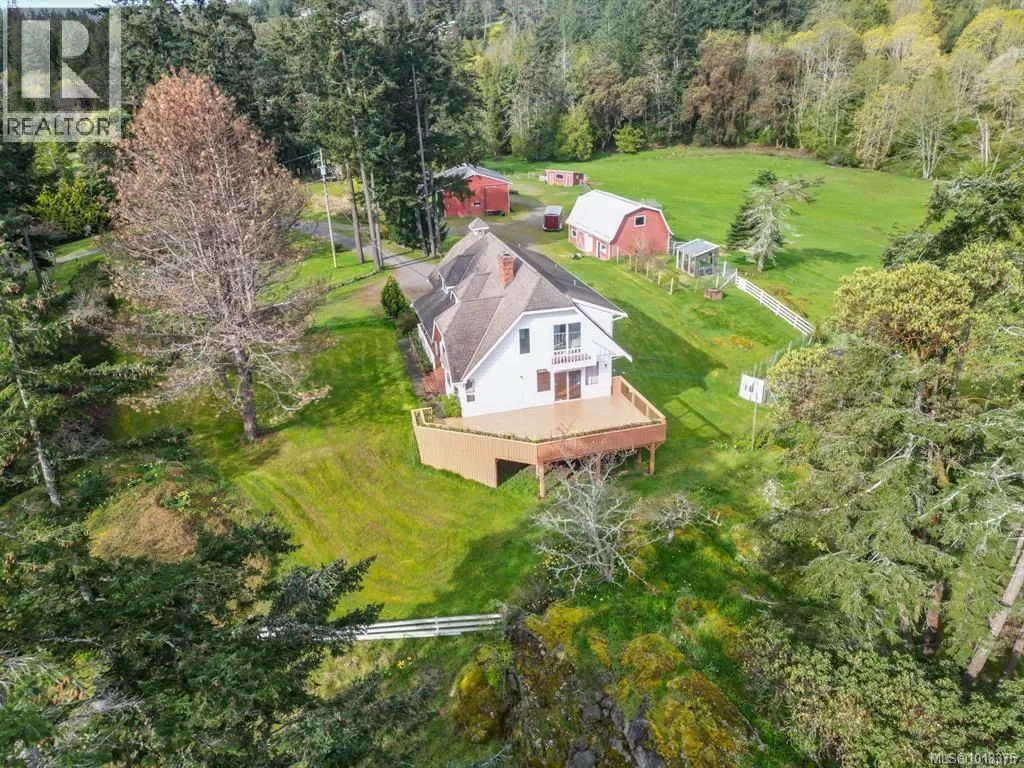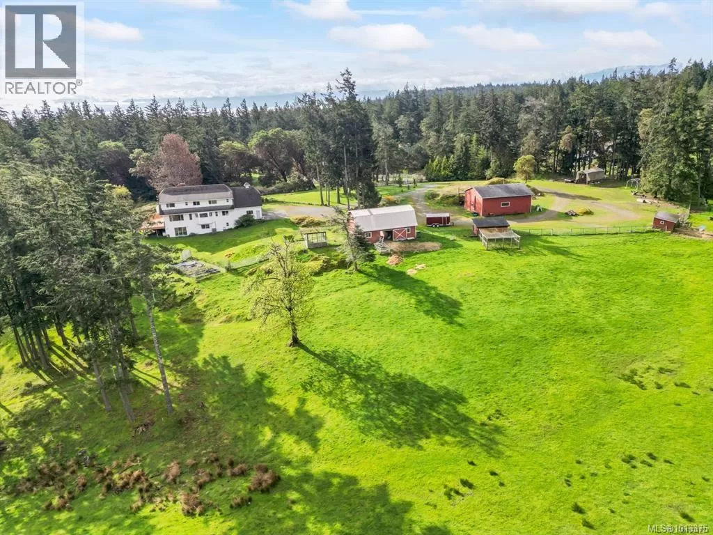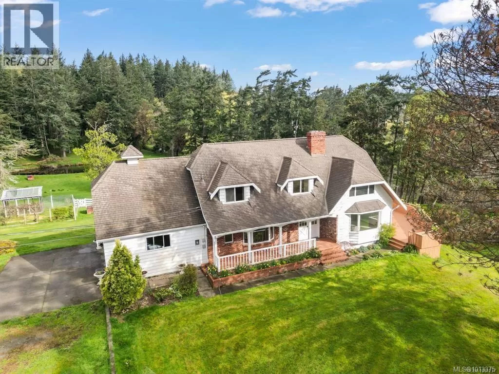 Private 10-acre retreat in Metchosin! This serene countryside property offers the perfect blend of rural charm and coastal convenience, just minutes from parks, beaches, and the Galloping Goose Trail. The 4,000+ sq ft home features 5 bedrooms, 4 bathrooms, formal living/dining, and a bright country kitchen with bay window overlooking lush gardens. Hardwood floors, cozy fireplace, and southwest-facing deck make it perfect for entertaining. Upstairs boasts a spacious primary suite with ensuite, sitting area, and private balcony. Walkout basement has roughed-in plumbing for a kitchen and bathroomâideal for a future suite or custom space. The fully fenced acreage is set up for hobby farming or horses and includes a 1,286 sq ft shop with 14-ft ceilings & 220-amp power. Additional outbuildings include a chicken coop, garden shed & pond. Located at the end of a quiet lane, backing onto the trailâthis is your chance to enjoy peaceful rural living with city convenience nearby! Contact Shane Cyr @ eXp Realty to book your private showing 250-893-9164 (id:27476)