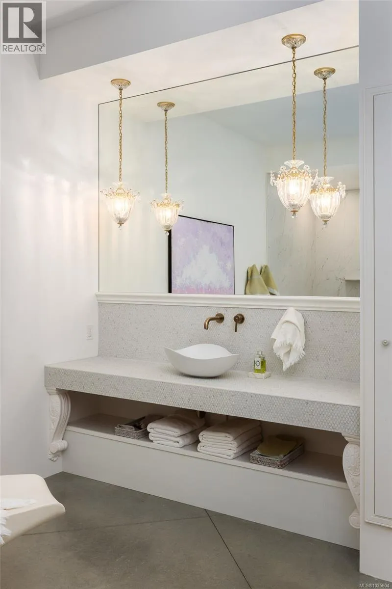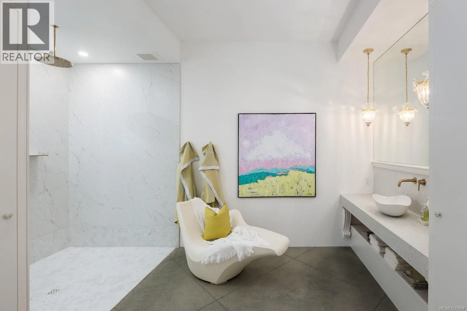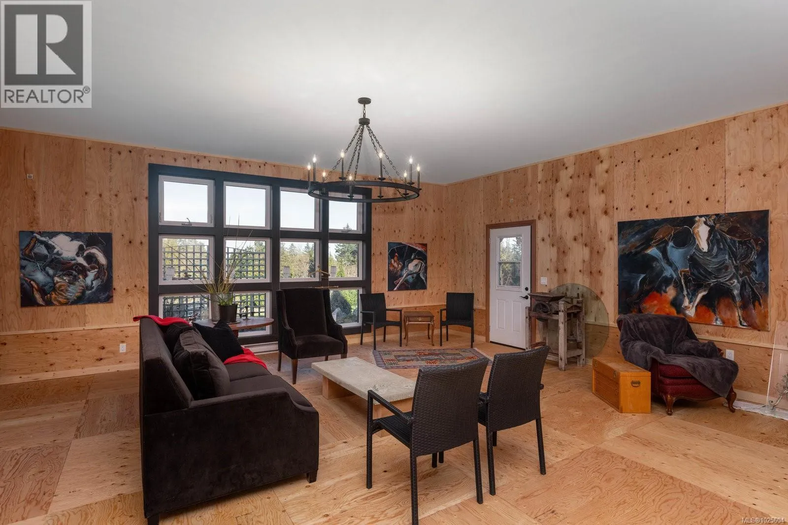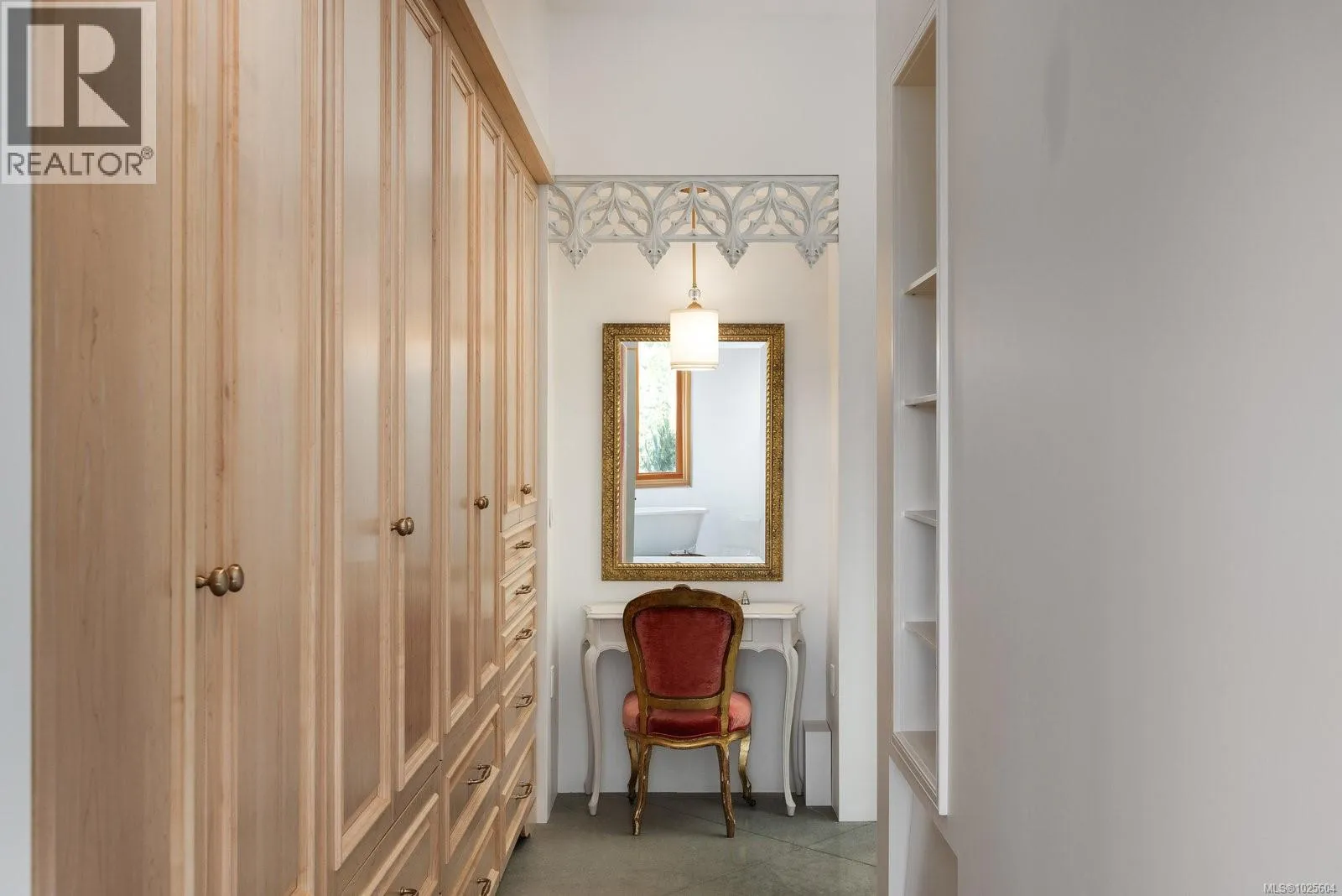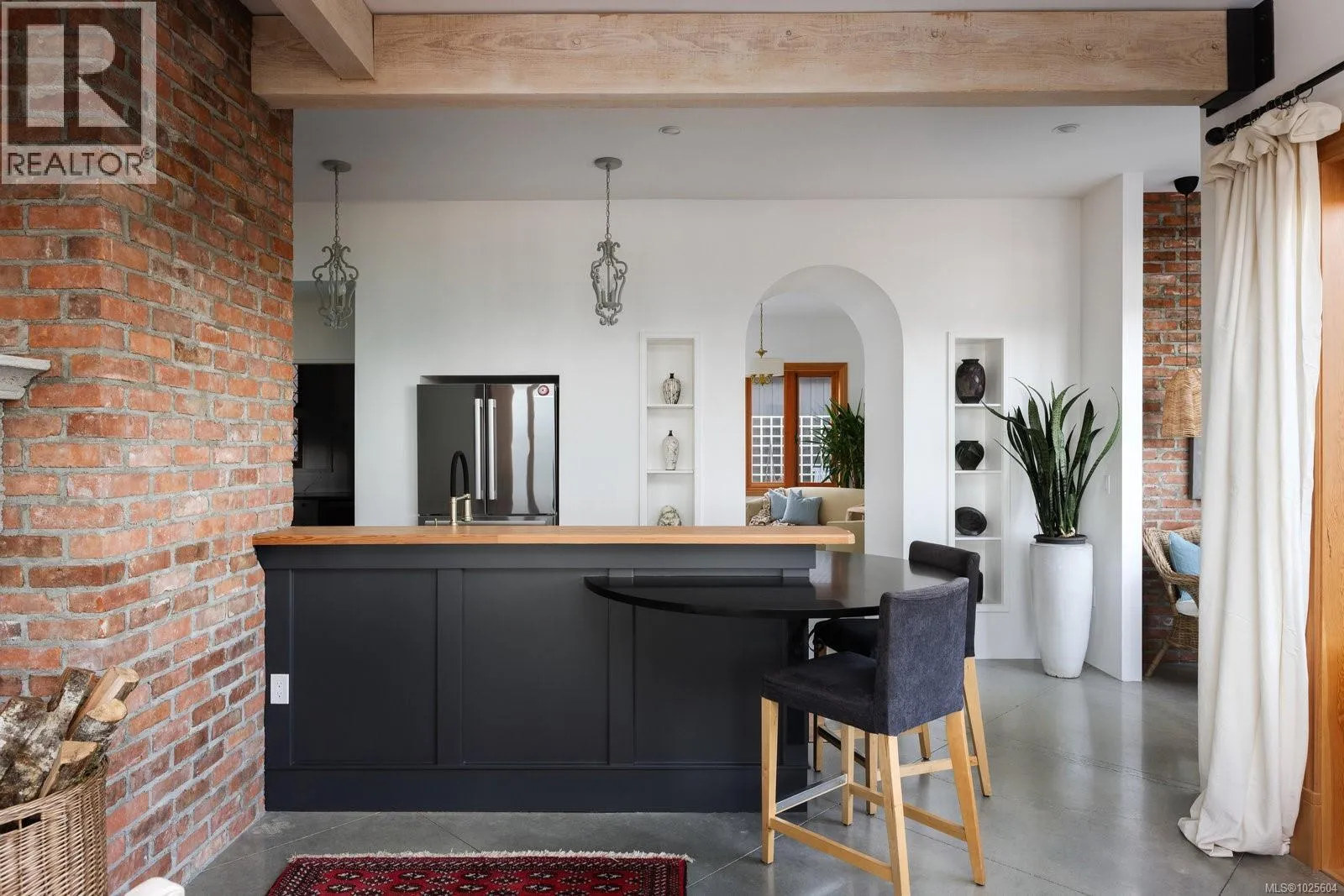 Nestled on 2.4 acres of gently rolling hillside, this exceptional Metchosin estate combines a spacious 4,000 plus square foot single-level home with a 1,380 square foot detached building featuring an art studio complete with its own bathroom, plus a workshop and garage. The exterior reflects timeless French provincial elegance, with a granite façade, wrought iron detailing, and a concrete water feature that immediately signals the level of craftsmanship inside. Inside, the home blends warmth with artistry. Polished concrete floors, exposed ceiling beams, reclaimed brick accents, and inlaid wood detailing create a layered, inviting atmosphere rarely seen in modern construction. The expansive great room is centered around a bespoke fireplace and opens to the patio through multiple custom French doors, making it ideal for both entertaining and everyday living. The kitchen is thoughtfully designed, featuring a dedicated prep area that complements the main cooking space for convenience and functionality. The primary suite provides a serene retreat, offering comfort and privacy for even the most discerning homeowner. Geothermal heating enhances energy efficiency and lowers the homeâs environmental impact. From every vantage point, the property offers sweeping vistas across Haro Strait to the Olympic Mountains, providing a dramatic and inspiring natural backdrop to this one-of-a-kind estate. (id:27476)