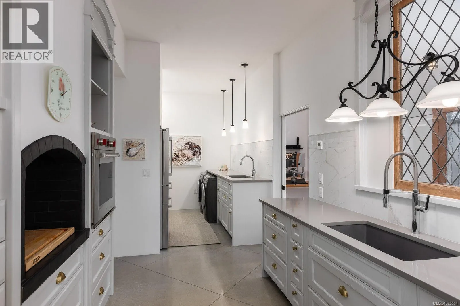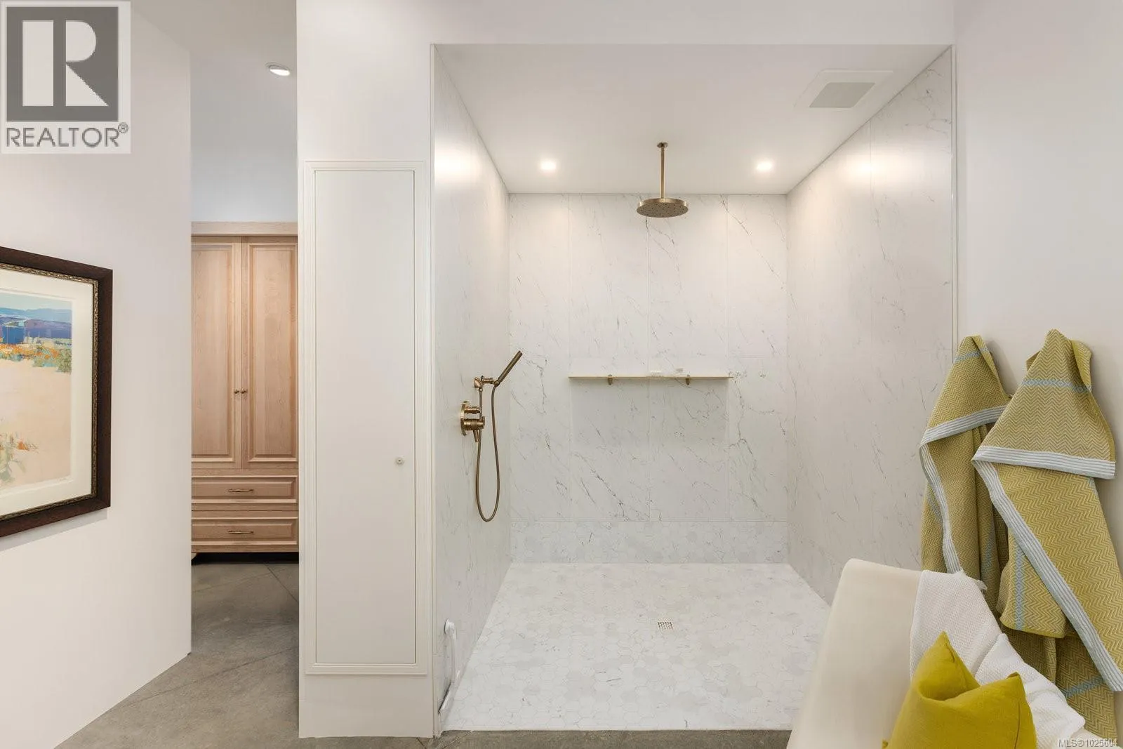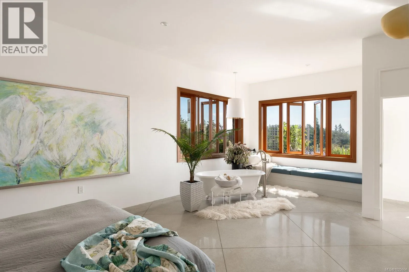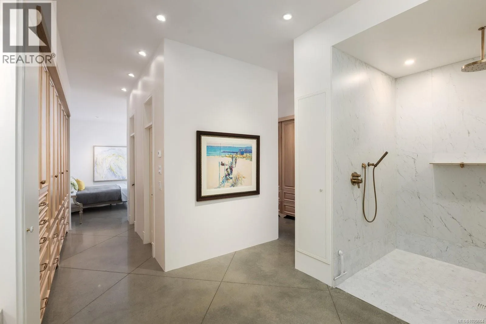Nestled on 2.4 acres of gently rolling hillside, this exceptional Metchosin estate combines a spacious 4,000 plus square foot single-level home with a 1,380 square foot detached building featuring an art studio complete with its own bathroom, plus a workshop and garage. The exterior reflects timeless French provincial elegance, with a granite façade, wrought iron detailing, and a concrete water feature that immediately signals the level of craftsmanship inside. Inside, the home blends warmth with artistry. Polished concrete floors, exposed ceiling beams, reclaimed brick accents, and inlaid wood detailing create a layered, inviting atmosphere rarely seen in modern construction. The expansive great room is centered around a bespoke fireplace and opens to the patio through multiple custom French doors, making it ideal for both entertaining and everyday living. The kitchen is thoughtfully designed, featuring a dedicated prep area that complements the main cooking space for convenience and functionality. The primary suite provides a serene retreat, offering comfort and privacy for even the most discerning homeowner. Geothermal heating enhances energy efficiency and lowers the homeâs environmental impact. From every vantage point, the property offers sweeping vistas across Haro Strait to the Olympic Mountains, providing a dramatic and inspiring natural backdrop to this one-of-a-kind estate. (id:27476)