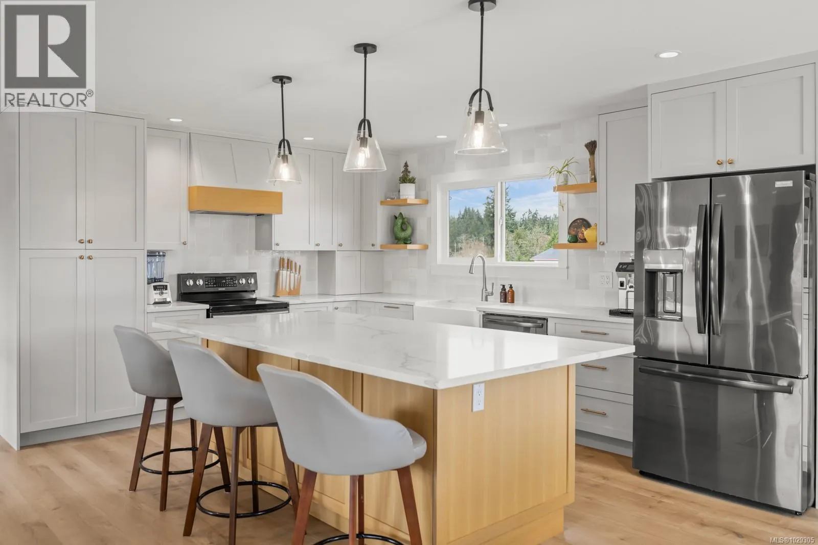 Welcome to 4425 Happy Valley Road, a rare opportunity to own over 2 acres of flat, usable land in the peaceful community of Metchosin. This 4-bedroom, 3-bathroom home offers the perfect balance of rural tranquility. Large windows fill the space with natural light, with open-concept living, dining & kitchen areas. The renovated kitchen features quartz countertops, oversized island & farmhouse sink. Upstairs, spacious bedrooms provide comfort & privacy. The primary retreat offers a large WIC with built-ins & ensuite with dual sinks & walk-in shower. The lower level includes two more bedrooms, a large rec room & laundry. The property features a fully fenced area and endless potential for gardening, animals, recreation, or future expansion. Includes garage sub-panel, EV charger & updated electrical. This is the lifestyle property you have been waiting for, book your showing today! Contact Shane Cyr @ 250-893-9164 to book your private showing. (id:27476)