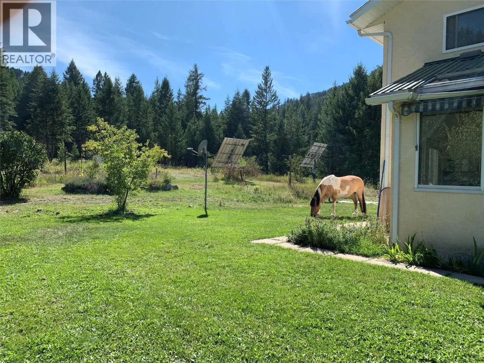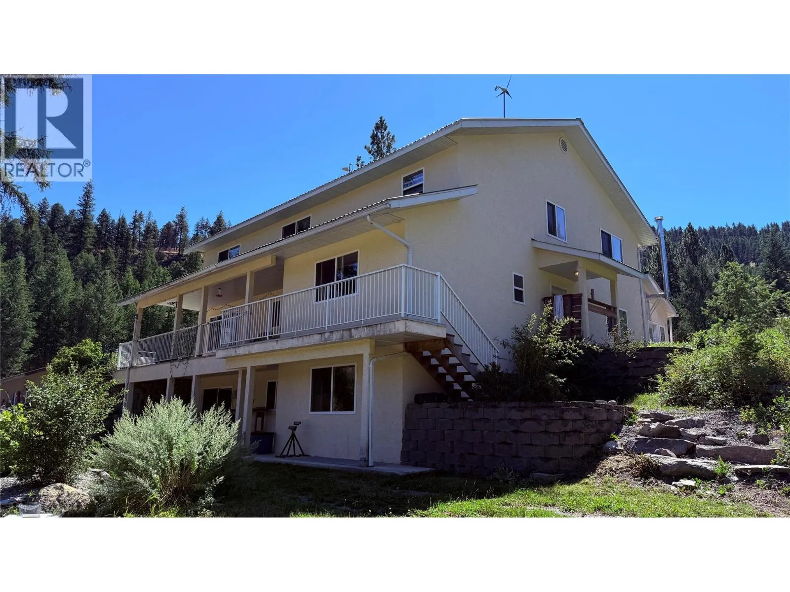 Peaceful, picturesque, off grid house and acreage in Midway, BC. Wonderful property for an eco minded, self sustaining lifestyle. Built with ICF blocks. Large, over 5000 Sq Ft, 6 bedroom, 3 full bathroom home, with 2 kitchens! Each bedroom is large enough for a king size bed! Multiple wood heat sources, and large solar system. House has 48 volt, wind and solar power generation, with an automatic diesel backup generator. Main source of heat is a wood/ propane boiler system. This 14 acre parcel has plenty of trees, and an additional 11 acre, easement for grazing for your animals. Cedro Creek runs right through the property! 2 large paddocks, 2 pasture areas for your horses, livestock to graze, with easy access to the creek. Outdoor riding arena with wood fence. Several frost free standpipes conveniently located close to paddock and chicken coop. Large 60X60 barn with loft, and areas for workshop and pens. 2 large solariums off main floor for starting your plants, and growing your herbs year round. Massive deer fenced garden, with irrigation pipes for your self sustaining needs. Well has a generator, as well as a hand pump backup for the large cistern. Property backs onto crown land, allowing you to ride out of your back yard, for endless hiking, biking, cross country skiing or horseback riding. Several ski hills close by as well as a golf course! Midway is only a short drive away. All conveniences of a traditional home are provided without power bills. Call your Realtor today! (id:27476)