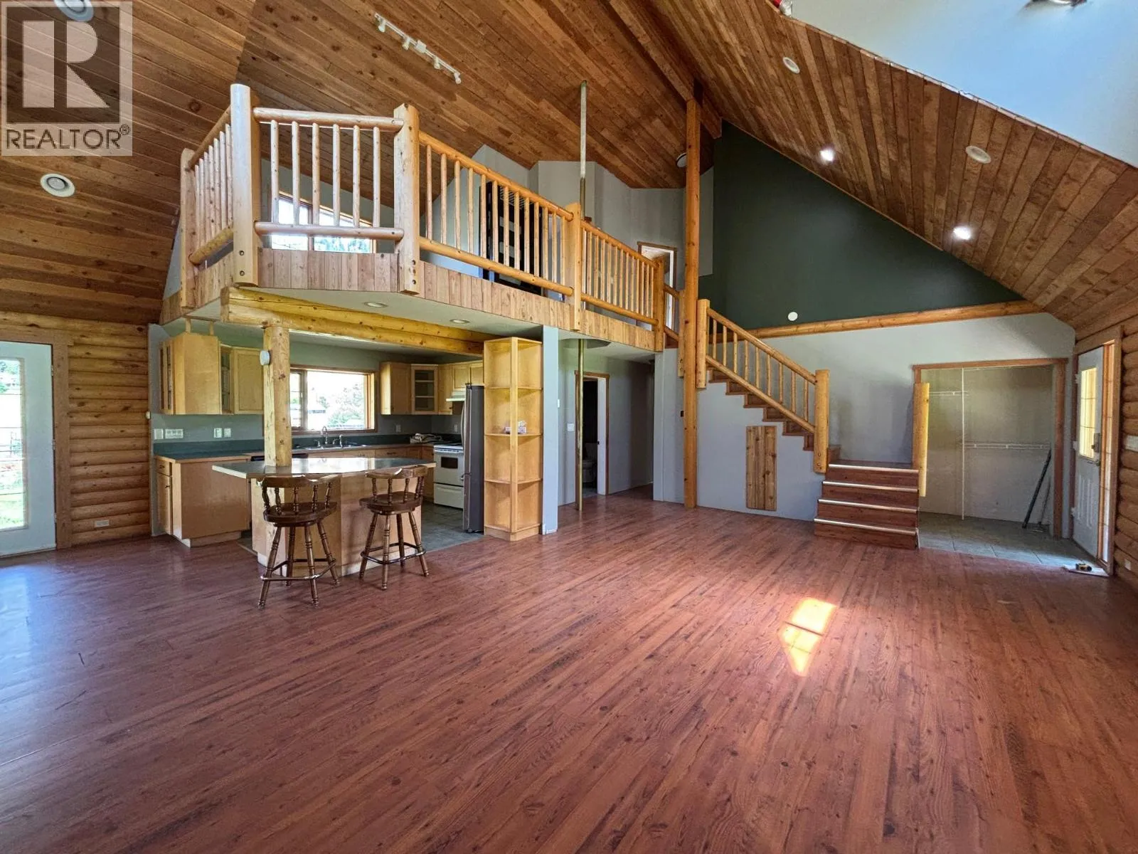 Come enjoy the Village of Midway and bring your horses! This beautiful log home is 3 bed, 3 bath with a robust vaulted ceiling and it's own fireman's pole! open concept living with an office/den overlooking the living space. The 4+ acres is situated north of hwy 3 and has an irrigation well for the field. Enjoy the quiet neighborhood and private yard full of mature trees. If you'd like to retire with a few critters or have a growing family, this property will suit you. Large fenced yard and plenty of space for a garden. Call your realtor to view. (id:27476)