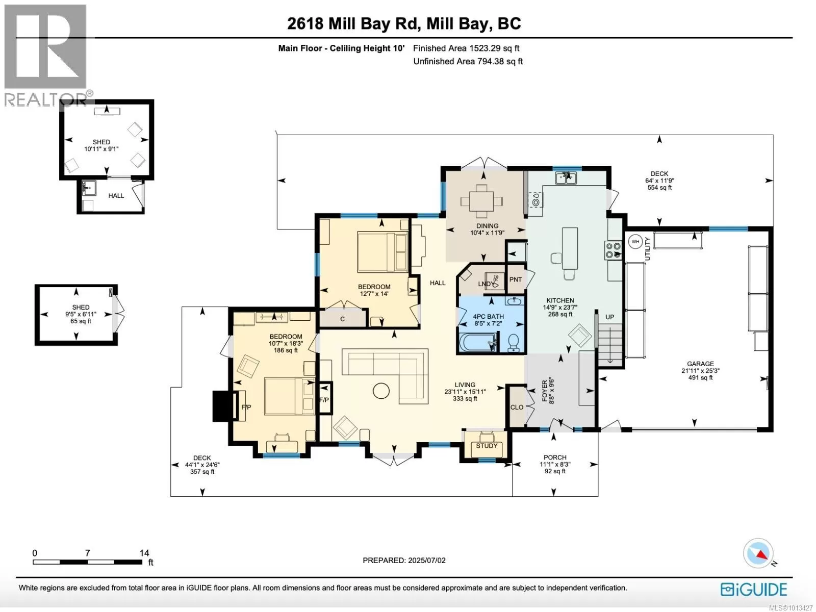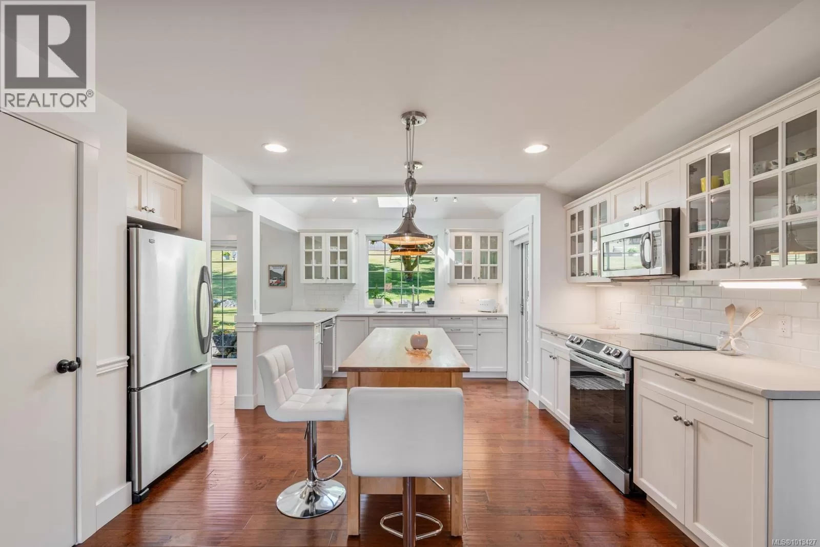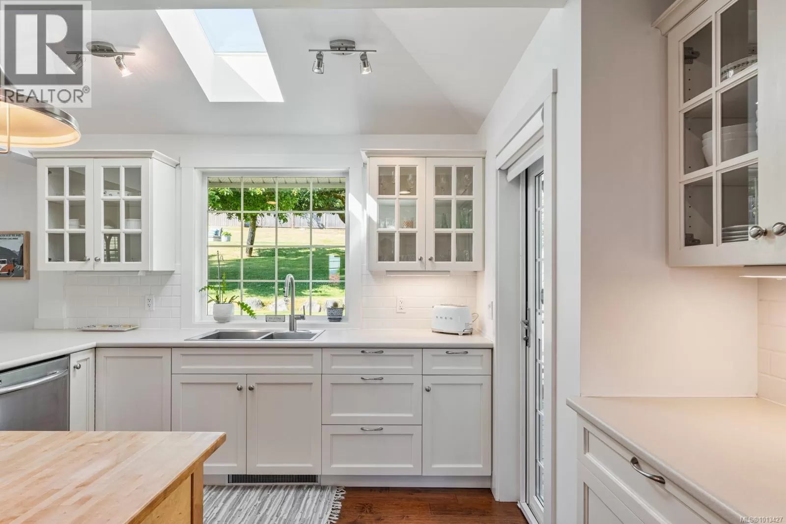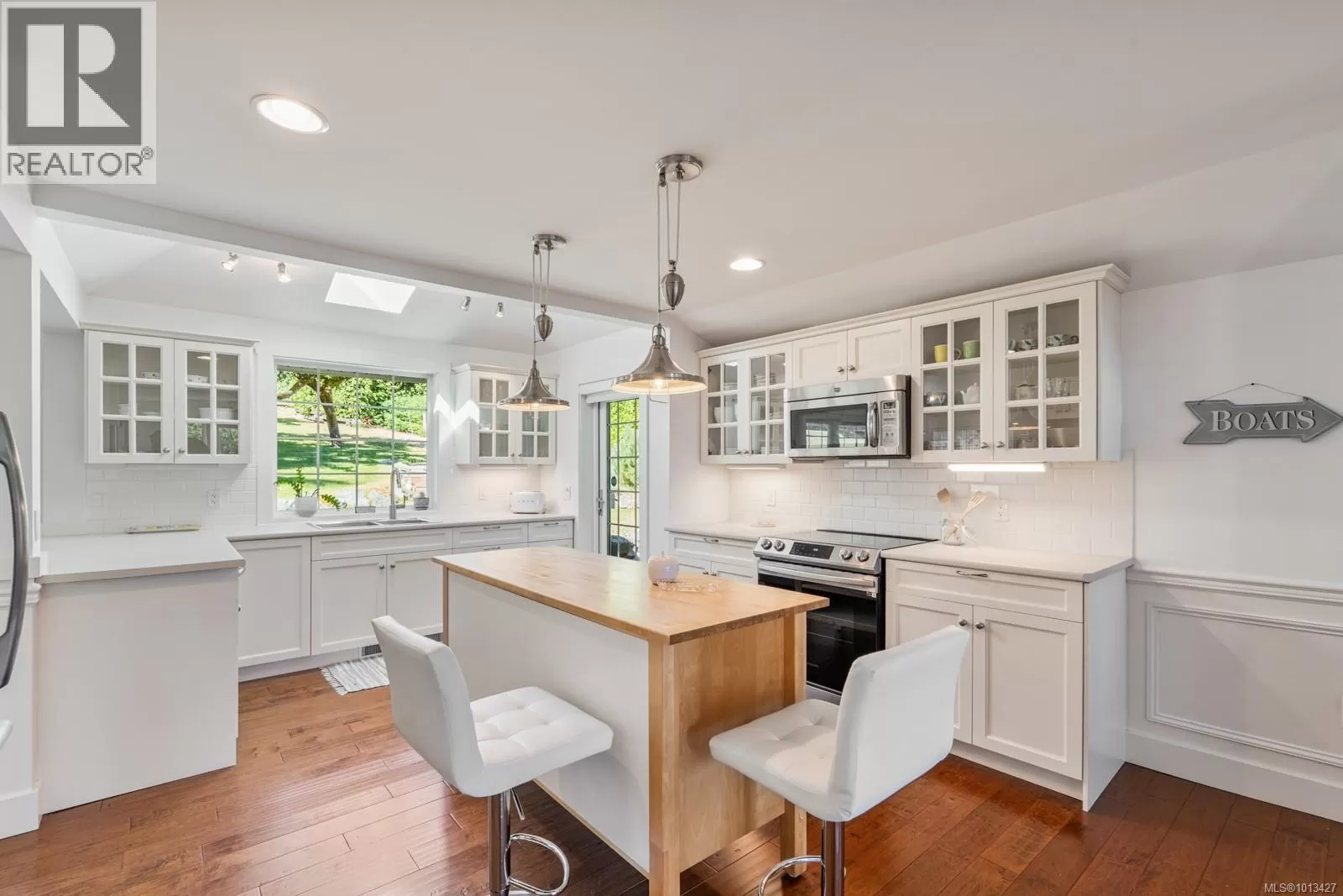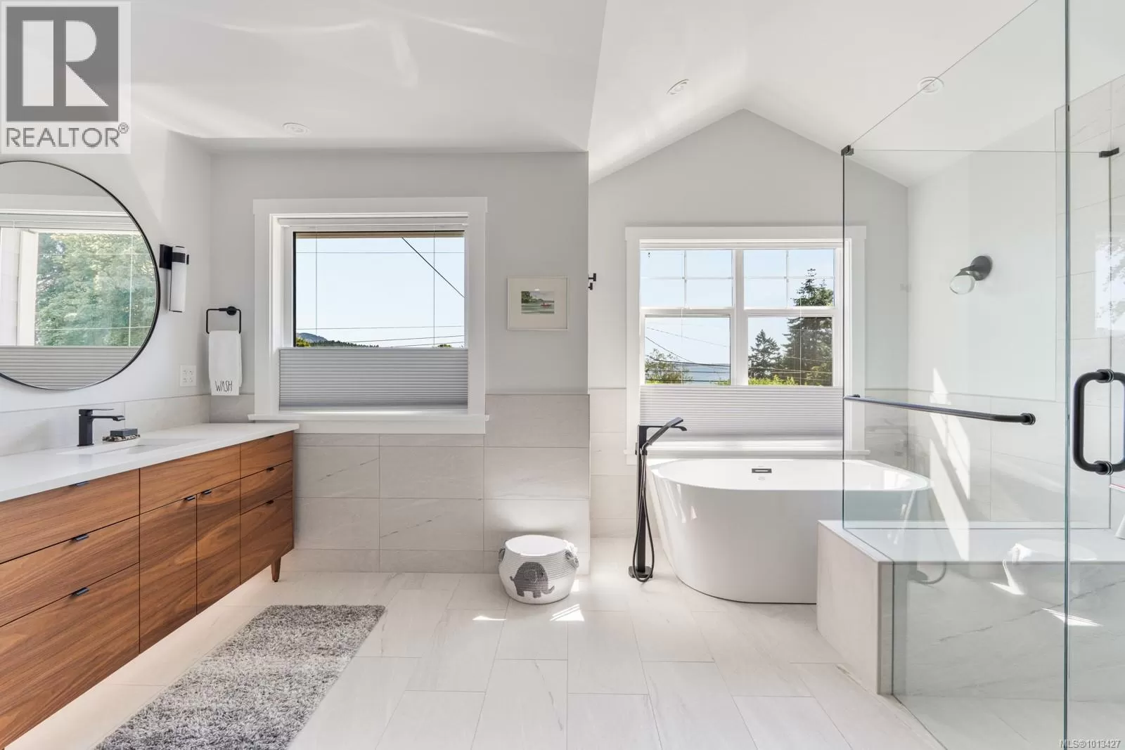 Ocean views and total privacy in prime, much desired Mill Bay nestled in the Cowichan Valley. Gorgeous, immaculate 3bed 2bath fully renovated home (2011) steps to the ocean. Peaceful private home with portal window in living room heat pumps, 2FP gas and wood, skylight, hardwood floors, designer lighting, built ins and wainscotting throughout. Kitchen with island overlooks the landscaped private fully fenced yard perfect for family and furry family and friends alike. Wrap around gated deck, security system, sensor lights. This home has +100k in luxury updates (2023) including spacious, spa inspired primary bed/bath oasis. Cork underlay, hypoallergenic wool blend carpet, heated bath tiles, soaker tub, triple pane windows custom wardrobe. Views to orchard in back, ocean in front. 2 car heated garage with extra parking for RV/boat, whole home water softener. Insulated crawlspace with fan. Large outbuilding with sub-panel great for office, gym, shopâ¦Enjoy morning coffee and sunset paddles with short walk to public beach access, pier, marina, Brentwood College, amenities. City approval option to connect to sewer. Build secondary dwelling with ocean views and potential to subdivide . Welcome to serenity 30 mins to Victoria. (id:27476)