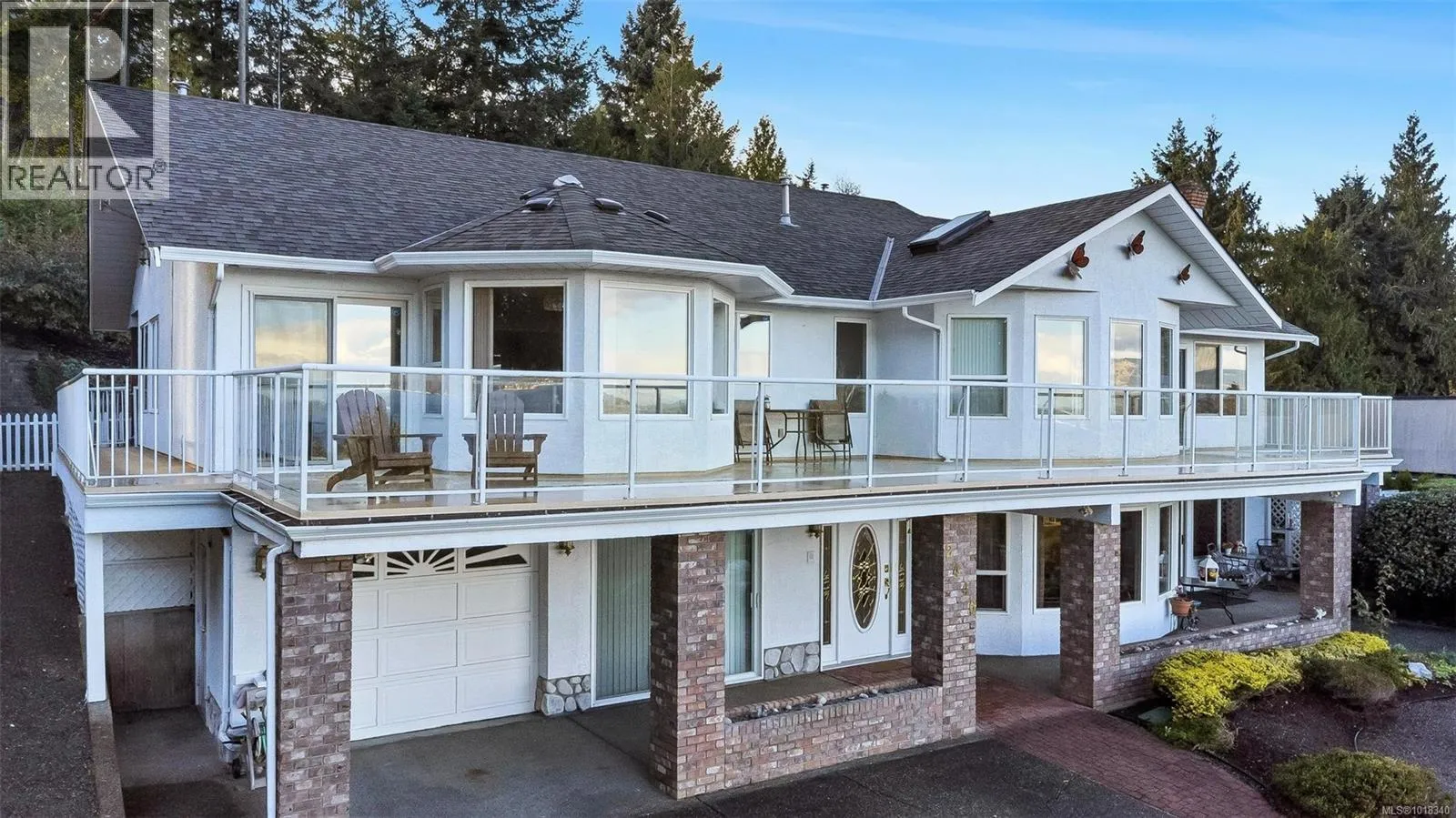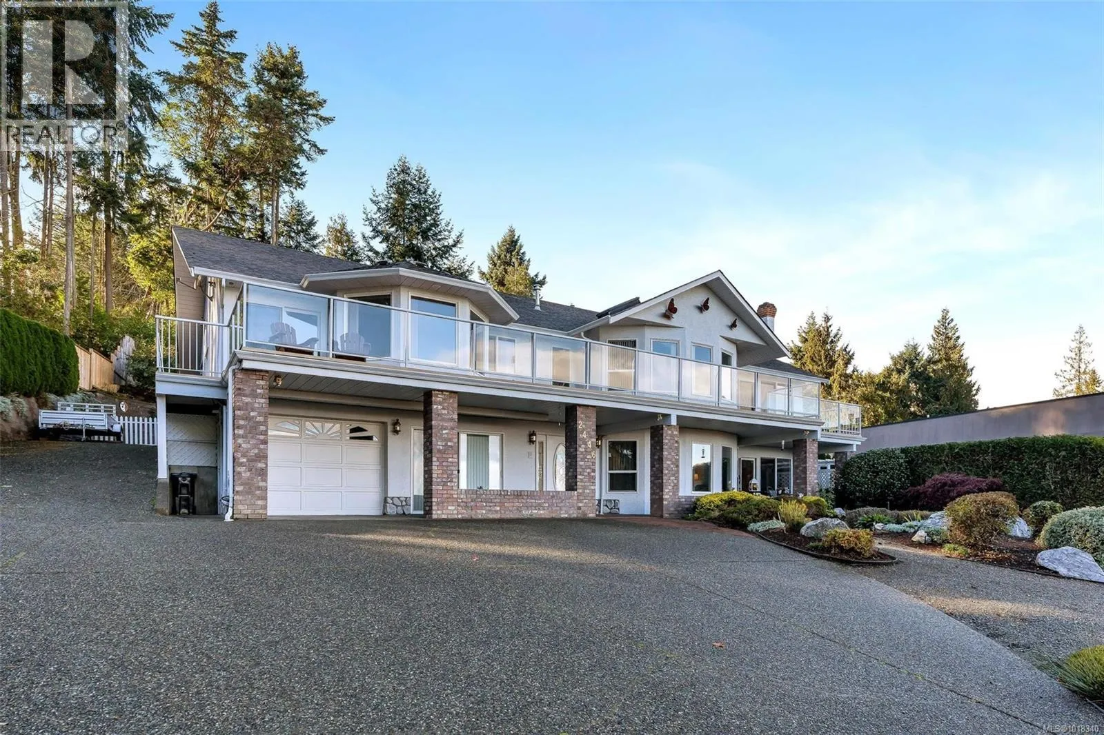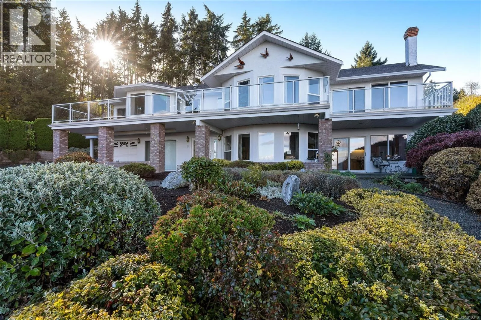 SWEEPING OCEAN VIEWS IN MILL BAY - This gorgeous property is gated and private, resting on .39 acres with stunning ocean views of the Saanich Inlet and majestic Mt. Baker. With over 4000 sqft, this immaculate 5 bed/4 bath home offers a main living space on the upper floor, with a second living area on the main level. An ideal layout for multi-generational living, or a large family - both levels offering full kitchens, living areas, 2-3 bedrooms, ensuites, and laundry. Expansive decks and covered patios provide incredible views from both levels. Beautifully landscaped and irrigated with gardens expertly designed by Bernie Dinter. Built-in hot tub set amongst the trees in the back gardens. Updated appliances throughout, as well as newer roof, heat pumps, flooring, exterior paint and remote-controlled entry gate. Just steps to the ocean, and located near shopping, restaurants, and marina. This home is immaculate, welcoming and sure to impress! (id:27476)