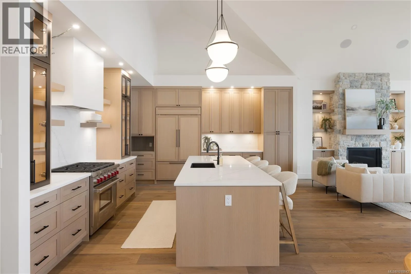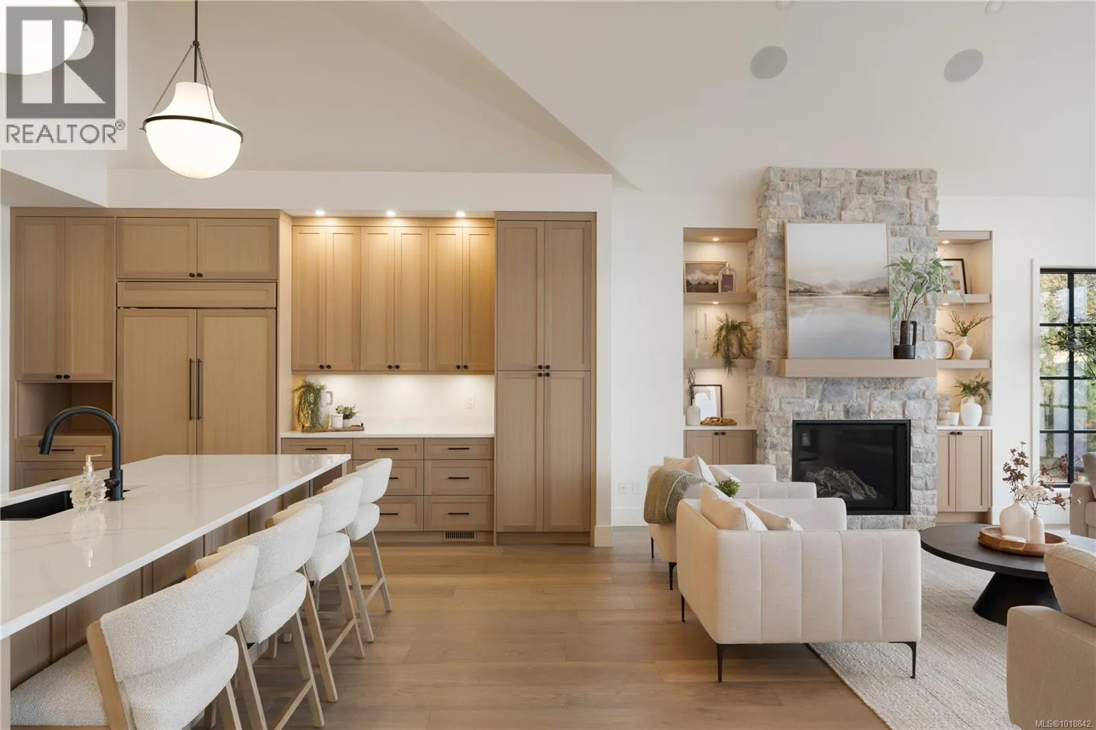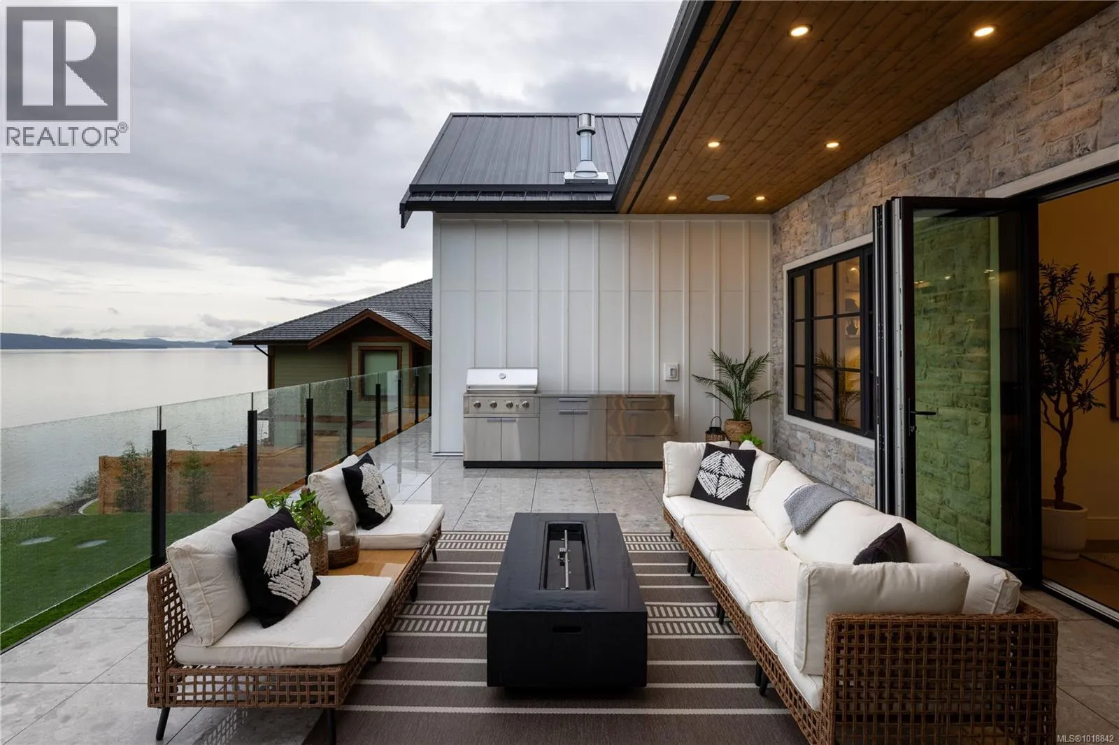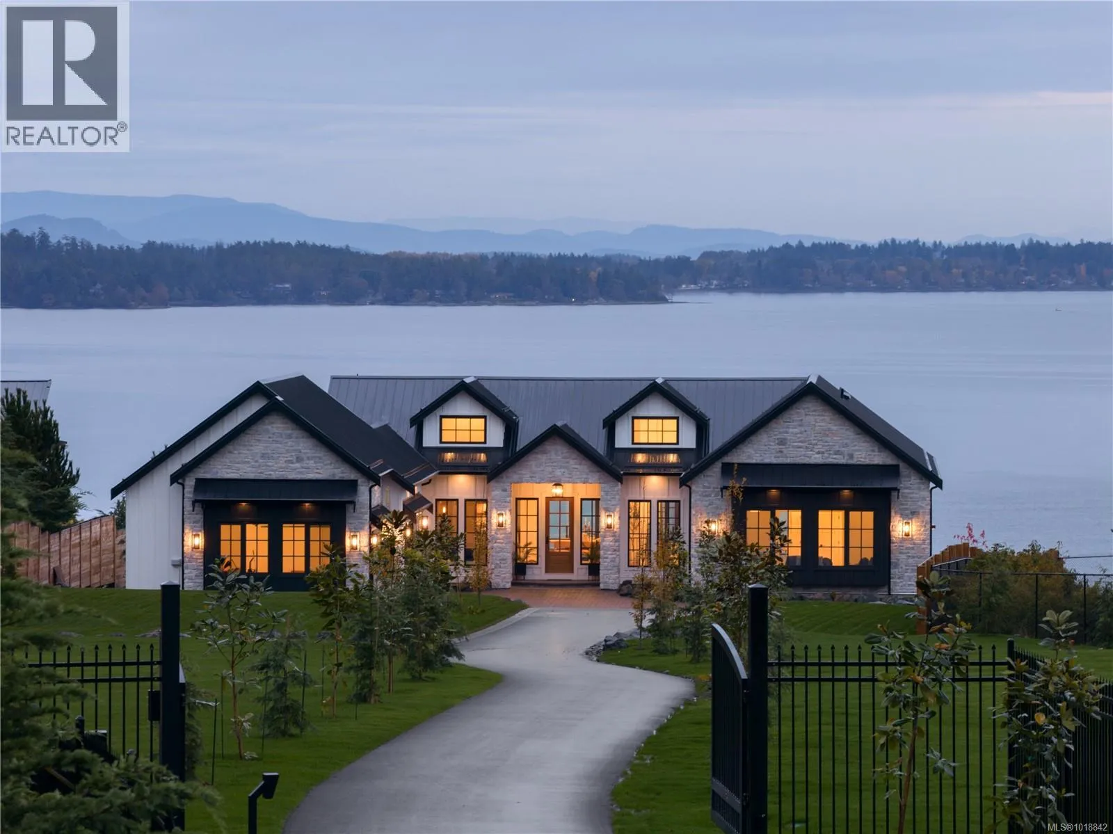 Experience oceanfront living at its finest in this exceptional 5,300 sq. ft. custom residence in Mill Bay. Set on a beautifully landscaped, gated and fully fenced property on a private road, this home offers sweeping views of the Saanich Inlet and blends timeless elegance with modern comfort. The open-concept main floor showcases soaring vaulted ceilings, a stunning great room with a stone fireplace, and a chefâs kitchen featuring Wolf and Sub-Zero appliances, quartz surfaces, and a generous island. The primary suite offers breathtaking ocean views, a spa-inspired ensuite, and a private balcony. Downstairs, enjoy endless entertainment in the recreation and media rooms, complete with a wet bar and walk-out patio to the oceanfront lawn. Additional features include a gym, office, guest bedrooms with ensuites, and a triple garage. The property also presents an exceptional opportunity to build a permitted accessory building, with renderings already available. Ideally located just 30 minutes from Victoria, and within close proximity to world-class private schools such as Brentwood College School and Shawnigan Lake School, this extraordinary home captures the very essence of West Coast luxury living. (id:27476)