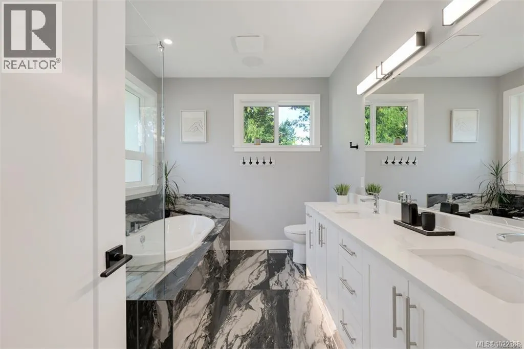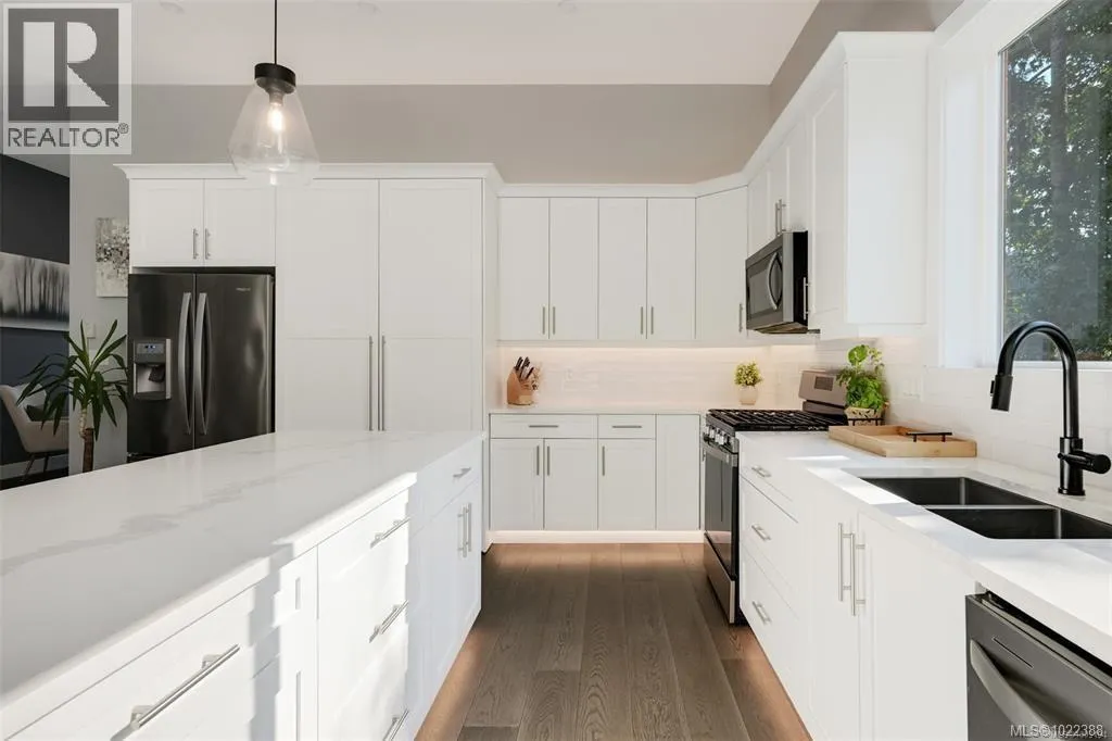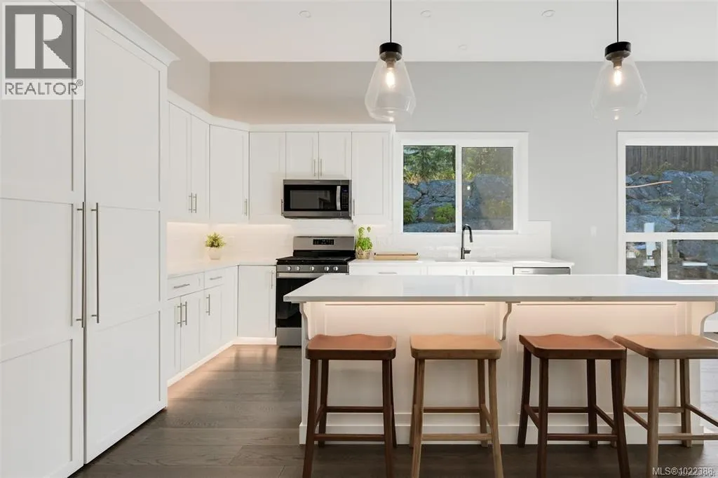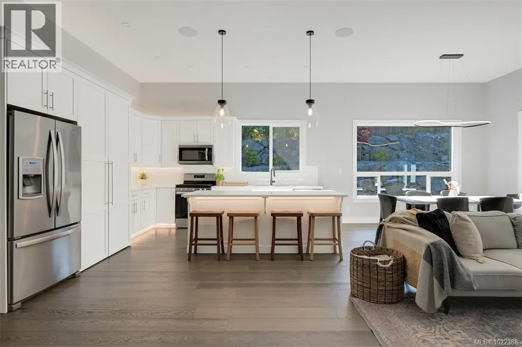 Open House this Saturday January 24th from 2:00-4:00pm. Thoughtfully designed and built in 2022, this impressive 4-bedroom Mill Springs home blends modern style with everyday comfort. The open-concept living space is enhanced by soaring 11-foot ceilings, while the kitchen offers quartz countertops, a large island, and seamless connection to the main living area. The primary bedroom is a true retreat with an oversized walk-in closet, and ensuite featuring heated tile floors and contemporary fixtures. Energy-efficient features include a natural gas furnace, air conditioning, and thermal windows. Outside, enjoy a sunny, private lot with attractive rock landscaping and direct access to the Mill Springs Trail. Located in a safe, friendly neighbourhood with underground services, ample parking, and an overheight garage, this is a rare opportunity in a highly desirable setting. An ideal fit for those seeking a newer, energy-efficient home with direct trail access in a well-established community. (id:27476)