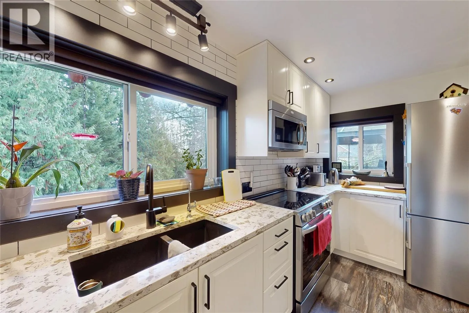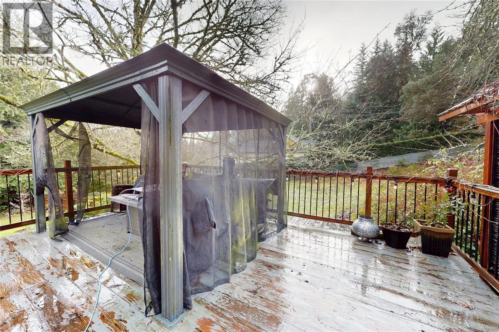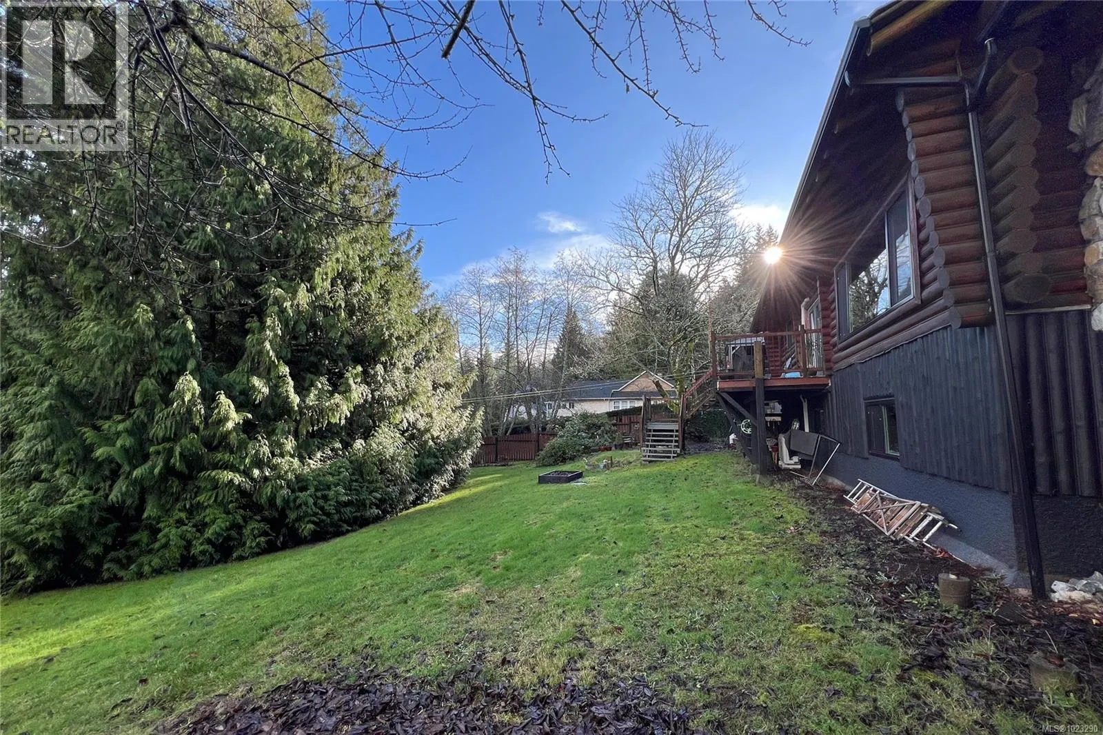 Discover the charm of this rustic log home in South Mill Bay, nestled on a tranquil half-acre lot at the end of a quiet no-thru roadâjust 17 minutes from Langford. This inviting three-bedroom rancher features the warmth of wood throughout and a full walkout lower level. The living and dining area exudes cozy ambience with a wood-burning fireplace and new French doors opening to a spacious deck overlooking a fenced backyard with plum and apple trees. Recent upgrades include a stunning new kitchen with heated floors, a new ensuite and refreshed second bathroom, new vinyl windows and doors, a heat pump, pellet stove, and improvements to both the septic system and well. Downstairs offers a family room, third bedroom, bathroom, and a large unfinished space perfect for a workshop, hobby room, wine-making area, or more living space? Outside, enjoy the expansive yard and a charming log outbuilding with windows and a concrete floorâideal for an artistâs studio. The home also features a high-producing well, beautifully refinished exterior logs, a roomy attached carport, and a circular driveway for easy access and parking. (id:27476)