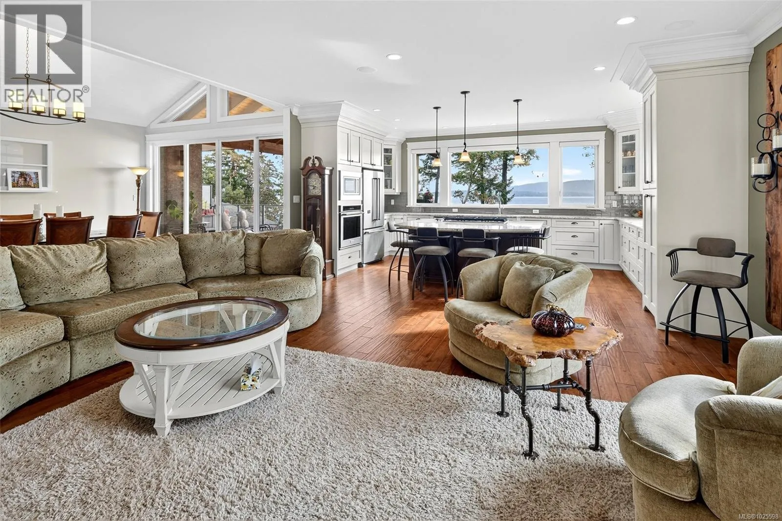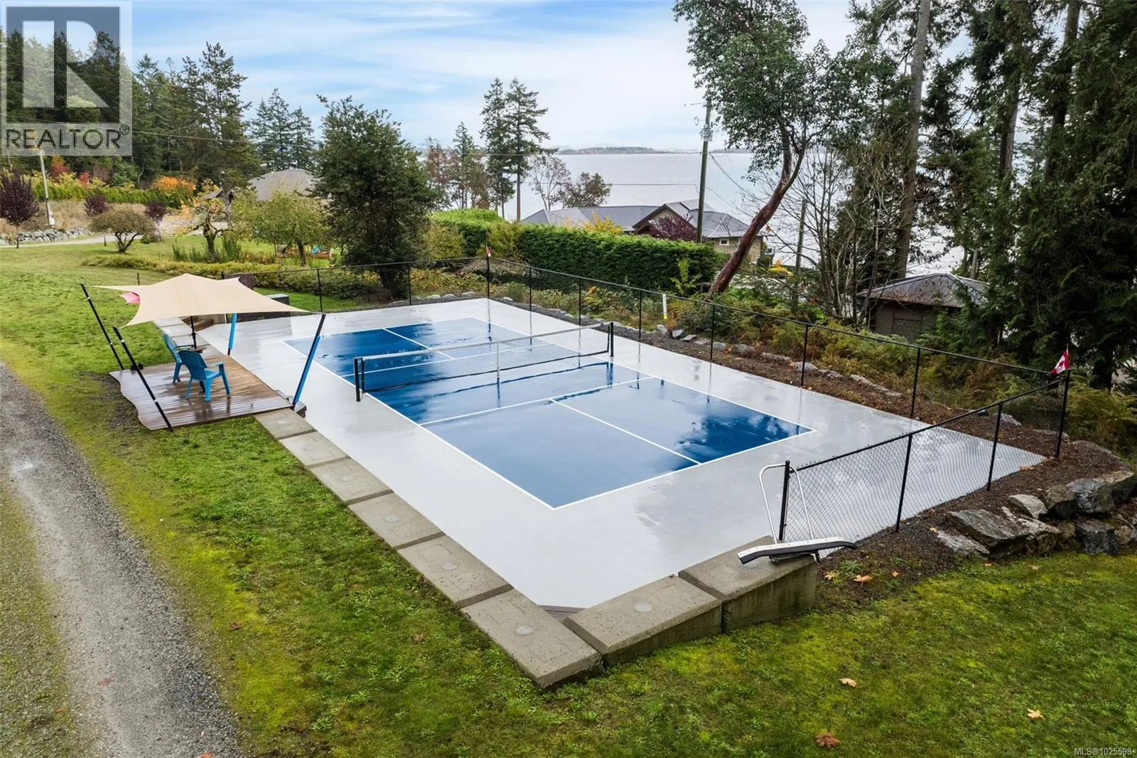Set on 3.2 acres with walk-on oceanfront, this custom home offers sweeping, unobstructed views across Saanich Inlet in the sought-after Whiskey Point area of Mill Bay. Built in 2015, the residence features 4 bedrooms and 3 bathrooms with a thoughtful layout designed to capture natural light and ocean views from the living spaces. Enjoy true waterfront living with direct beach access ideal for kayaking, paddleboarding, or quiet shoreline walks. The expansive acreage provides privacy and a peaceful West Coast setting, while a private pickleball court adds a rare recreational feature seldom found in oceanfront properties. Located approx 35 minutes from downtown Victoria, this property offers the perfect balance of seclusion and convenience, with easy access to marinas, amenities, golf, wineries, world class private schools and commuter routes. Look forward to the end of the day, sitting on the deck as the sunsets over the ocean and bask in the Golden Hour of your own slice of paradise. (id:27476)