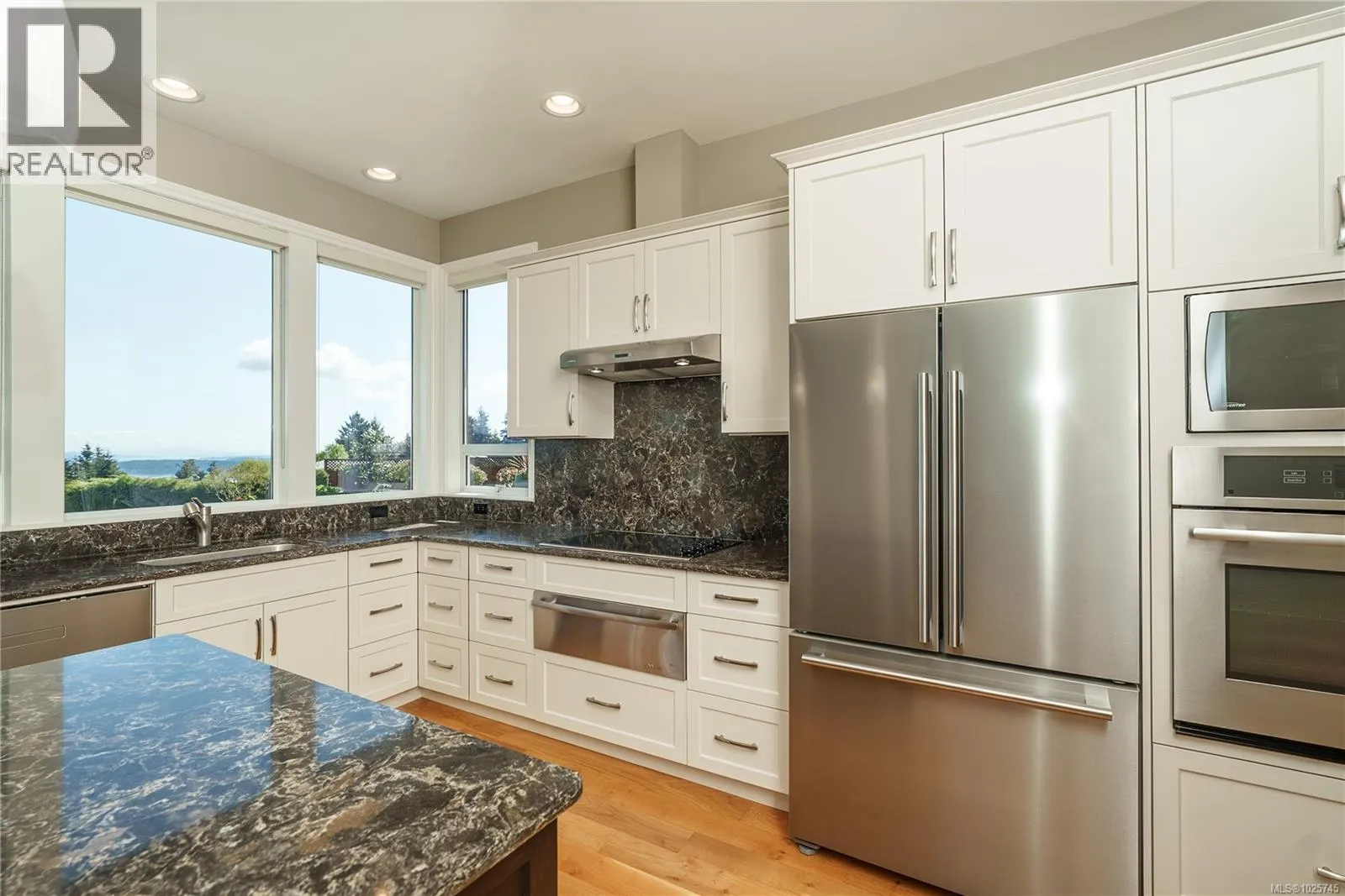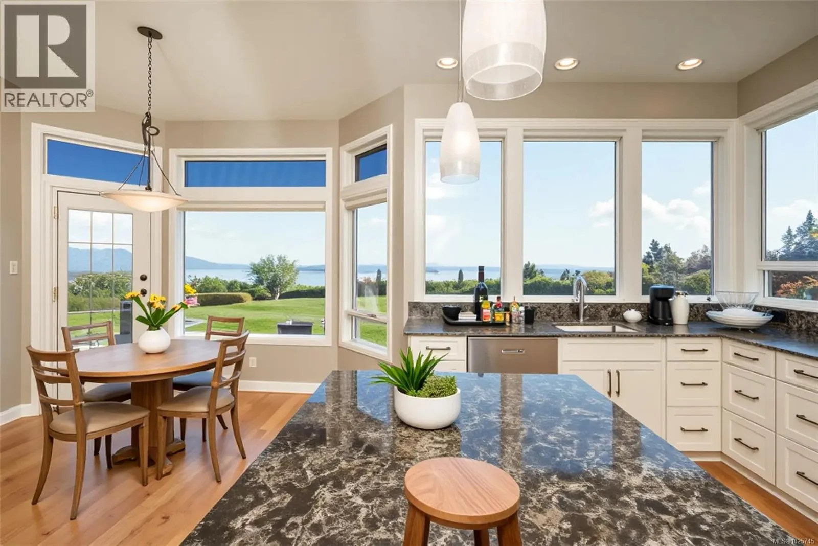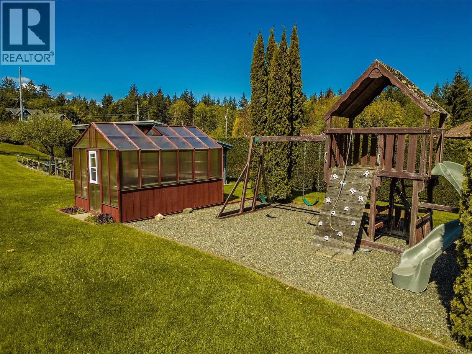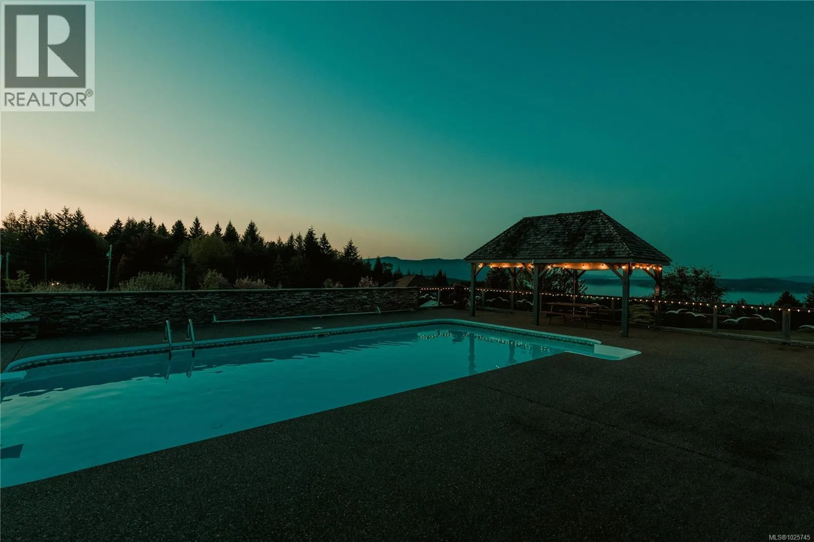 Presenting an extraordinary opportunity to own a custom-built high-efficiency home, looking for its second owners, nestled on two acres of perfectly landscaped grounds, offering sweeping, unobstructed ocean views. Meticulously maintained, this private estate is a rare find, combining luxury living with the tranquillity of nature. This exceptional four-bedroom, three-bathroom residence features soaring 15-foot vaulted ceilings, rich oak flooring, and two stylish propane fireplaces, creating a warm and inviting atmosphere. The gourmet kitchen is a chefâs dream, equipped with top-tier appliances and exquisite finishes. A custom wine room adds a touch of sophistication, perfect for the discerning collector. The property also includes an attached garage, along with a spacious oversized double detached garage, offering ample room for vehicles, storage, or a potential workshop. Outdoors, this property truly shines with a resort-inspired setting featuring a sparkling saltwater pool, an inviting cabana, and a picturesque gazeboâall set amidst a fully irrigated, landscaped oasis bordered by mature privacy hedges. A dedicated greenhouse and thoughtfully designed childrenâs playground offer versatility and family-friendly charm. A ride-on lawn mower is included for added convenience, making upkeep of the expansive grounds effortless. Ideally located near Brentwood and Shawnigan, with nearby shops, schools, and amenities. This home offers an exceptional lifestyle and seamlessly blends upscale living with everyday ease and comfort. (id:27476)