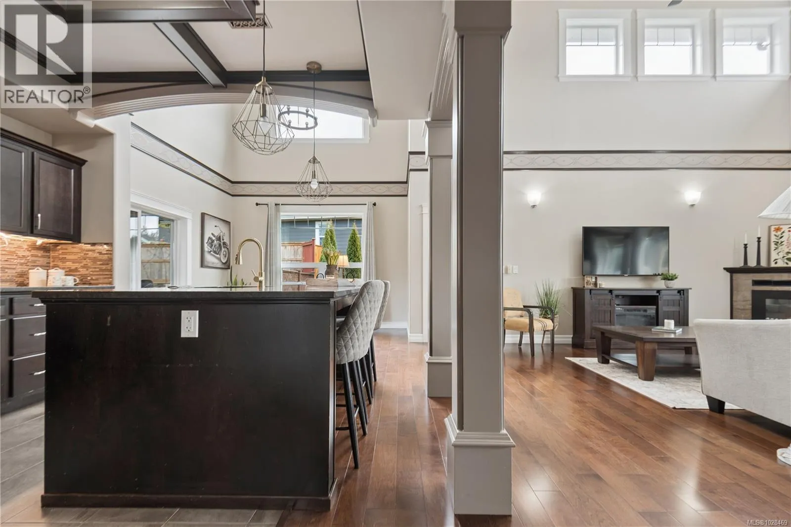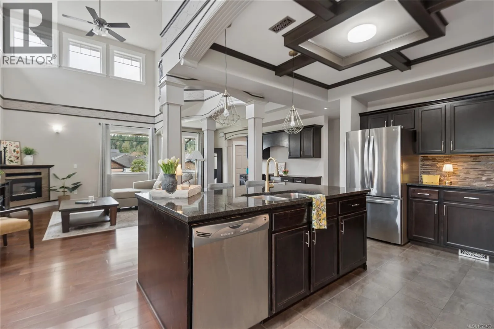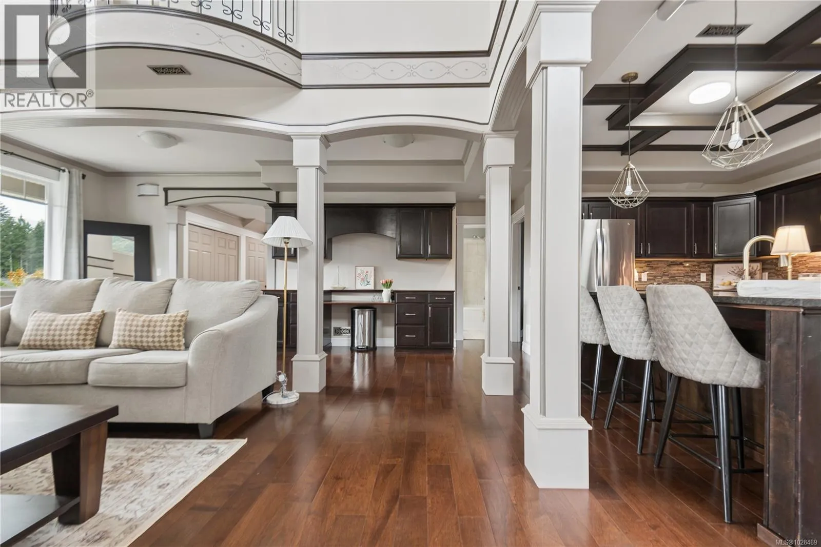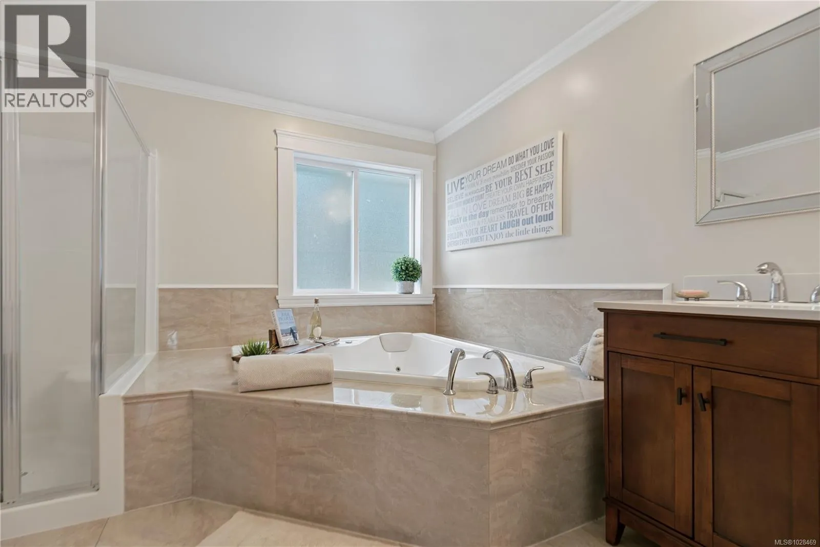 4-bedroom, 3-bathroom home offering 2,355 sq ft of well-designed living space on an extra large 0.375-acre lot in Mill Bayâs sought-after Mill Springs Village. Built in 2013, this main level entry home features the primary living areas on the main floor with additional bedrooms upstairs, creating a practical layout that works well for families. The bright main living space features vaulted ceilings, hardwood and tile flooring, and large windows that help fill the home with natural light. The kitchen is finished with quartz countertops and stainless steel appliances, offering a clean and functional space for everyday living and entertaining. Comfort is covered year-round with central heating and air conditioning. The spacious primary bedroom includes a walk-in closet and large ensuite, along with a unique balcony overlooking the main living space below. Upstairs bedrooms provide great flexibility for family members, guests, or home office space. Outside, the level backyard offers plenty of usable outdoor space for kids, pets, gardening, or entertaining. The oversized double garage of approximately 500 sq ft provides excellent parking and storage. Located in the family-friendly community of Mill Springs Village, with Deloume Trail and Park just down the street, this home offers a great opportunity to enjoy comfortable living in Mill Bay within the beautiful Cowichan Valley on Vancouver Island. (id:27476)