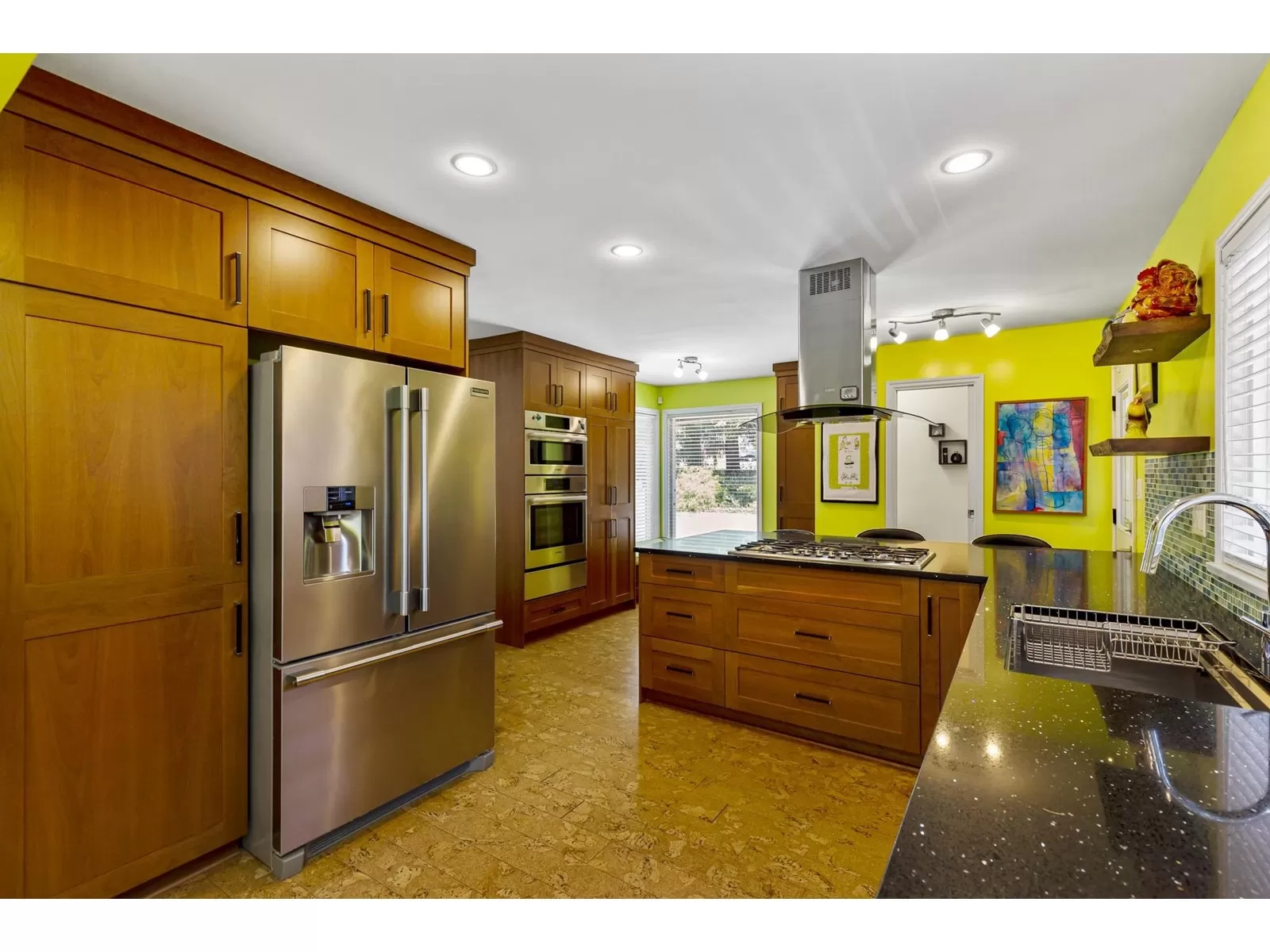 Extraordinary mid-century modern rancher, with seamless indoor-outdoor living and entertaining. Nestled on a 1/2 acre lot, this exquisite home features 4 bds, 3 bths w/ample storage, blending functionality & luxury. Expansive European designer kitchen, w/ quartz countertops, and modern cork flooring. Spa-like main bath w/ soaker tub, luxurious shower, and large walk-in closet. Sprawling deck looking over hot tub and 36 x 18 heated saltwater pool. Double semi-detached garage w/ breezeway leads to park like yard. Aluminum shingle roof, AC, hidden gutter system, and extensive concrete work. 20,868 sf property offers a serene escape. Plus, it presents a unique 1.67 acre Development opportunity with 7679 Peterson & 7680 Strachan. MT1 or MR1 compliant within OCP. Call for Developer info! (id:27476)