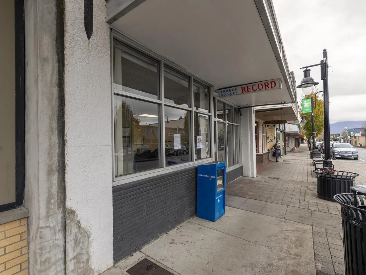 This unique property located in a prime downtown location on 1ST AVENUE! This character freehold building has been the home of the "Fraser Valley Record", also known as the "Mission Record", and offers exceptional visibility and benefits from high foot traffic. Zoned DT1, it's a commercial mixed-use space currently set up as an office but ideally suited for retail, thanks to its fantastic storefront exposure. With 2,541 sq. ft. of versatile space, it's ready for you to move in as a turn-key office or reimagine it as the perfect retail setting. Don't miss the opportunity to make this prime property yours today! (id:27476)
