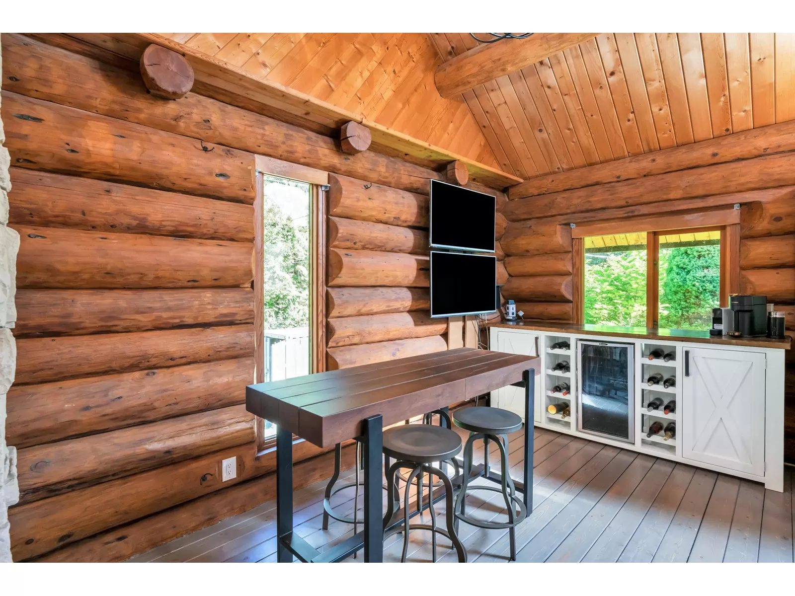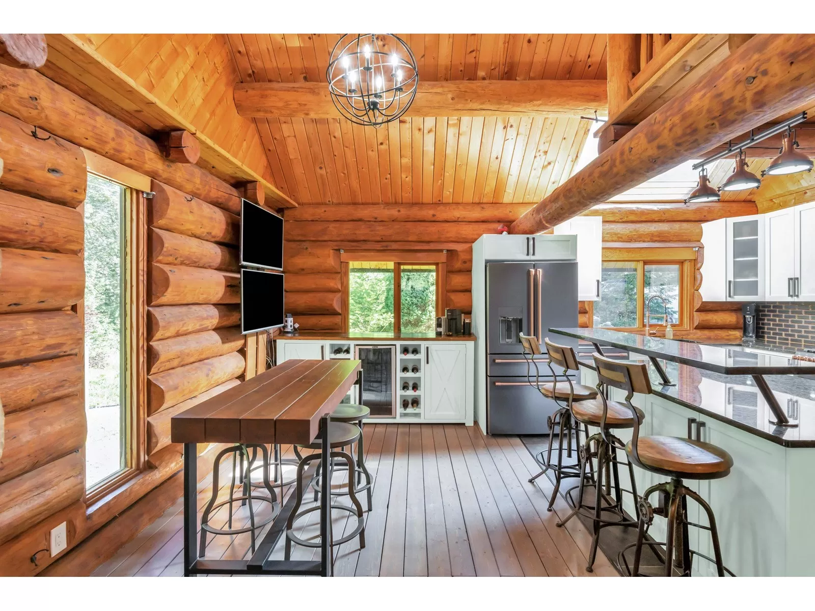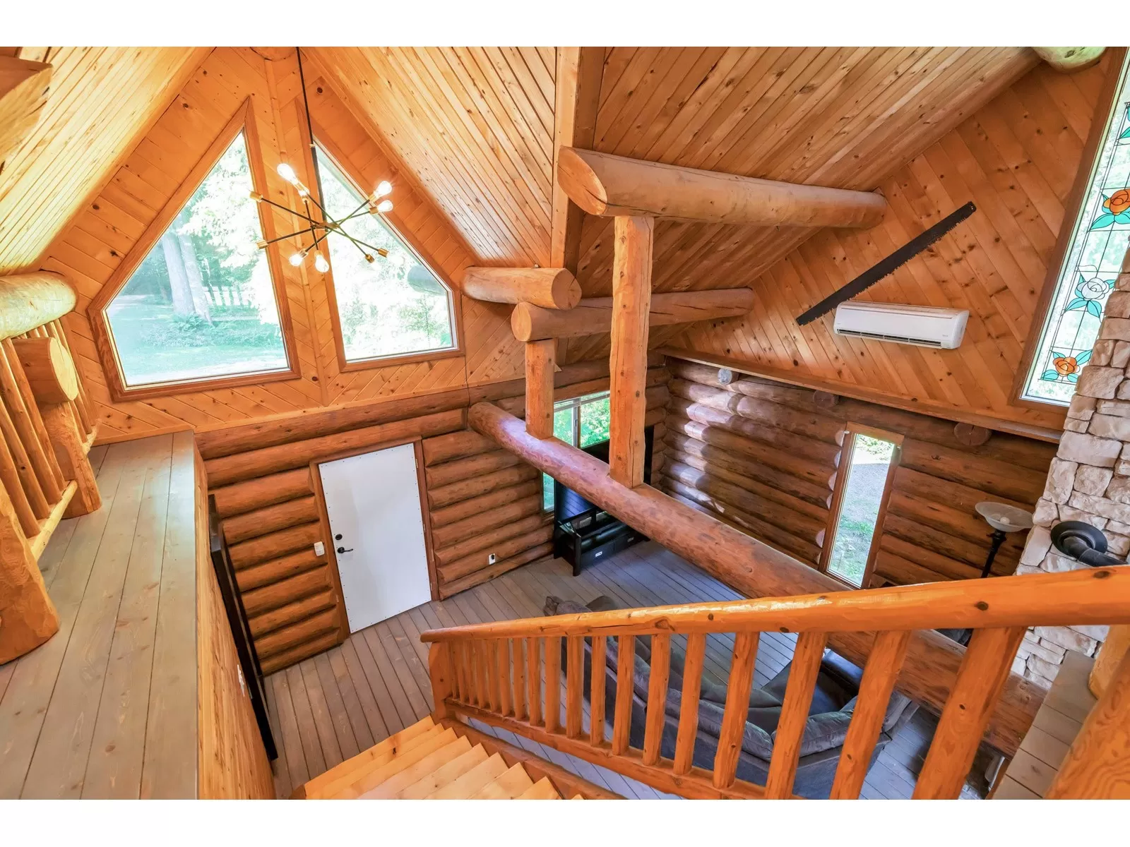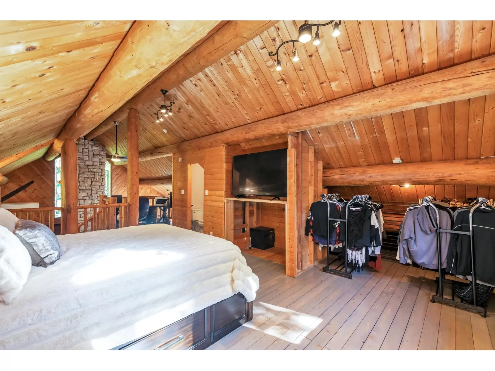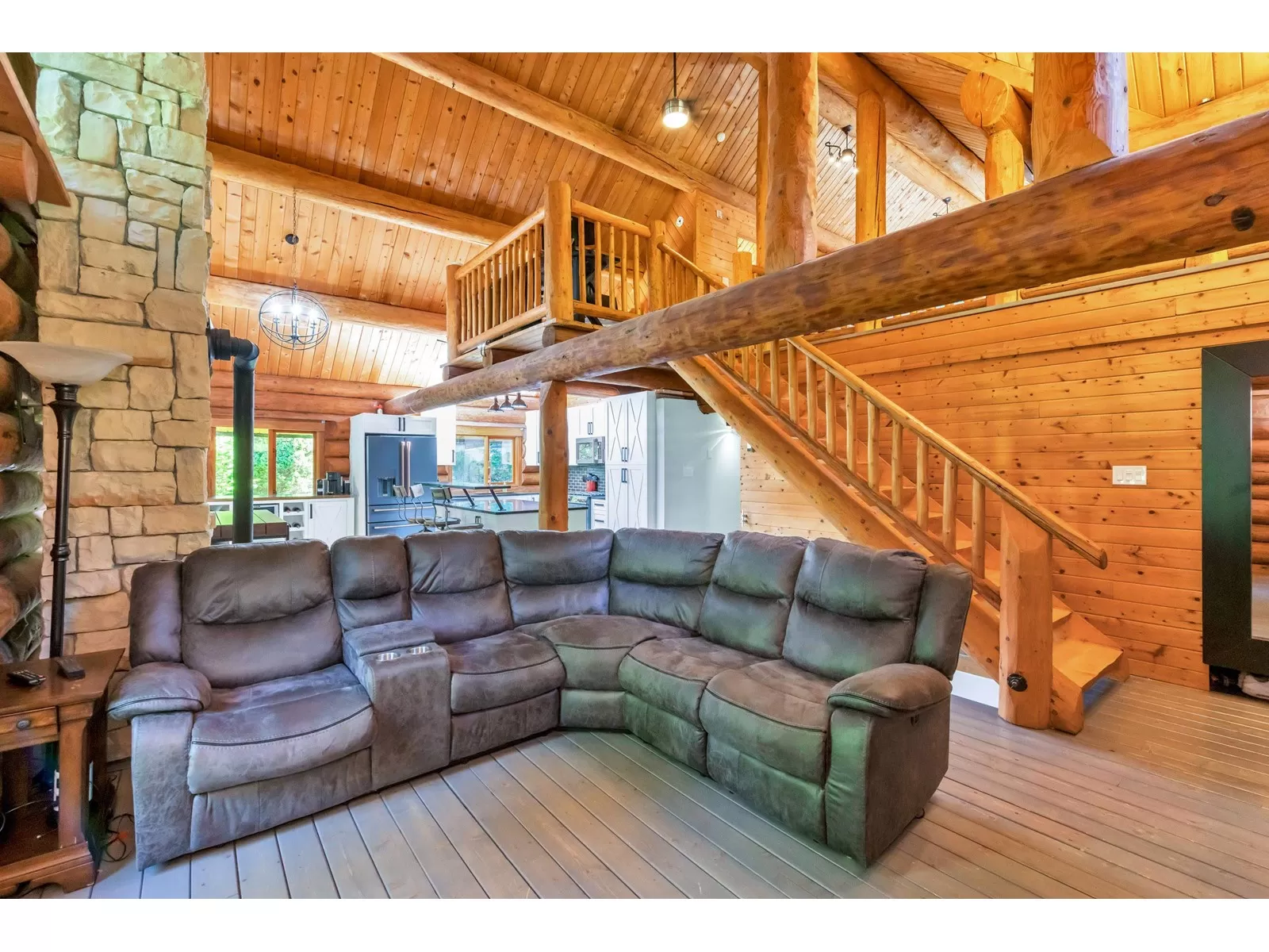 Exclusive Artisan Log Home on 4.5 Acres! HUGE SHOPS AT BACK with separate gated entry. Backing onto CROWN LAND YOU CAN HIKE, ATV, DIRT BIKE. This beautifully renovated log home, with $100K in upgrades, offers a grand living room w/ a floor-to-ceiling rock fireplace and a chef's kitchen featuring a gas stove, oversized island, and granite countertops. The primary bedroom includes a 2-piece ensuite (roughed-in for a tub), ample storage, and an 815 sq. ft. sundeck. A flex space off the bedroom is perfect for a home office or reading nook. Downstairs, you'll find two spacious bedrooms and a rec/theatre room. The property also features a triple garage, fenced backyard, and a large workshop with a work pit, mezzanine, and 600-amp power. Don't miss this rare opportunity-book your viewing today! (id:27476)