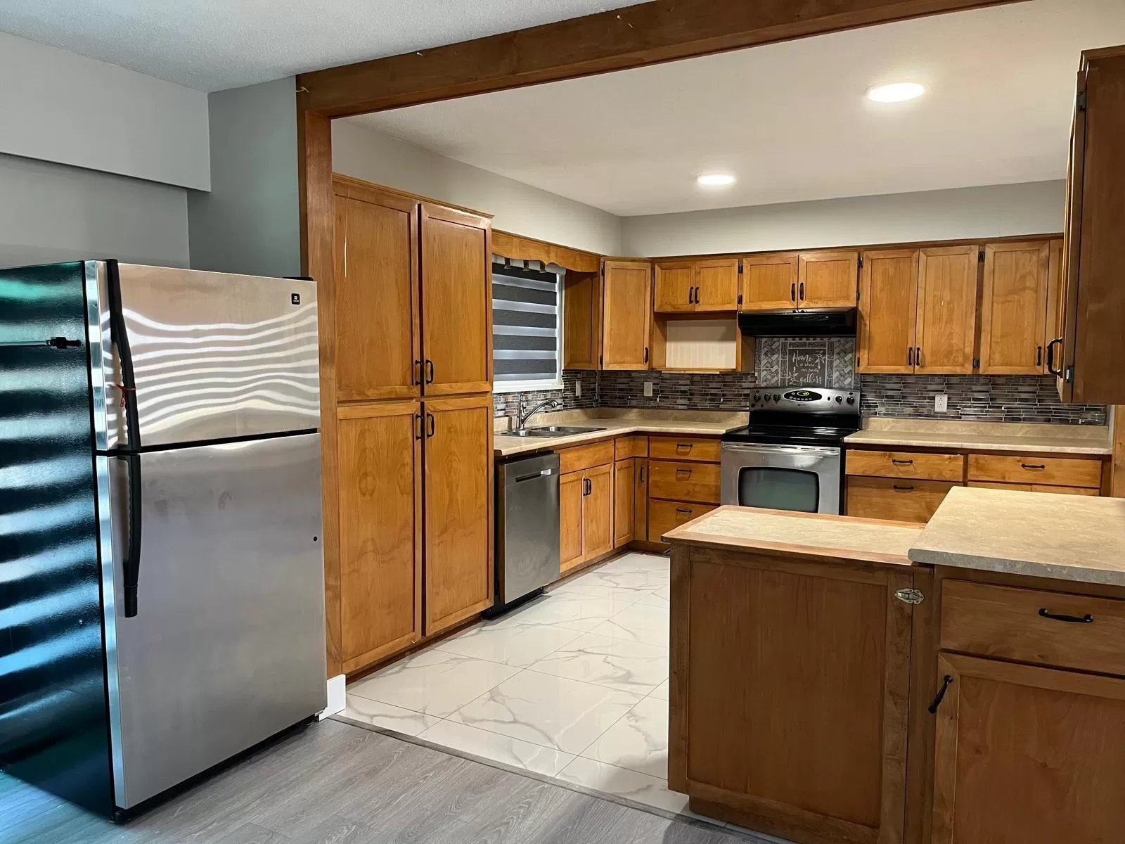 5 bed, 3 bath basement entry home on a quiet street with loads of potential! Features 3 beds up and a 2-bed unauthorized suite down with separate entry and own laundry. Large fenced backyard, 2 wood-burning fireplaces, carport, and plenty of parking. Roof approx. 15 years old. New laminate flooring, fresh paint, new blinds-ready to move in! Close to schools, transit, and amenities. Great investment or family home! (id:27476)