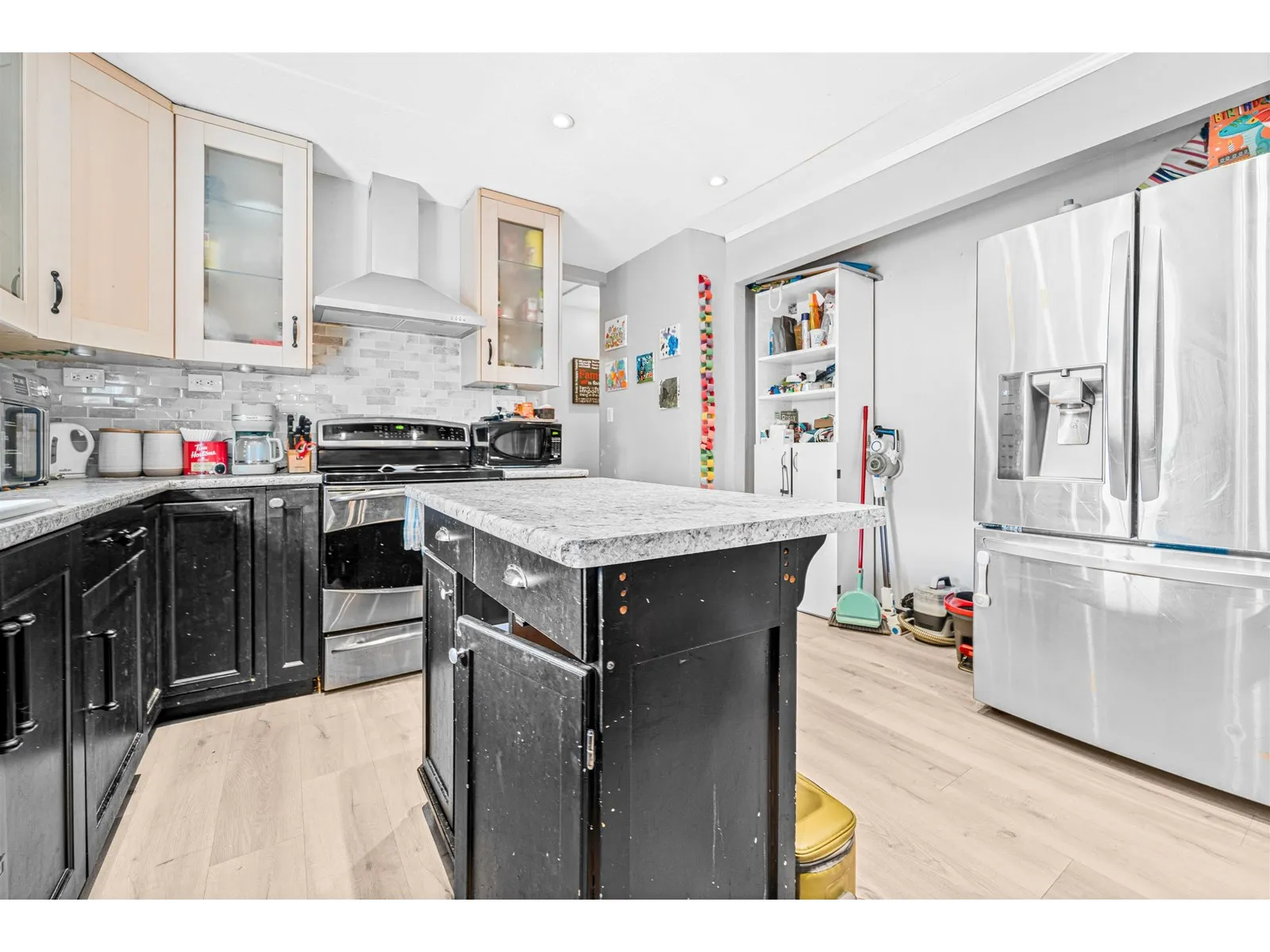 Beautifully well kept split-level rancher on a spacious 6,500 sqft lot with great development potential-zoned for duplex or hold for future Attached Multi-Unit Residential (buyer to confirm with City). This home features 3 bedrooms and 1 bath up, plus a 3 bed/1 bath walk-out suite with separate laundry. Currently rented for $4,250/monthly. Upgrades include new flooring, cabinets, counters, vanity, toilet, and plumbing in the suite, as well as an updated main kitchen and bath. Enjoy indoor-outdoor living with 12 ft glass doors leading to a 269 sqft south-facing deck and private fenced yard. Enclosed carport is wired-ideal as storage, workshop, or for future ideas. Conveniently located near shops, restaurants, transit, and West Coast Express! (id:27476)