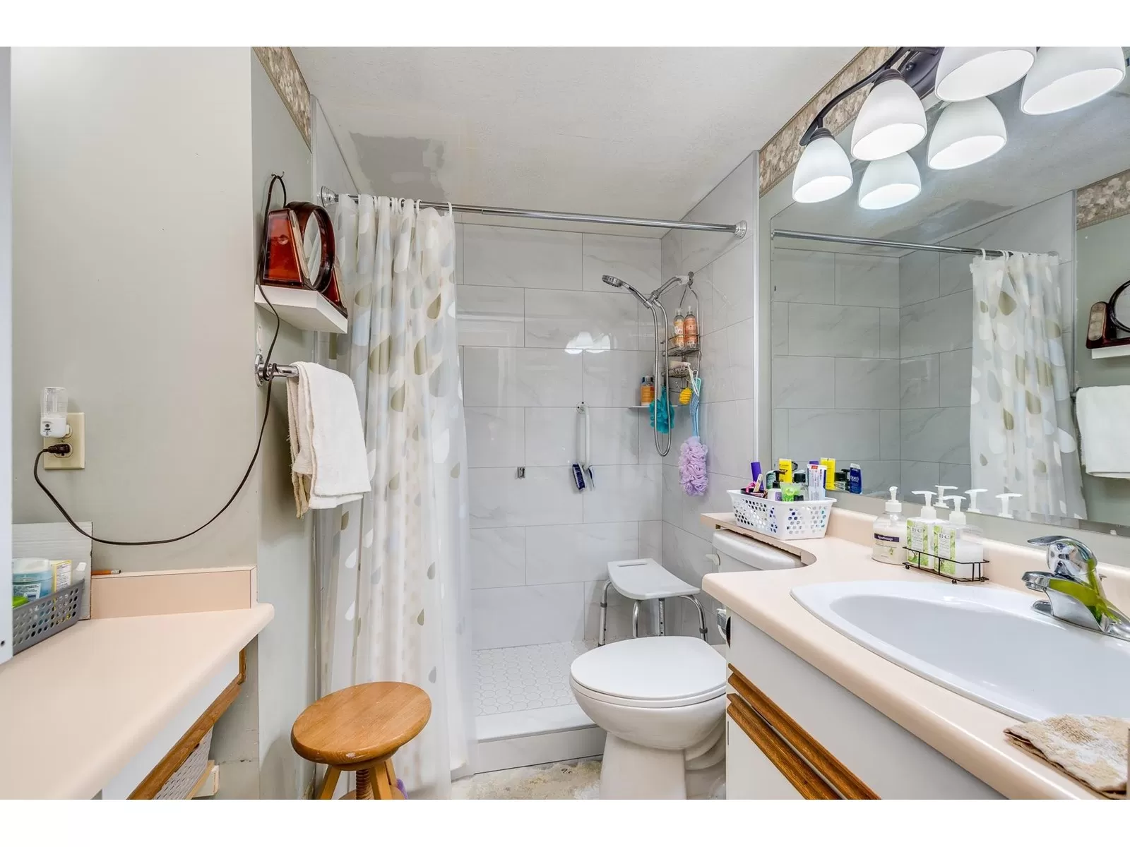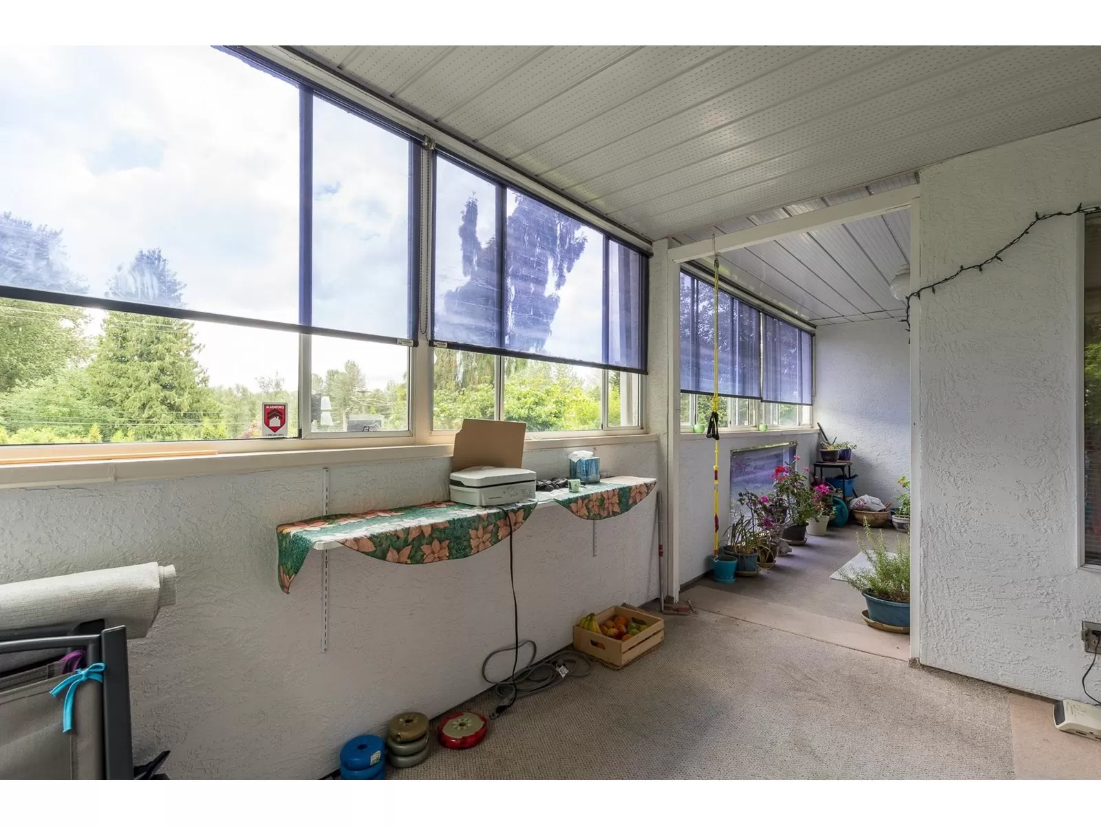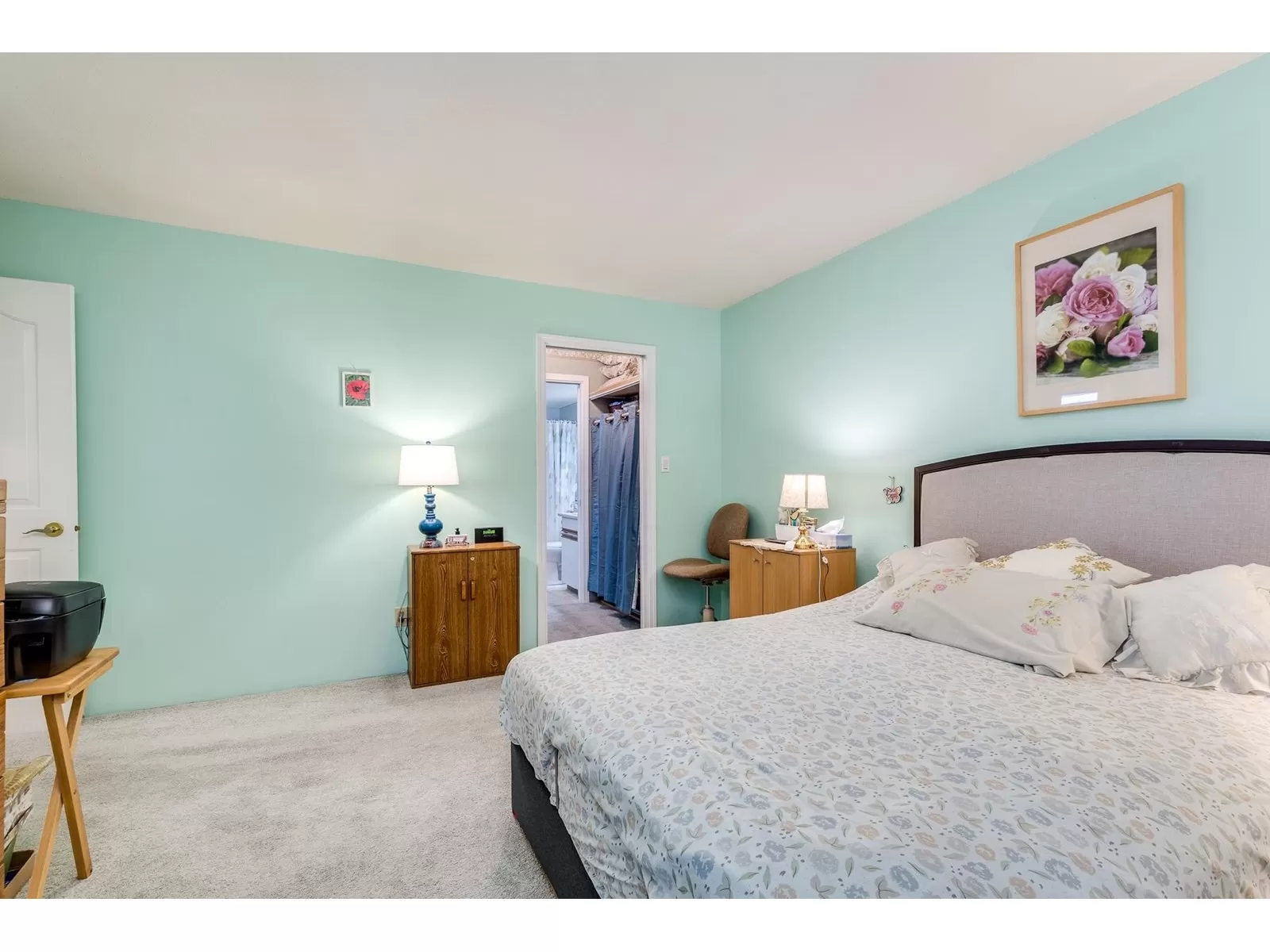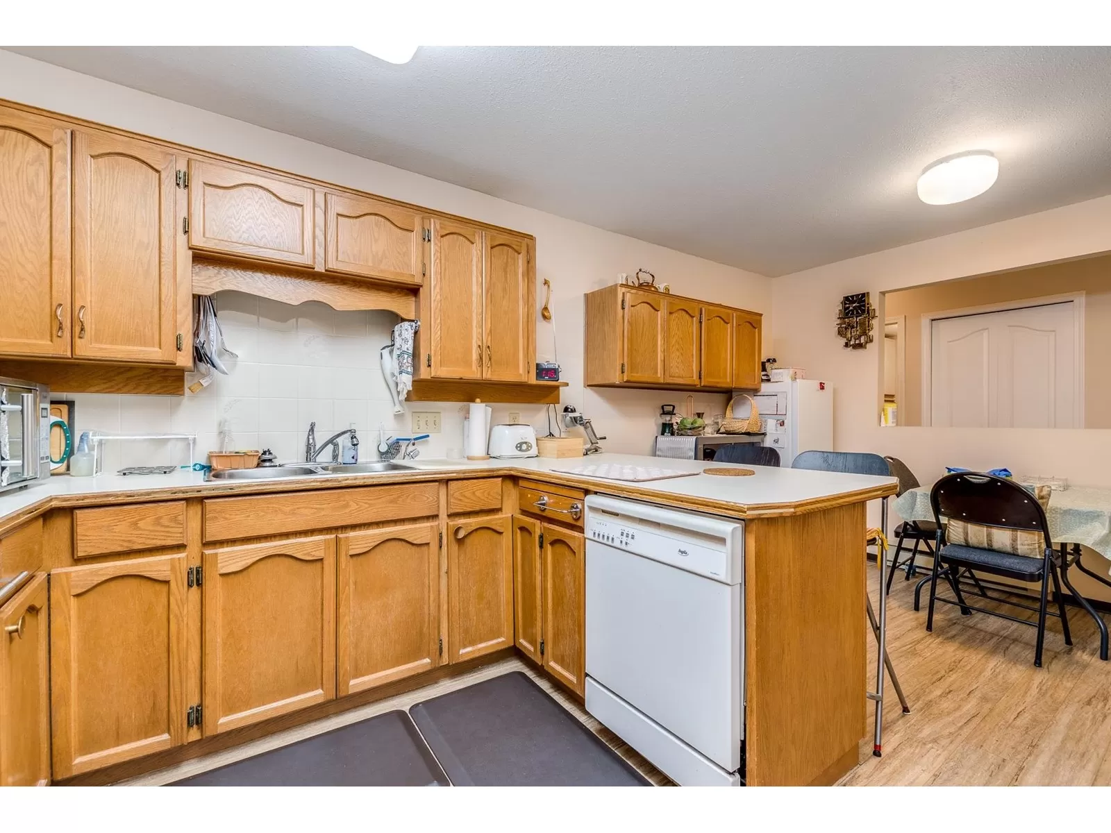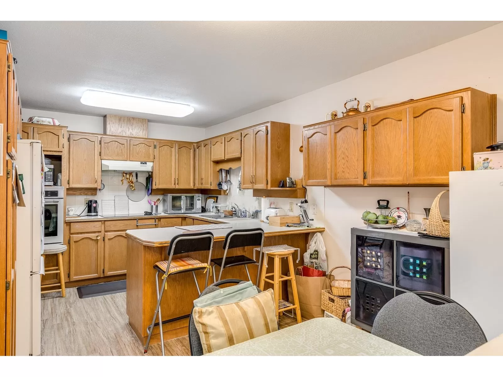 Located in a quiet, gated, 55+ adult-oriented complex at the end of a cul-de-sac. This ground floor entry end unit is spacious and bright with 3 bedrooms, 2 bathrooms, and over 1,400 sqft of living space. Huge oak kitchen with wall oven, stove top, breakfast bar, lots of cupboards, and open eating area. Formal dining room next to sunken living room with access to large solarium sundeck with southern view. Primary bedroom with walk-through closet and private 3 piece ensuite. 2 additional good size bedrooms, 4 piece main bath, and huge laundry room. Well maintained building with lush gardens. Walking distance of shopping, transit, and amenities. Bonus 2 parking - 1 open and 1 private garage, roof replaced in 2021. (id:27476)