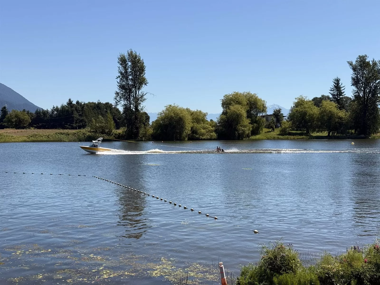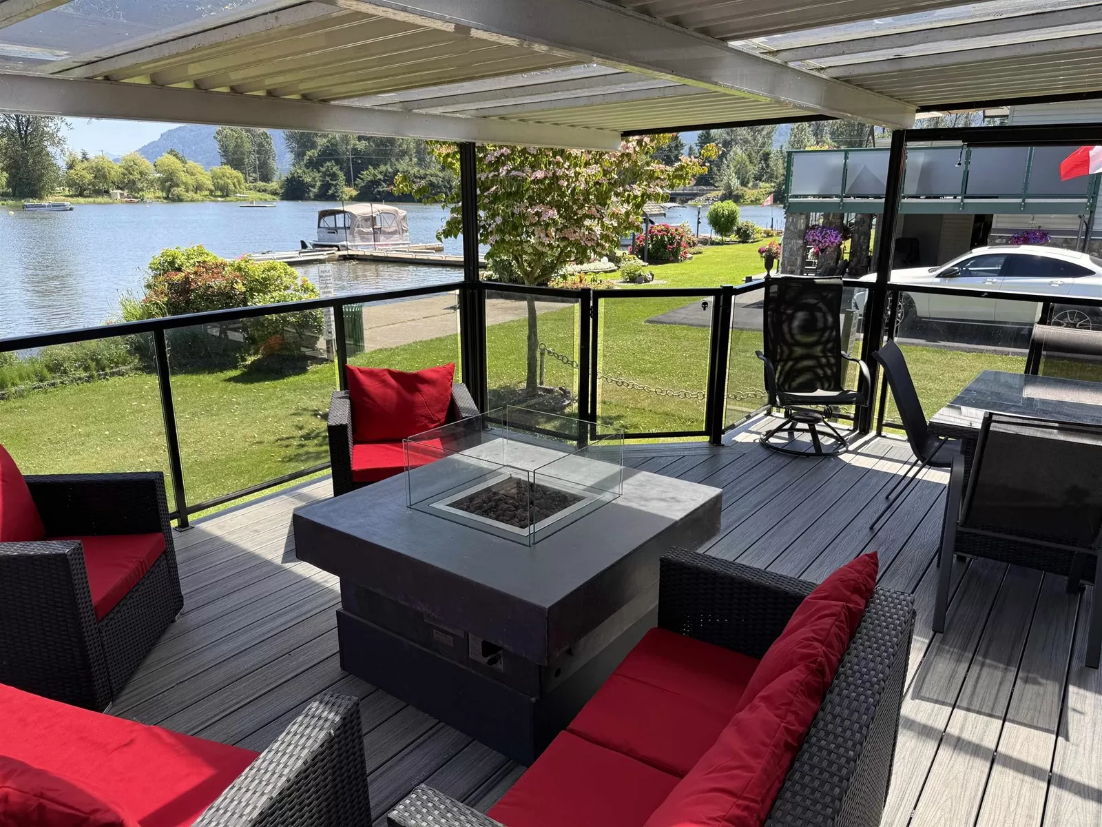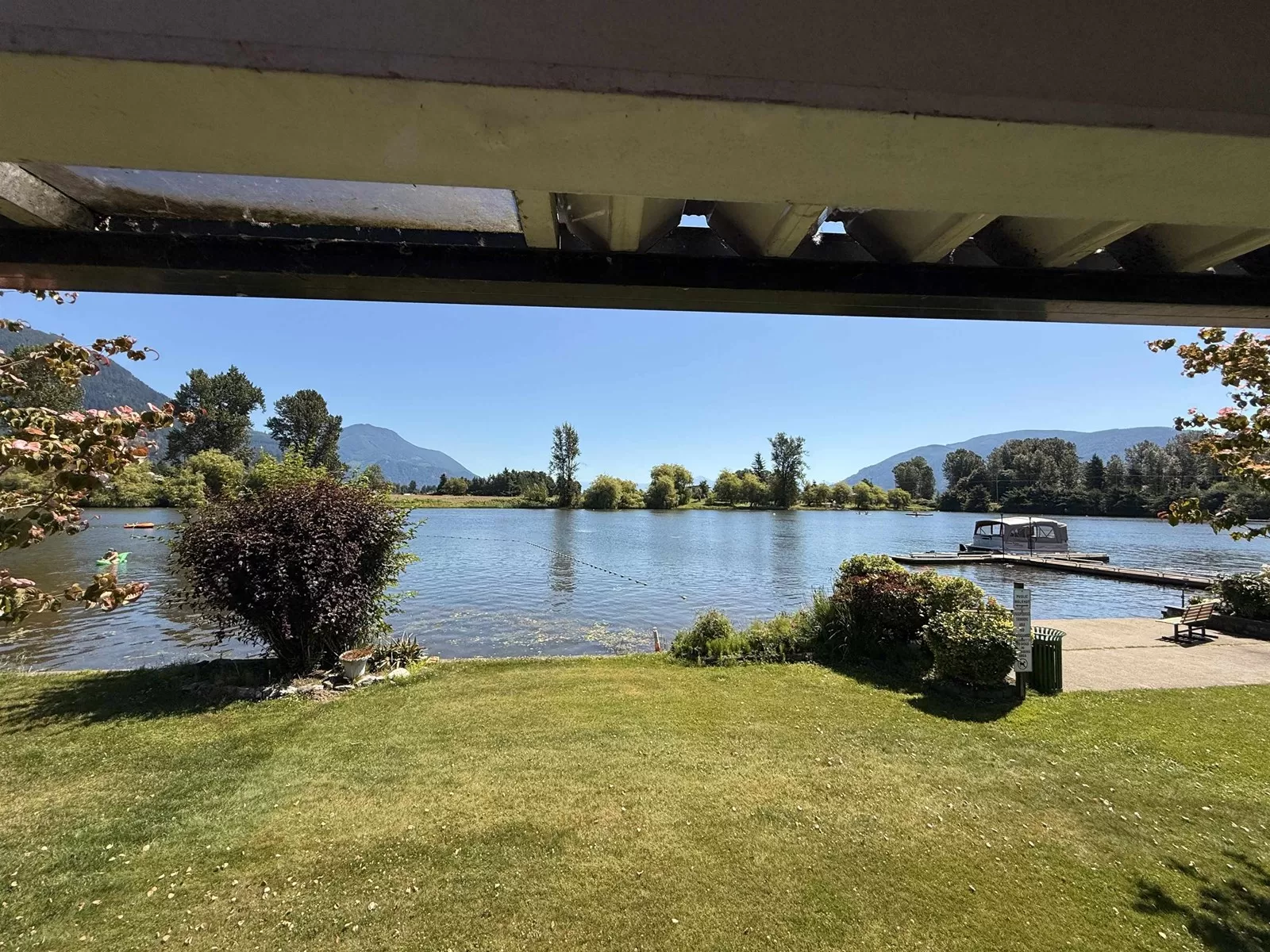 DOUBLE LOT. Rare WATERFRONT CABIN on Hatzic Lake. A cabin with a DOUBLE-LOT ON THE LAKE (married properties #148 & #151) with a huge covered Deck (porch) with glass patio surround and TREX decking. New kitchen with granite countertops (under-mount sink) cabinets and Stainless Steel appliances. New Tile Bathroom with stand-up shower (glass door) cabinets, granite and fancy sink. (SEE PICTURES) Minutes to Mission and about an hour from Vancouver. Enjoy water skiing, fishing, - Never book a campsite again. Local retreat getaway with amazing Mountain and Lake views. This GATED RESORT is a great community and offers a playground, basketball court, Club House, washrooms with showers, picnic area, 2 boat launches, beach (swimming) area and Wifi. Golf carts welcome. Sorry, no year round living. (id:27476)
