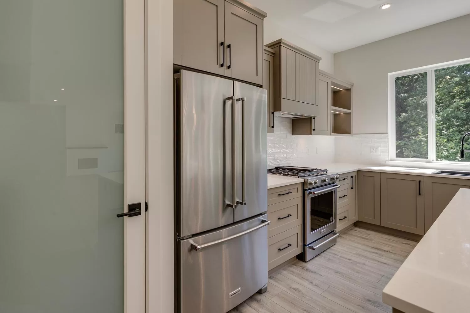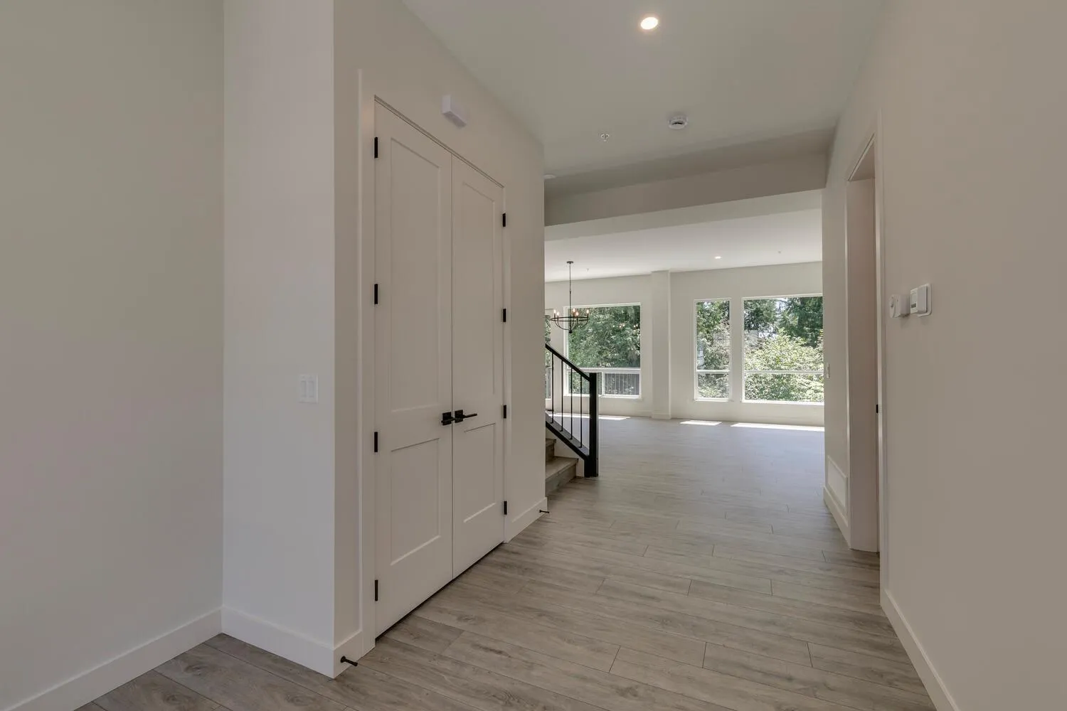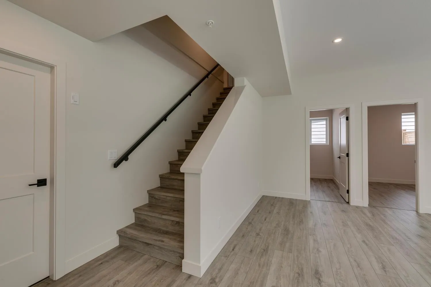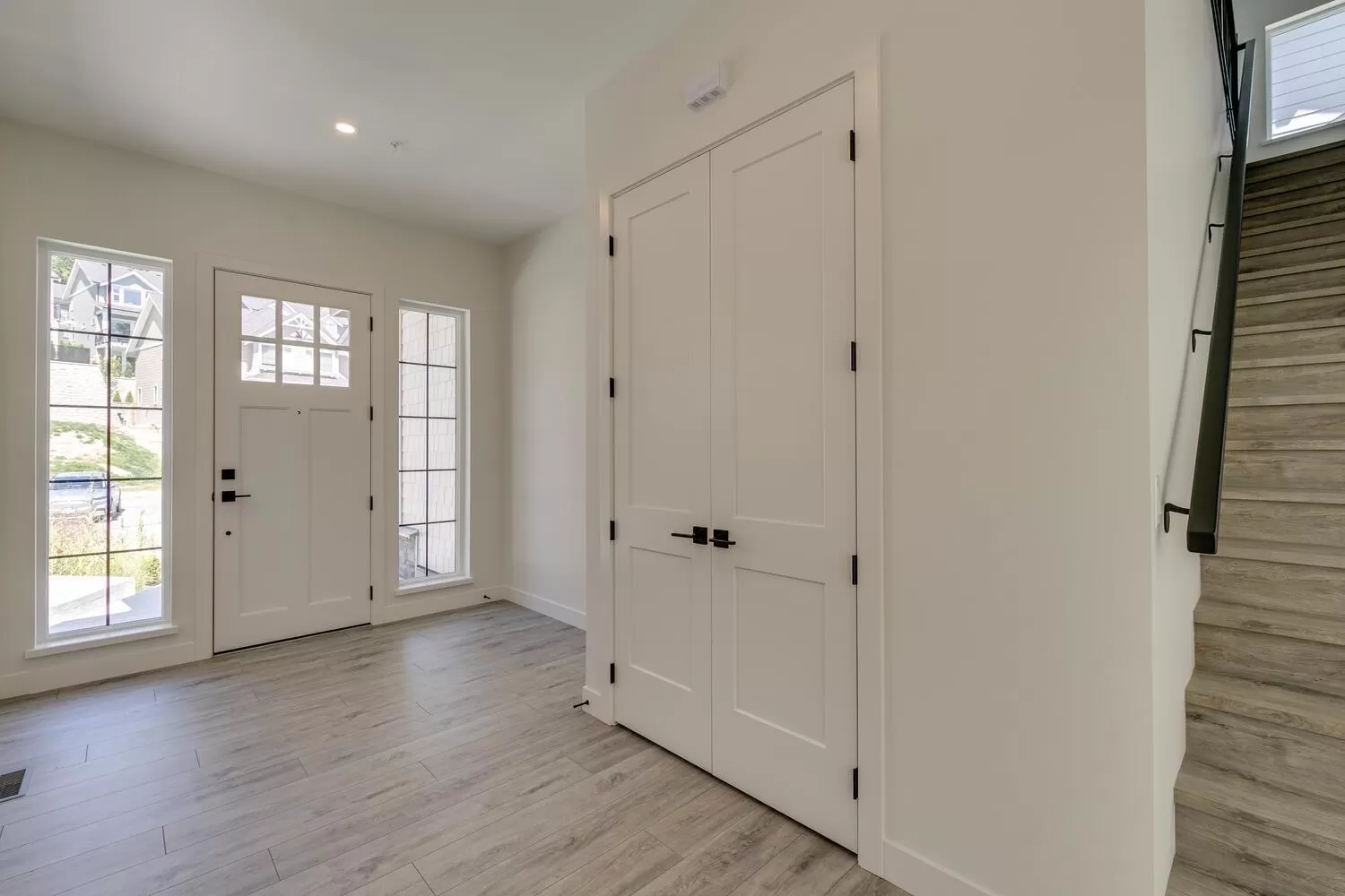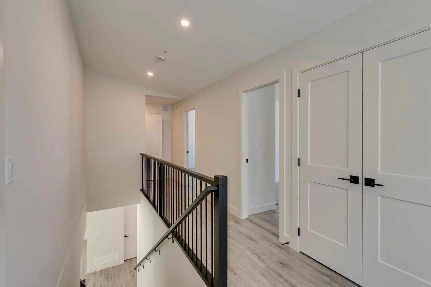 Step into luxury living at Nelson & Grove, where this beautifully crafted 6-bedroom, 4-bathroom home blends comfort, elegance, and function. Nestled at the end of a quiet cul-de-sac on a rare pie-shaped lot, it backs onto a tranquil greenbelt-offering privacy and peaceful views. Inside, vaulted ceilings, wide plank floors, quartz surfaces, and sleek tile define the space. The chef's kitchen features stainless steel appliances, custom cabinetry, and a large quartz island. Expansive windows flood the home with natural light. Upstairs includes four bedrooms, including a serene primary suite with a spa-style 5-piece ensuite, walk-in shower, heated floors, and generous closet. The bright, walk-out basement offers two more bedrooms, a full bath, and a wet bar-perfect for entertaining! (id:27476)