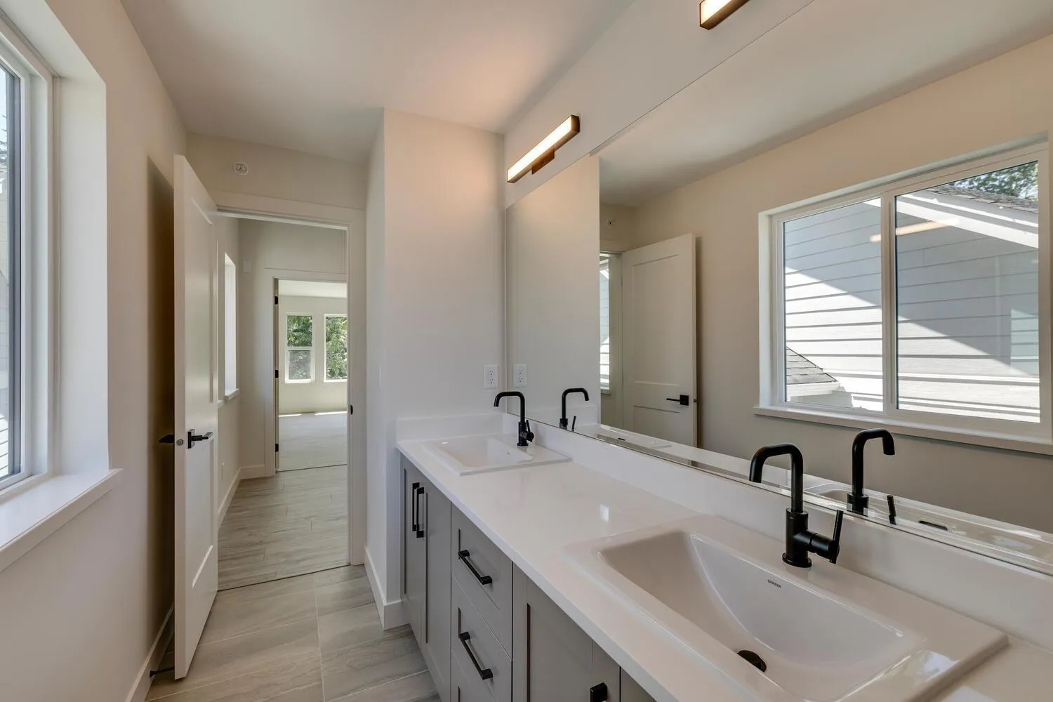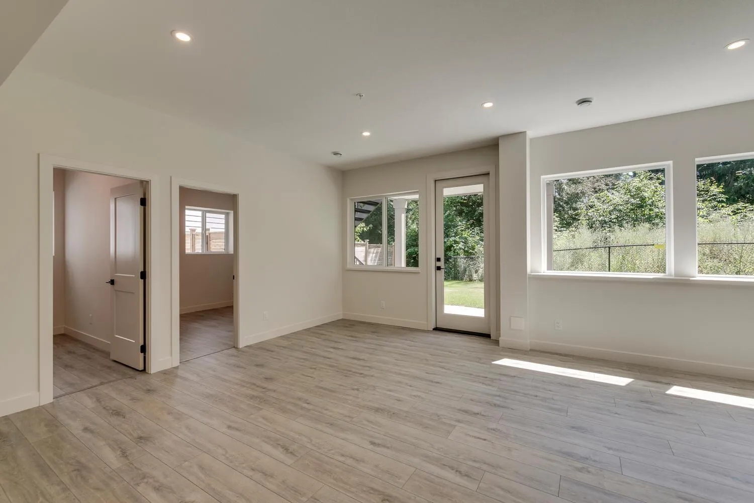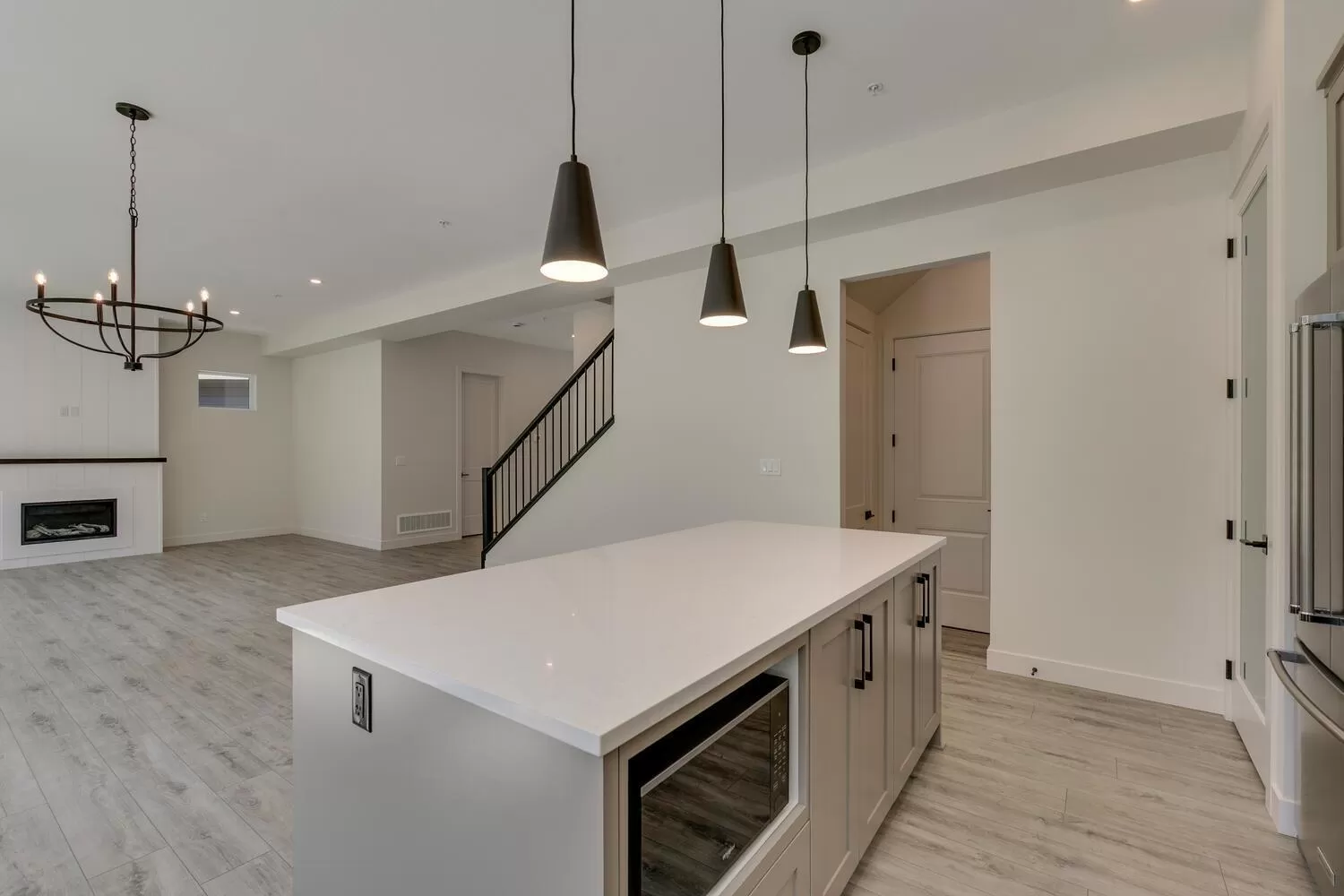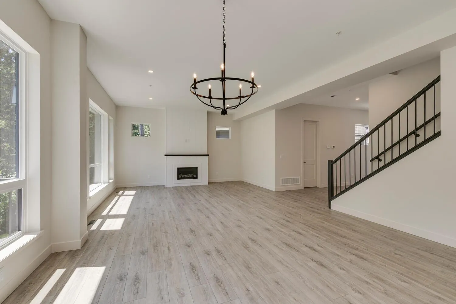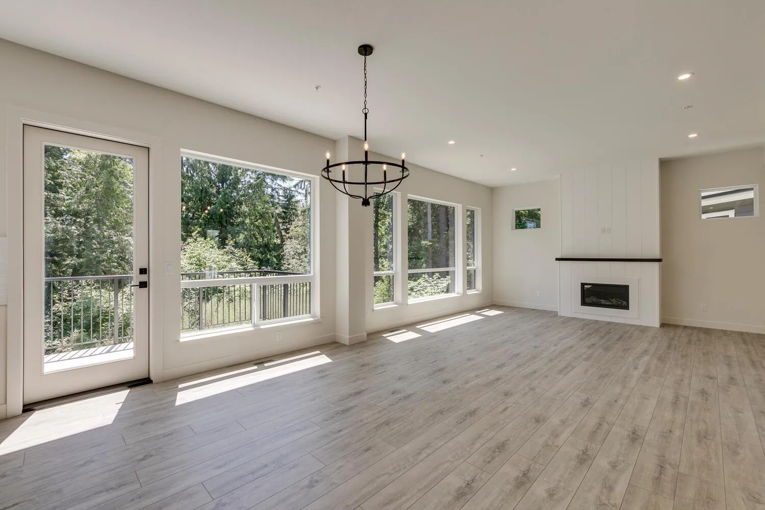 Step into luxury living at Nelson & Grove, where this beautifully crafted 6-bedroom, 4-bathroom home blends comfort, elegance, and function. Nestled at the end of a quiet cul-de-sac on a rare pie-shaped lot, it backs onto a tranquil greenbelt-offering privacy and peaceful views. Inside, vaulted ceilings, wide plank floors, quartz surfaces, and sleek tile define the space. The chef's kitchen features stainless steel appliances, custom cabinetry, and a large quartz island. Expansive windows flood the home with natural light. Upstairs includes four bedrooms, including a serene primary suite with a spa-style 5-piece ensuite, walk-in shower, heated floors, and generous closet. The bright, walk-out basement offers two more bedrooms, a full bath, and a wet bar-perfect for entertaining! (id:27476)