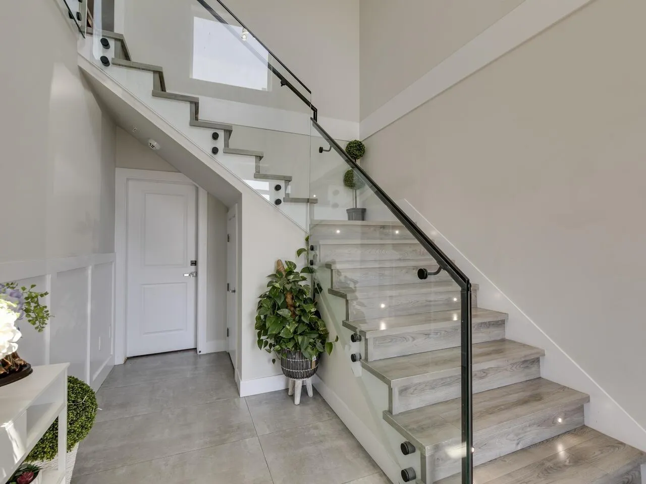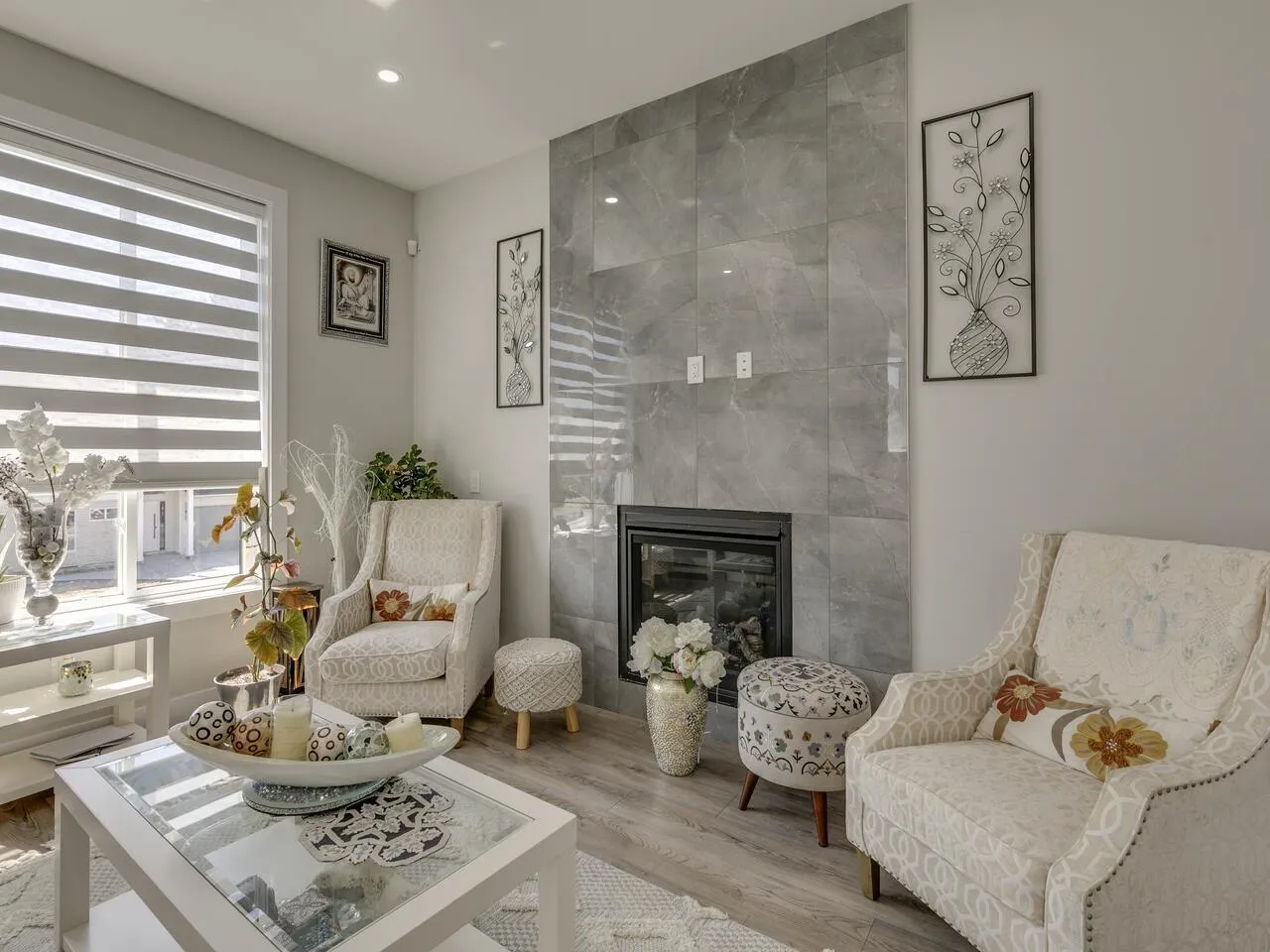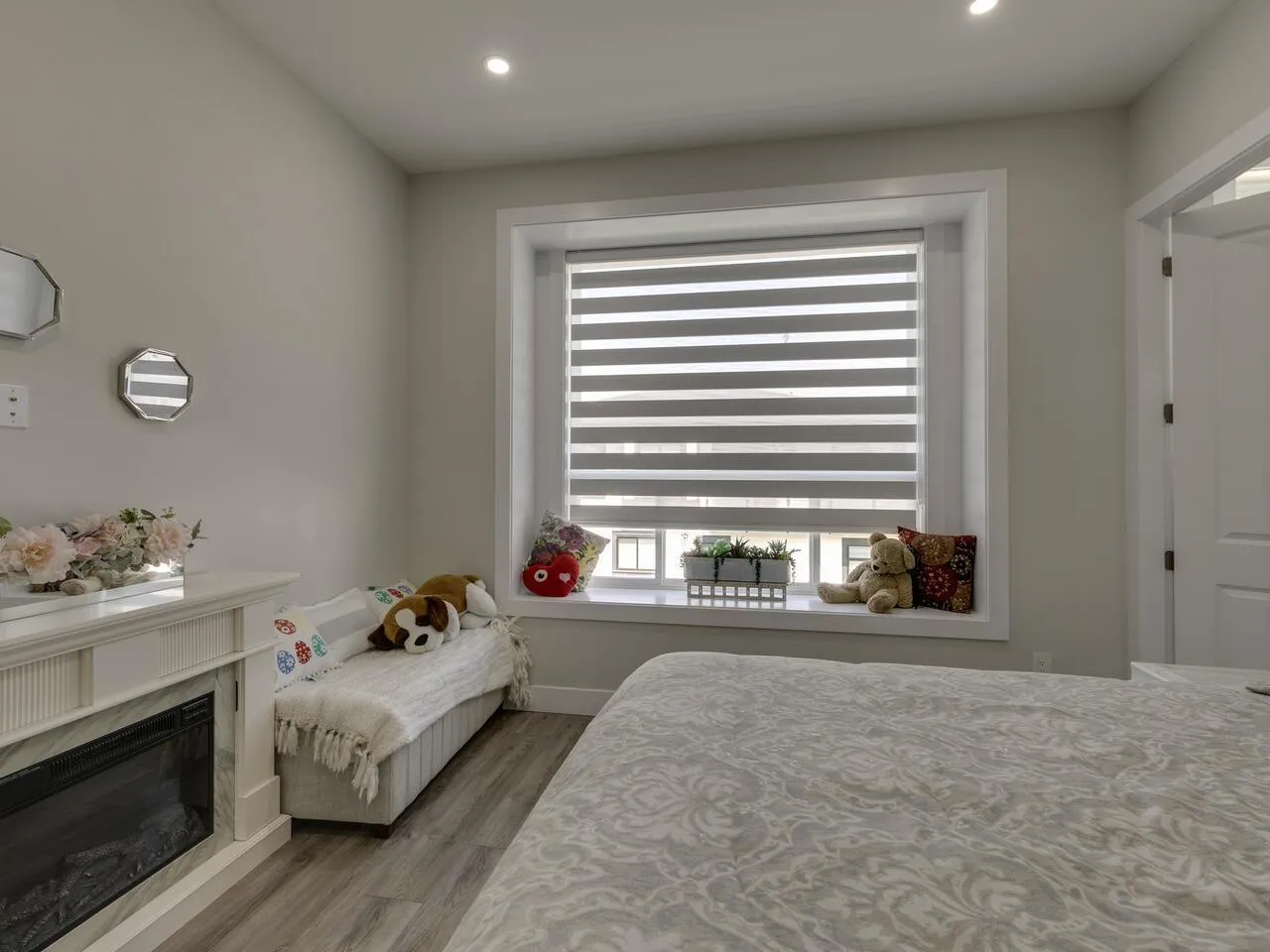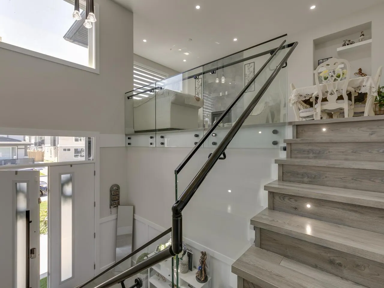 Experience modern living in this beautifully built 2022 home with 6 bedrooms and 4 bathrooms, offering 3400 sq ft of stylish space. Situated on a 5,328 sq ft lot, the home features a designer kitchen with quartz countertops, high-end stainless steel appliances, and sleek acrylic cabinets. The open layout showcases glass banisters, wide-plank laminate flooring, a cozy gas fireplace, and a striking double-door entry. Step onto the large deck off the family room, perfect for entertaining or relaxing while overlooking the private, fenced yard. Includes a legal 2-bedroom suite and an unauthorized 1-bedroom suite, ideal for rental income or extended family. A modern glass-panel 2-car garage adds curb appeal. Located in a family neighborhood close to schools, shopping, and recreation. Must see! (id:27476)